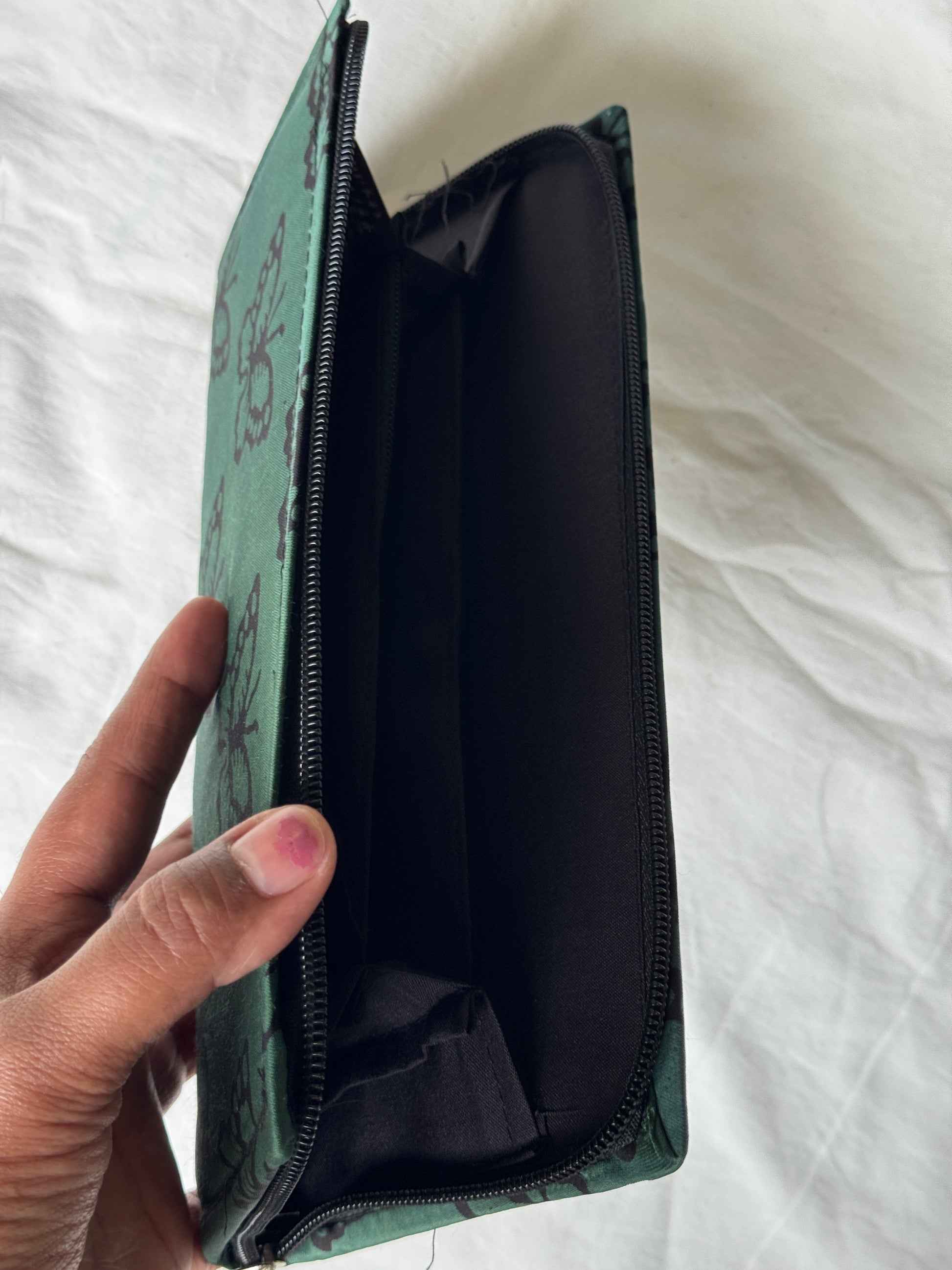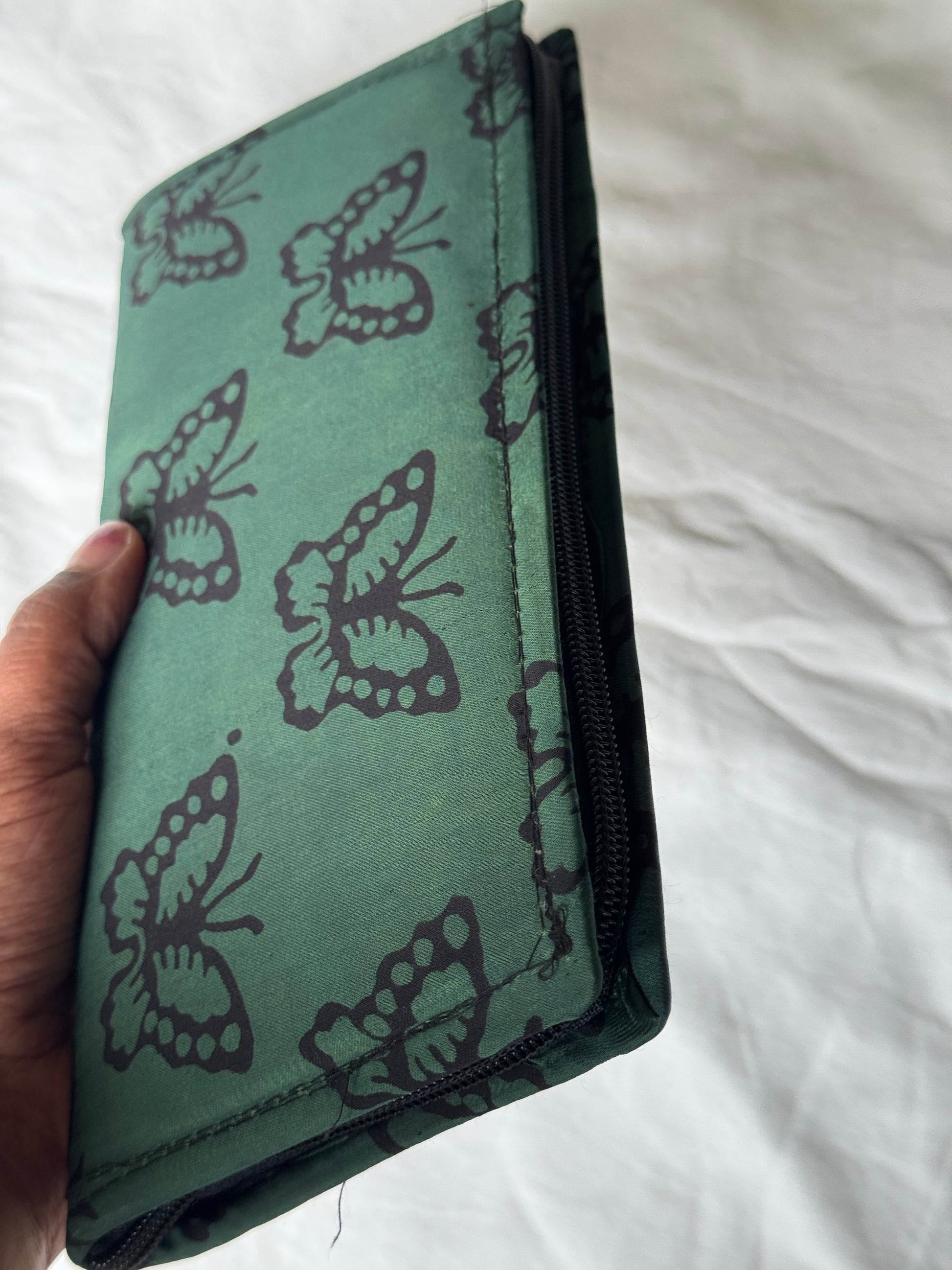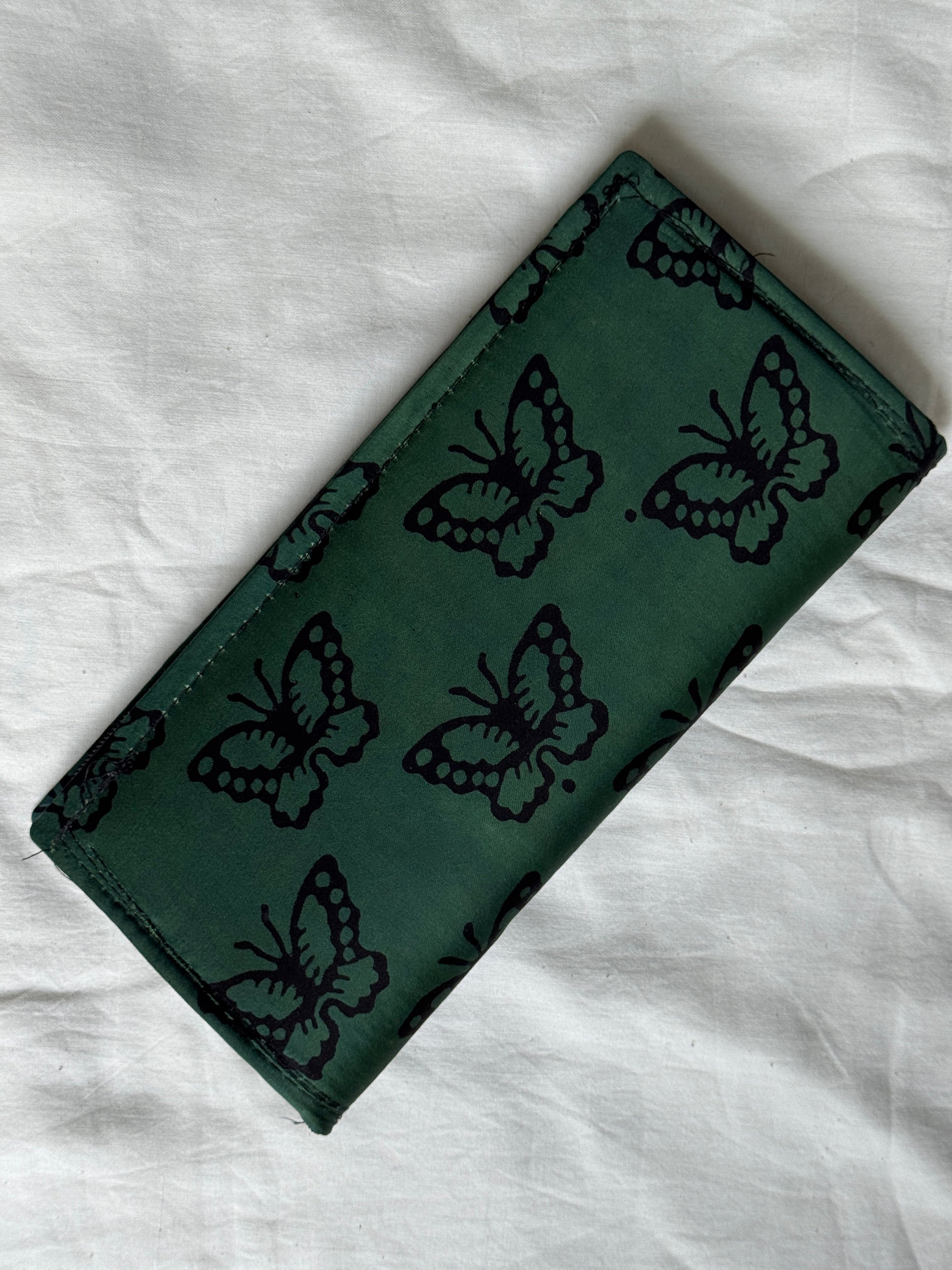 Green butterfly print modal hand block printed purse