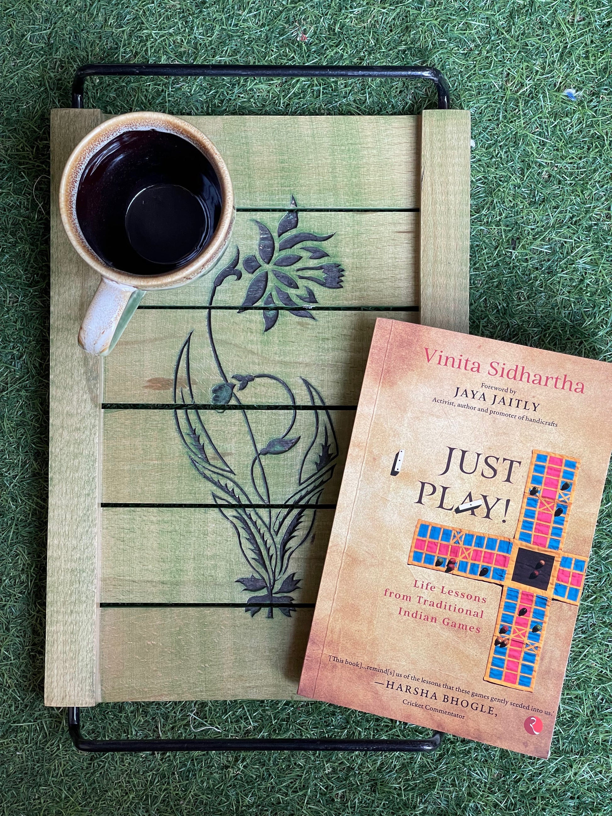 Green hand made rectangular (12 x 8.5 inches) cut work serving tray with iron handles - flowers design