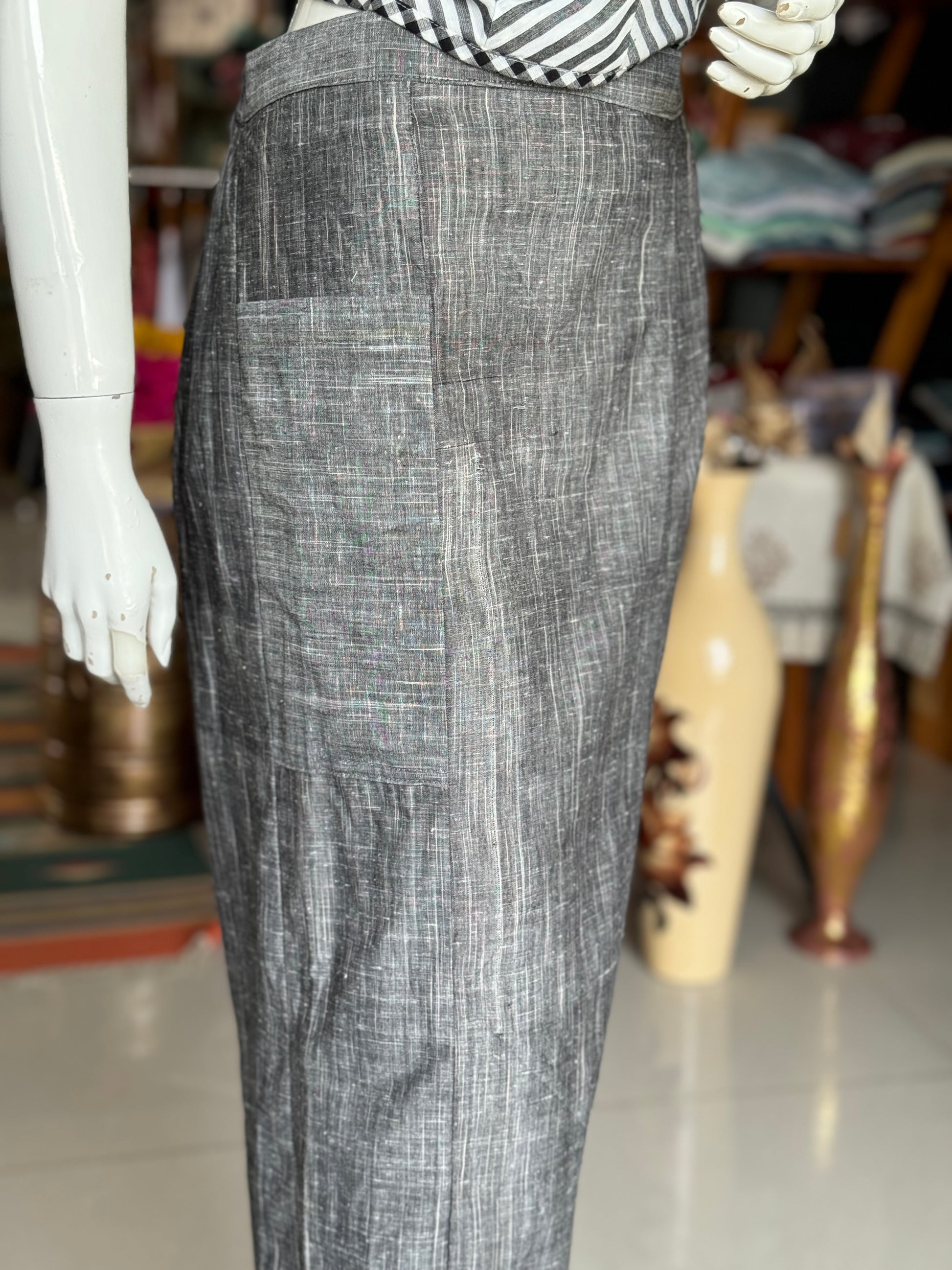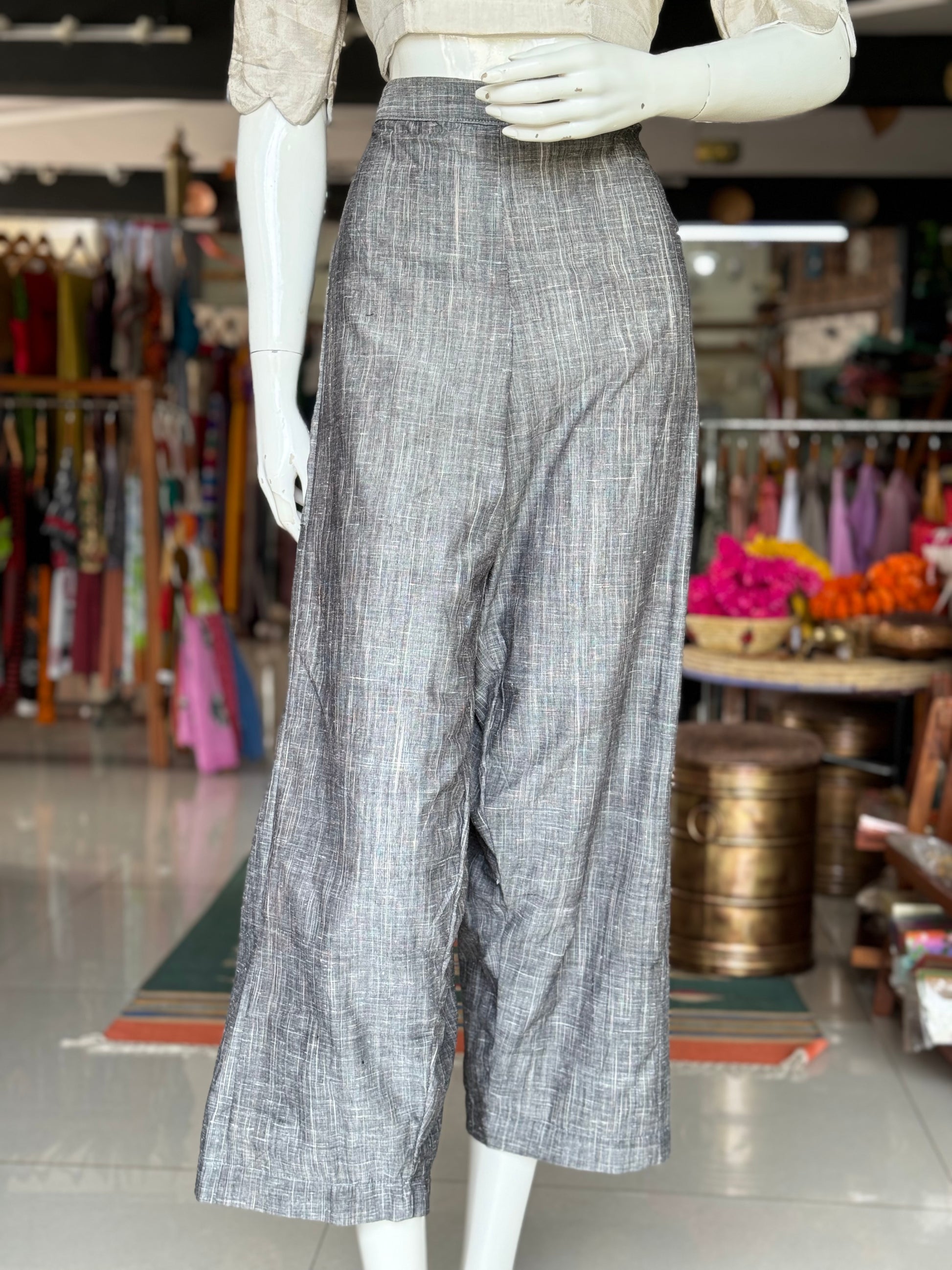 Grey hand woven cotton comfy pants with side patch pockets