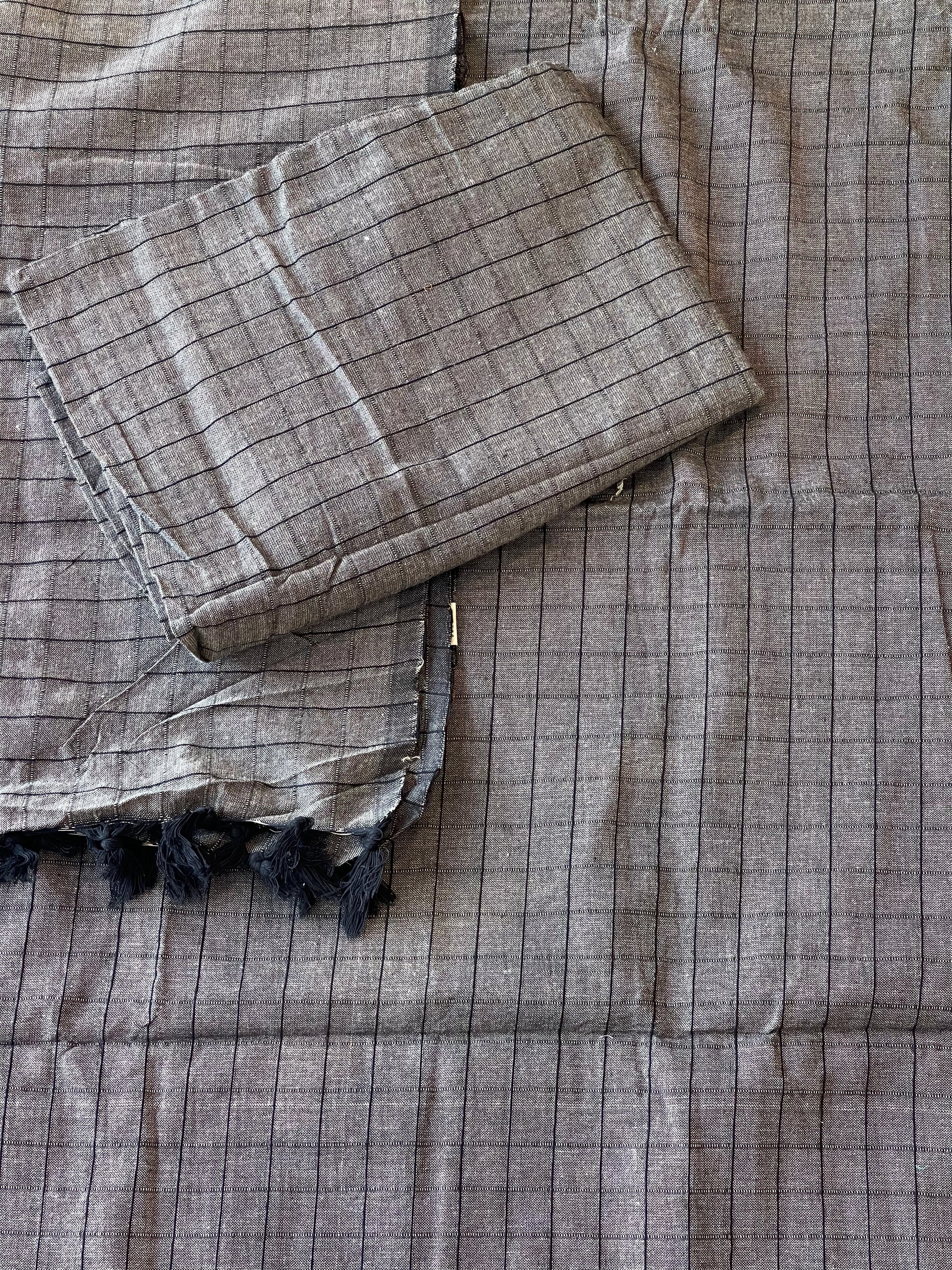 Grey handloom cotton checks king size bedsheet with 2 pillow covers