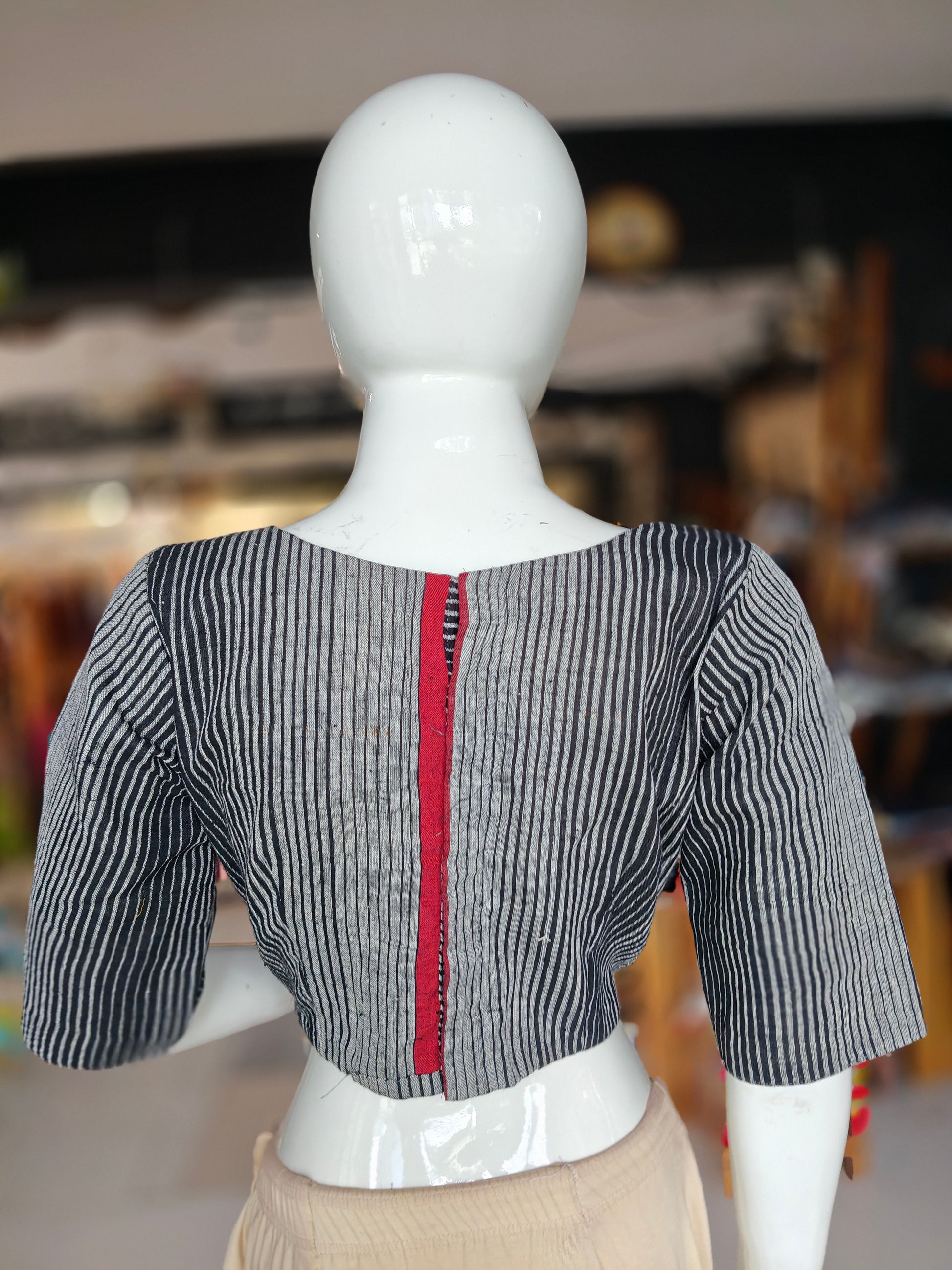 Grey n black stripes handloom kala cotton elbow sleeves blouse