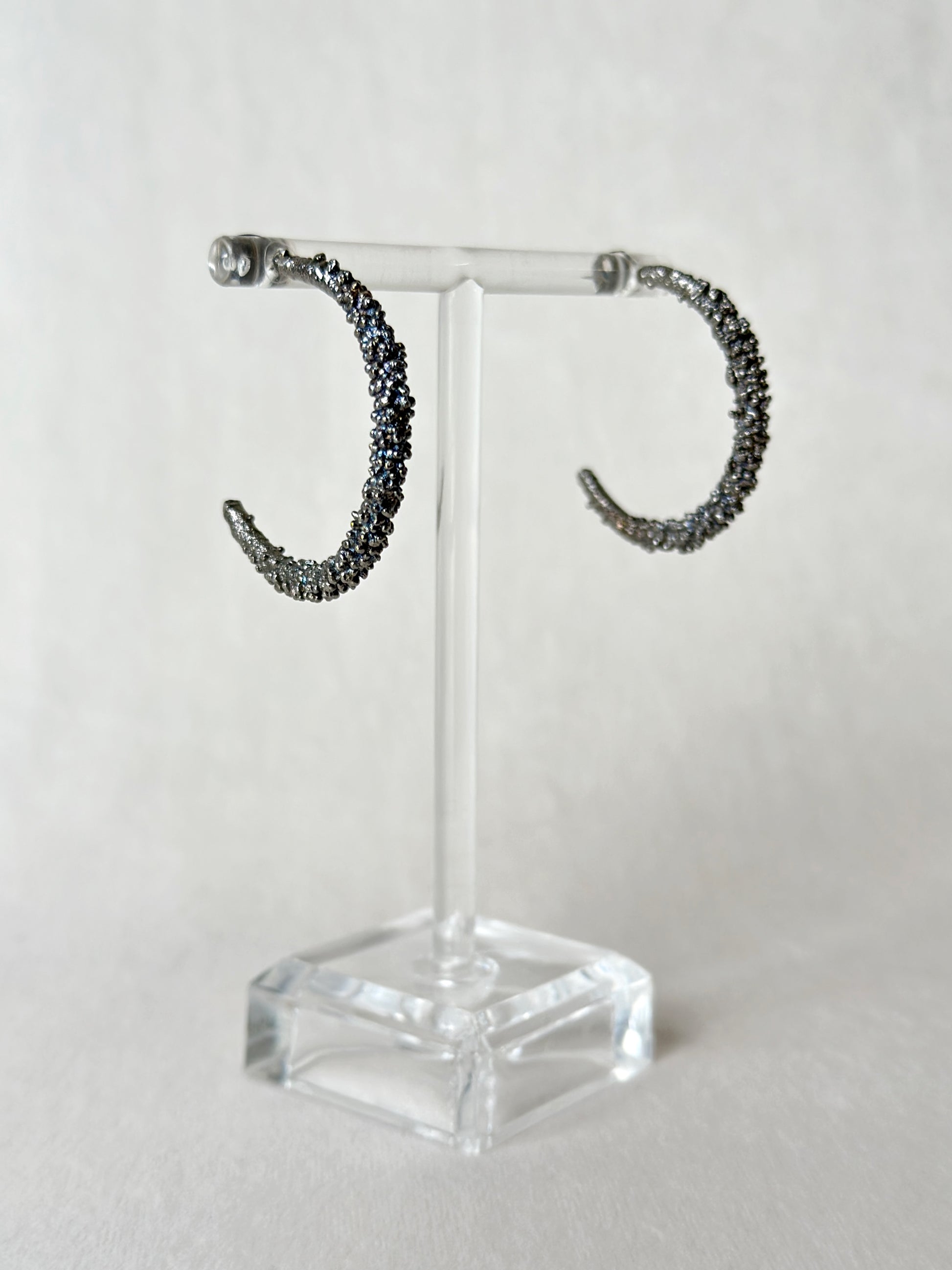 Half moon hoops in rhodium plated brass - beautifully crafted designer earrings