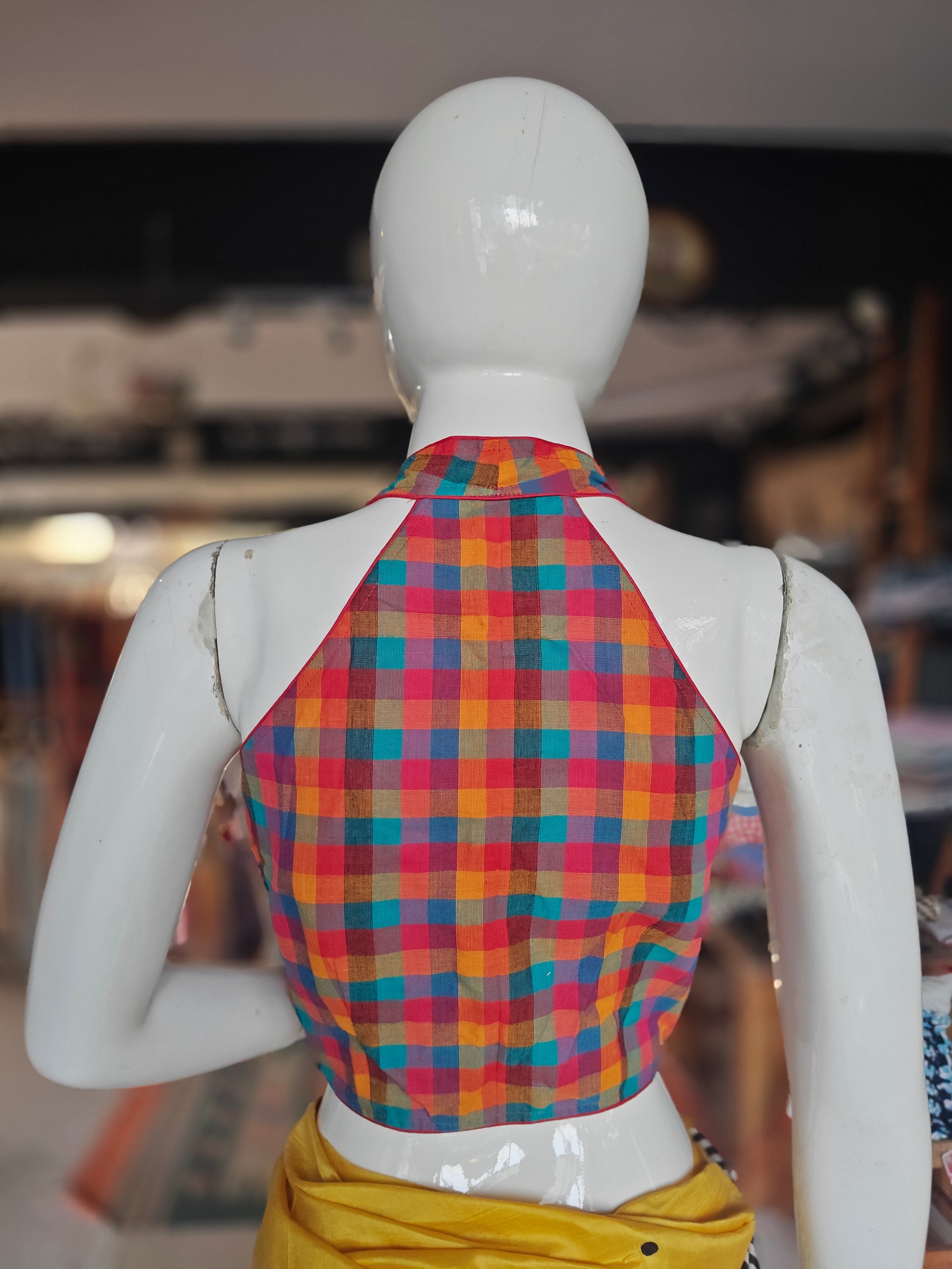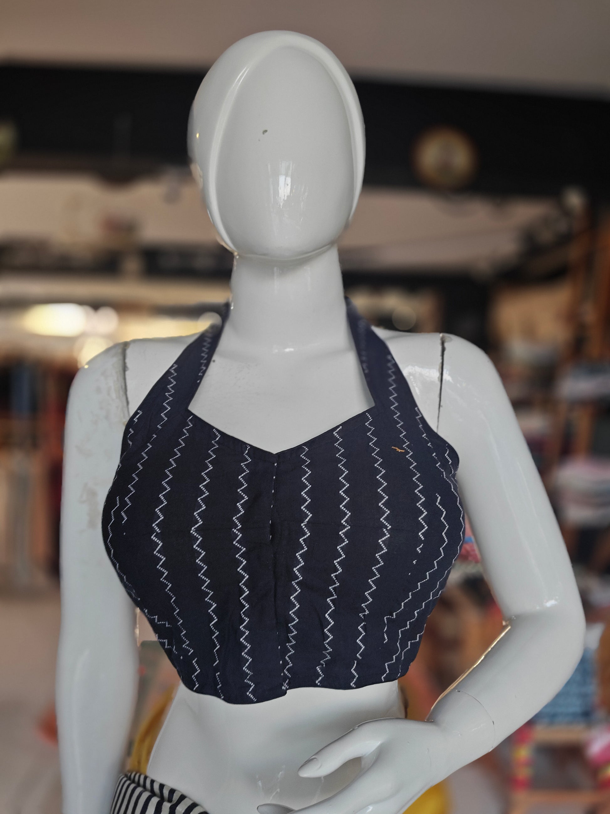 Halter neck cotton padded blouse with lining - multiple designs available