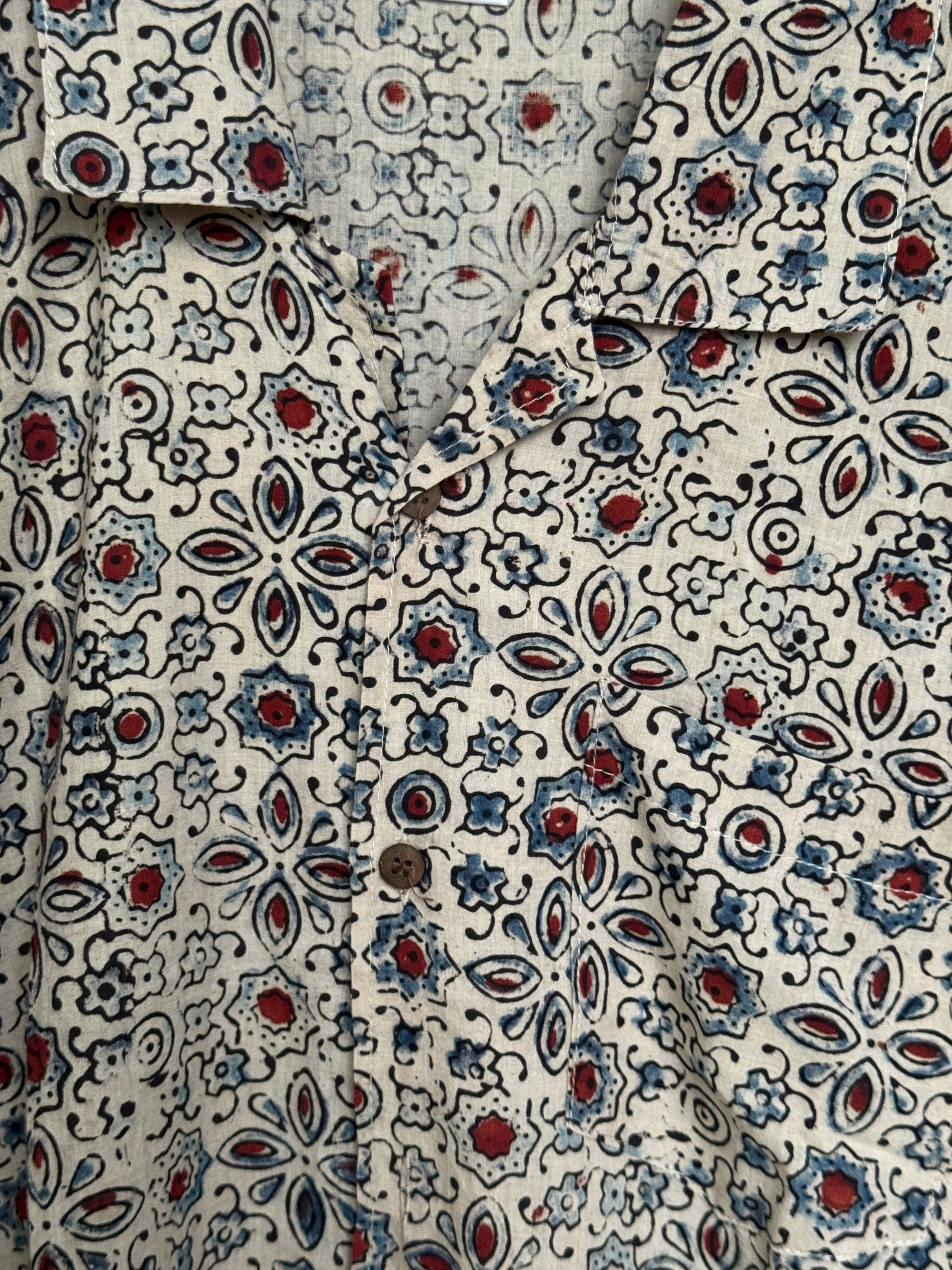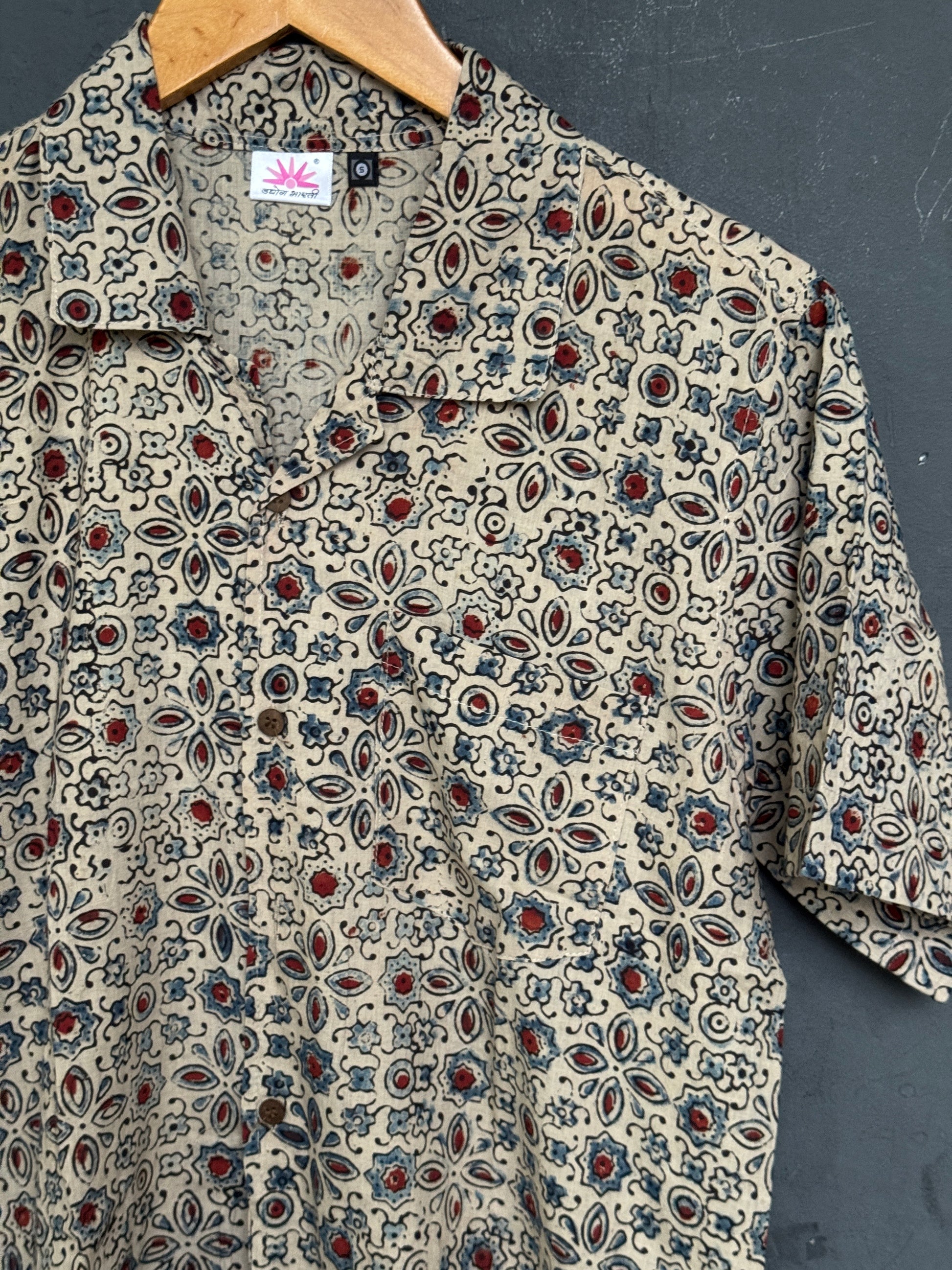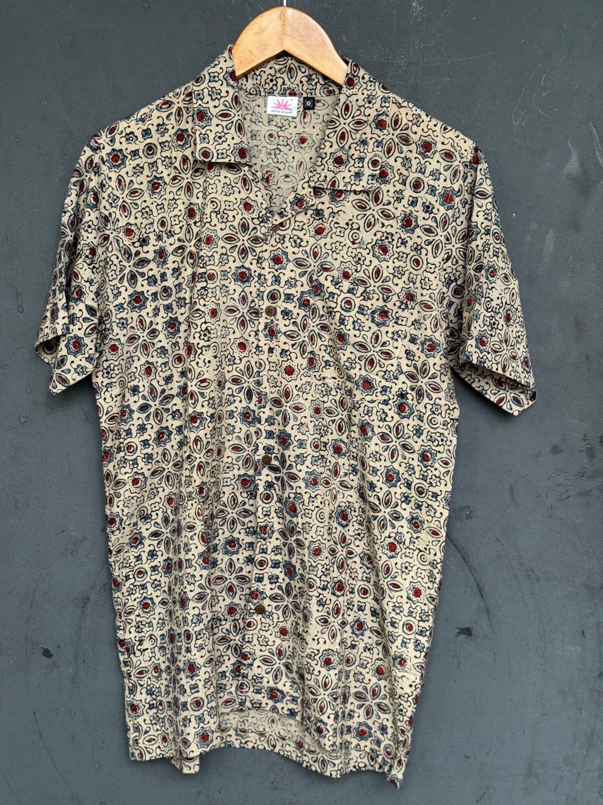 Hand block printed Freedom fabric half sleeve shirts - hand spun, hand woven cotton mens shirt