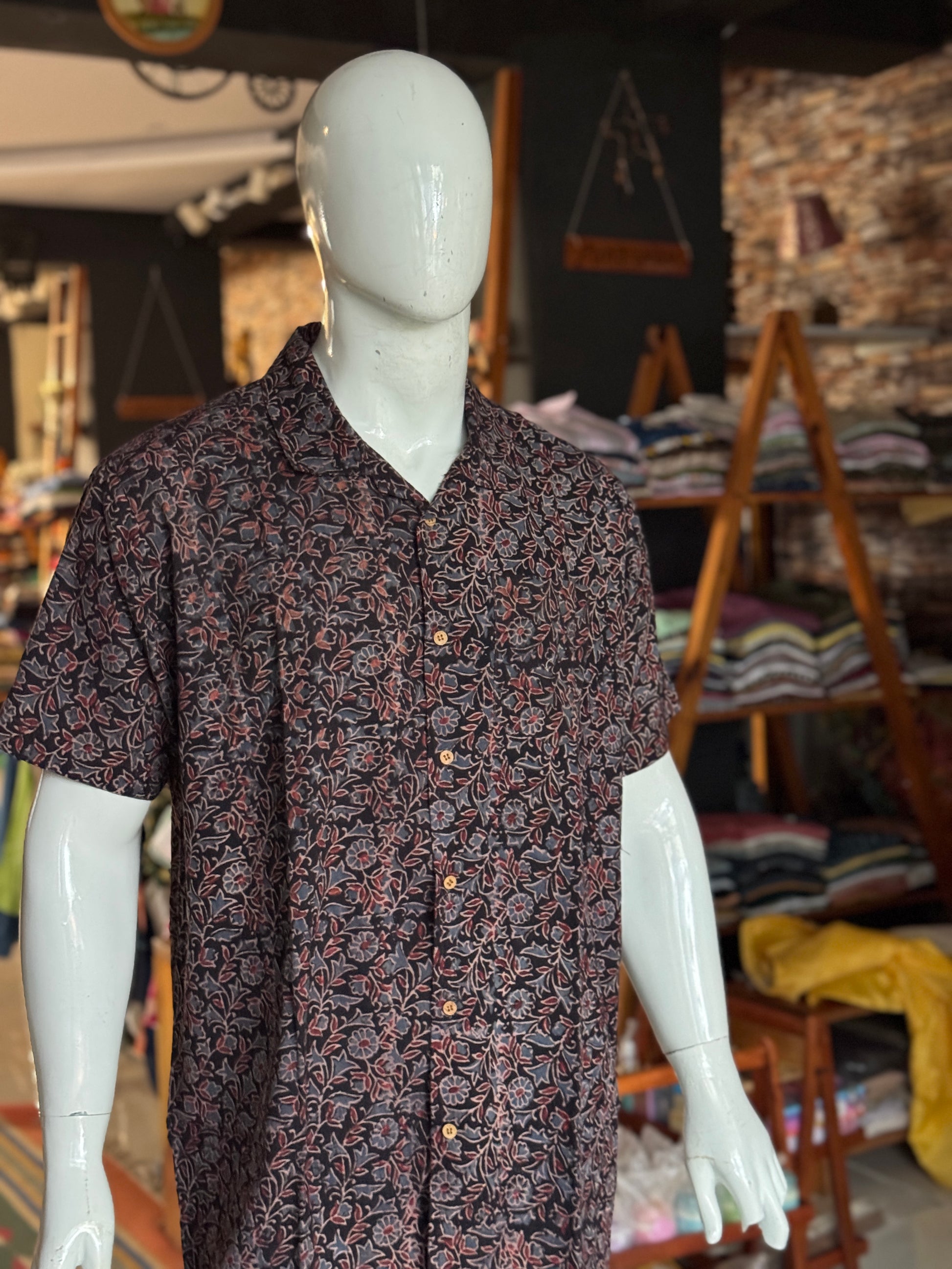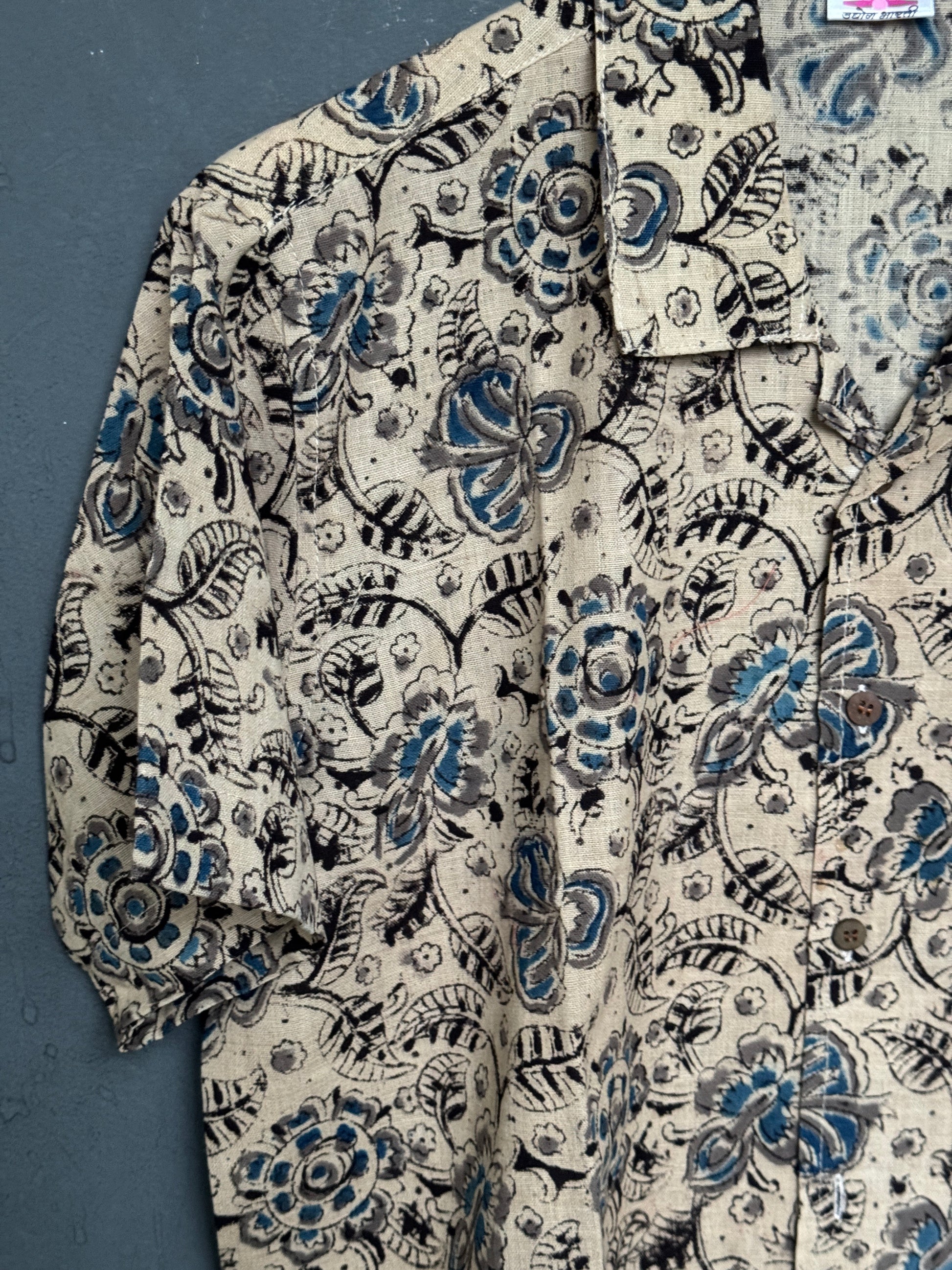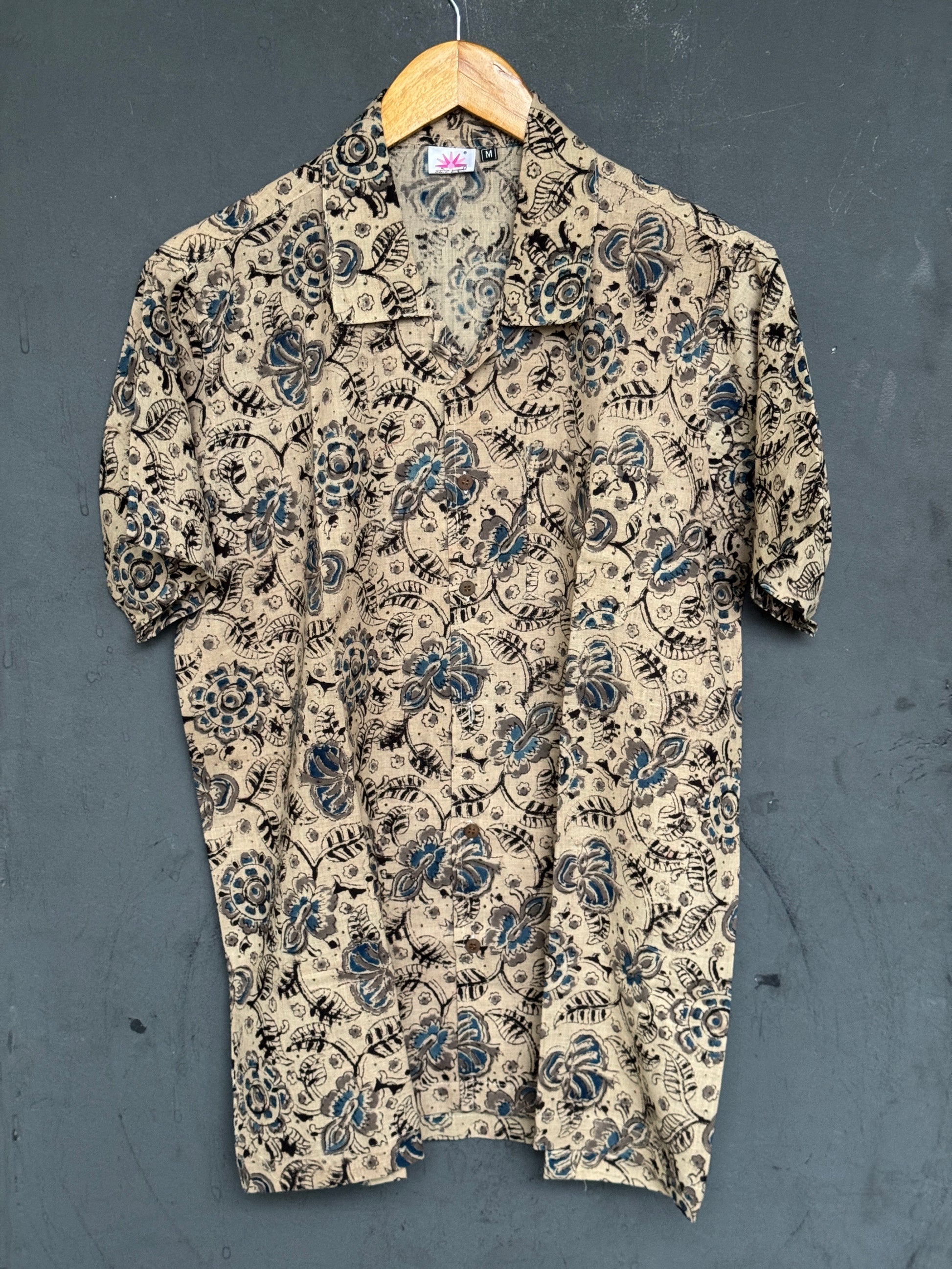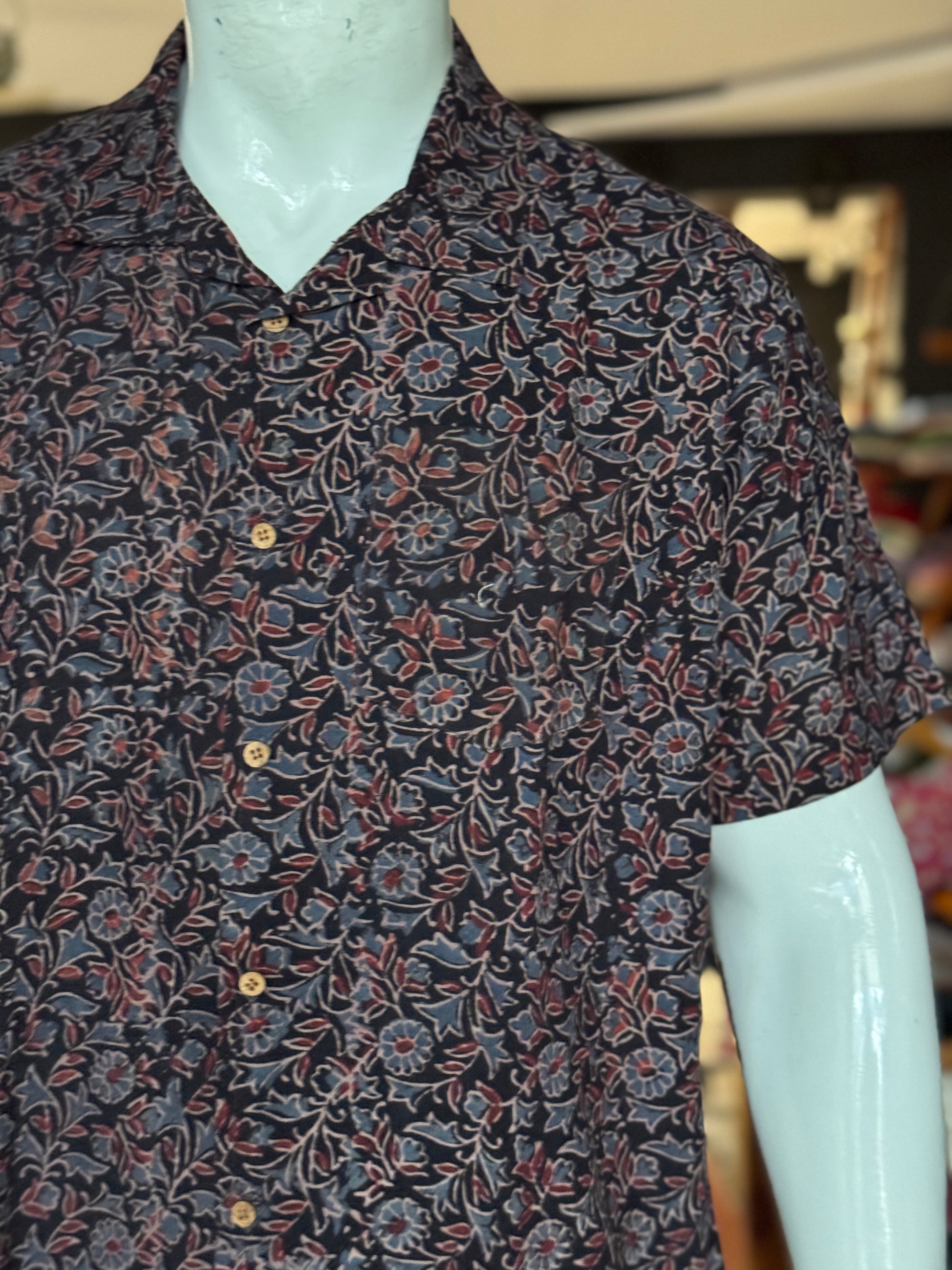 Hand block printed Freedom fabric half sleeve shirts - hand spun, hand woven cotton mens shirt
