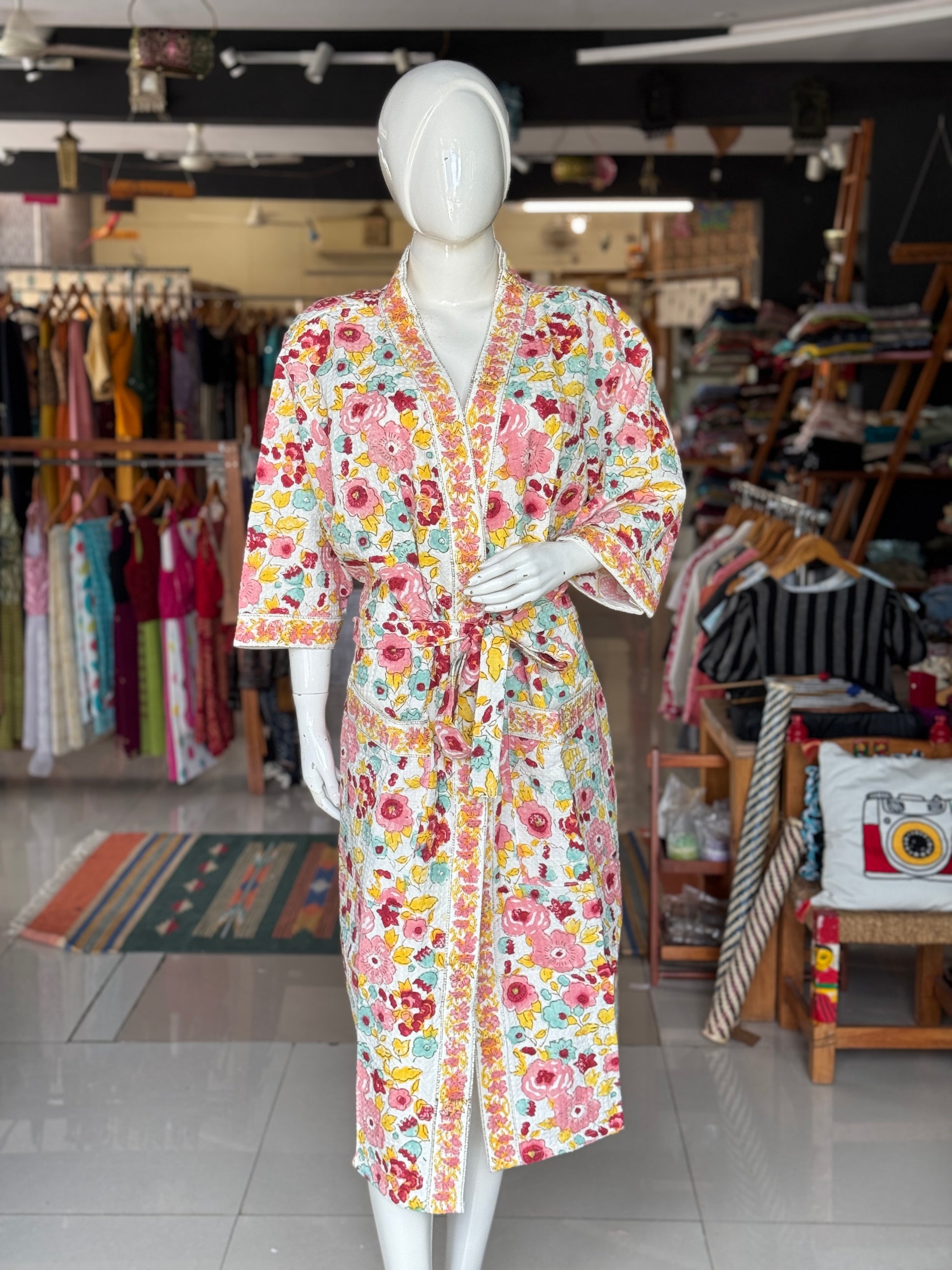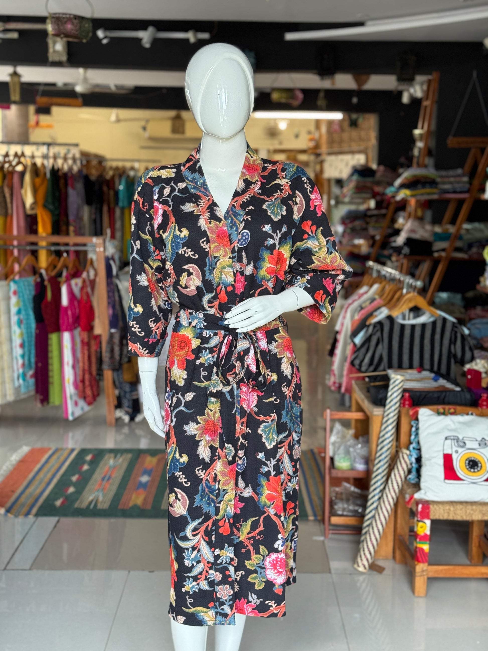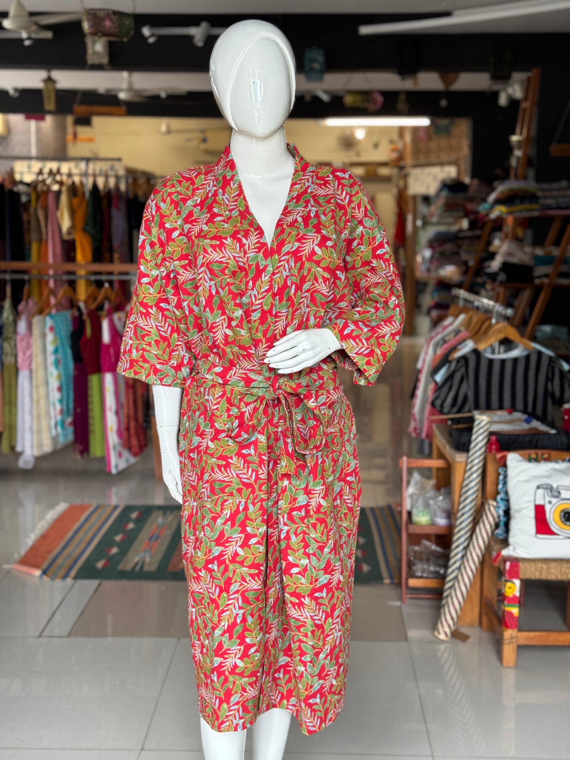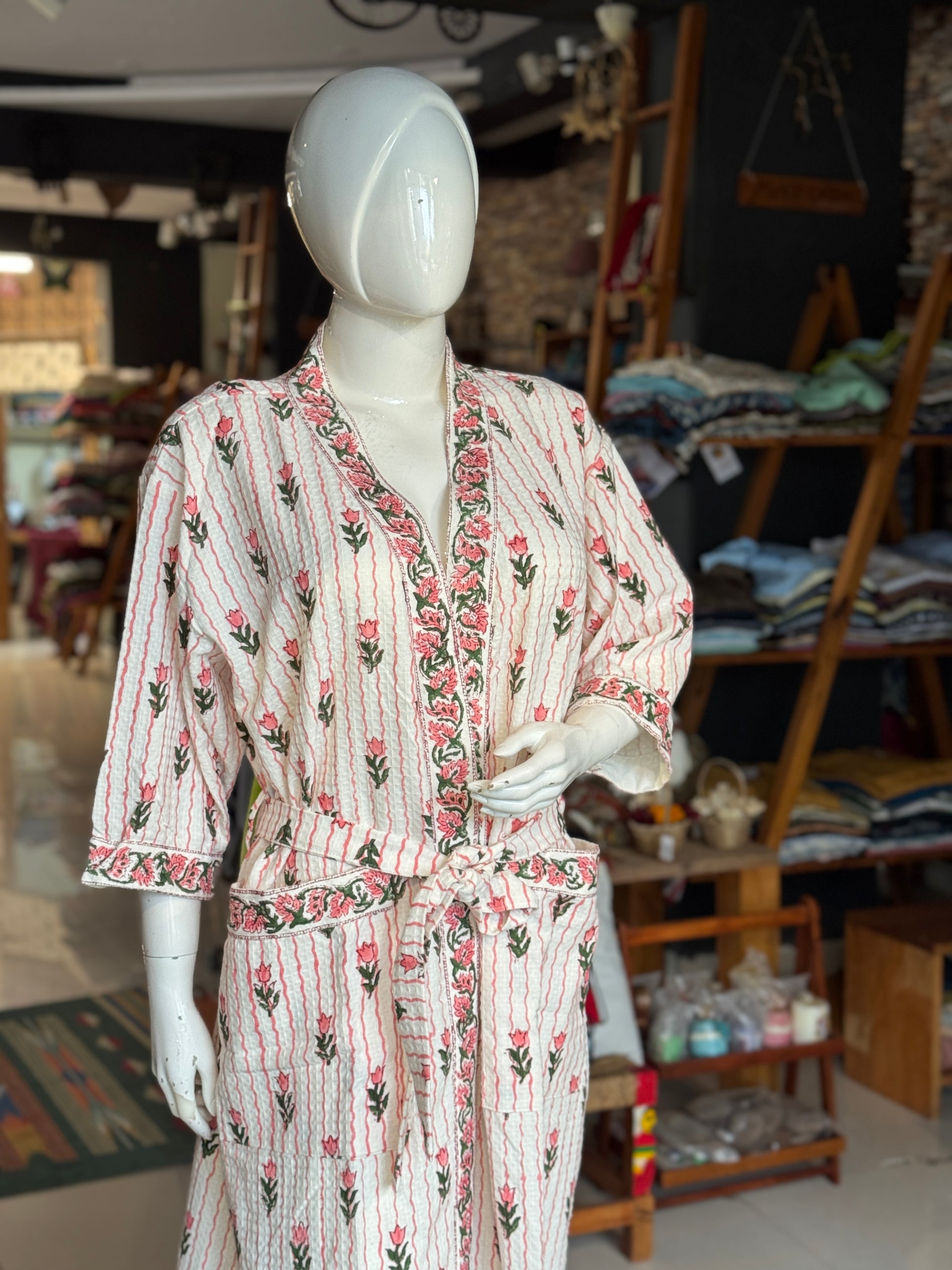 Hand block printed waffle cotton bath robe / swim suit cover up for adults - multiple designs