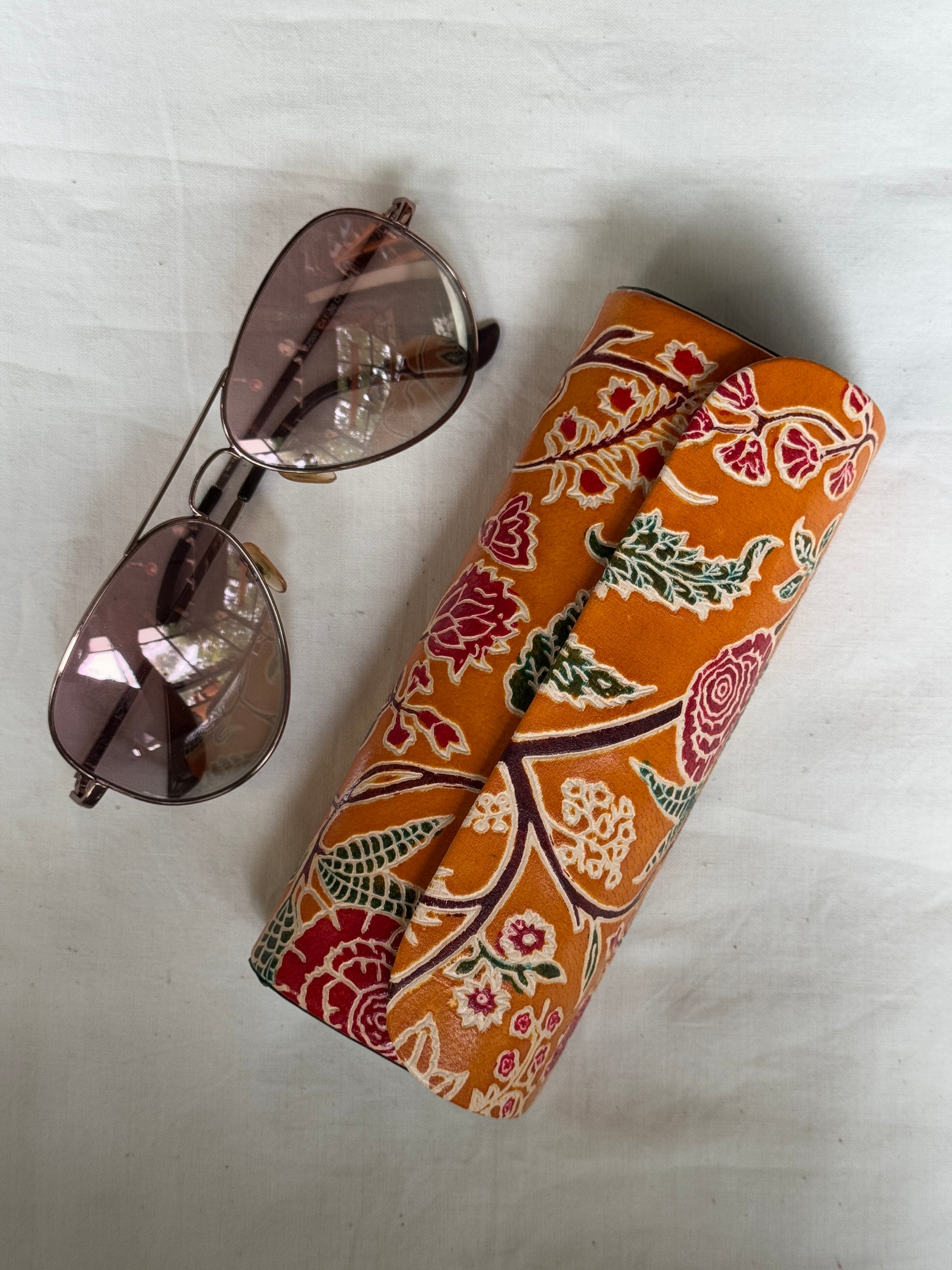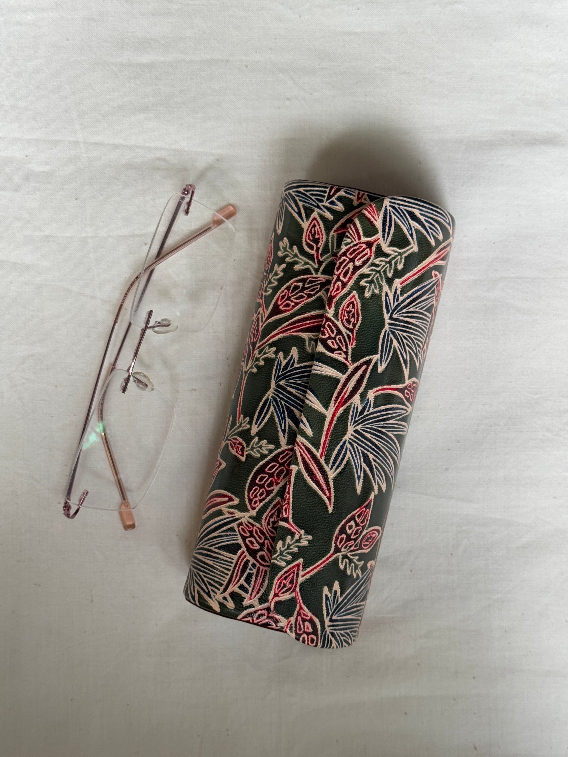 With magnetic button closure. cardboard base inside keeping the glasses safe and pouch in shape