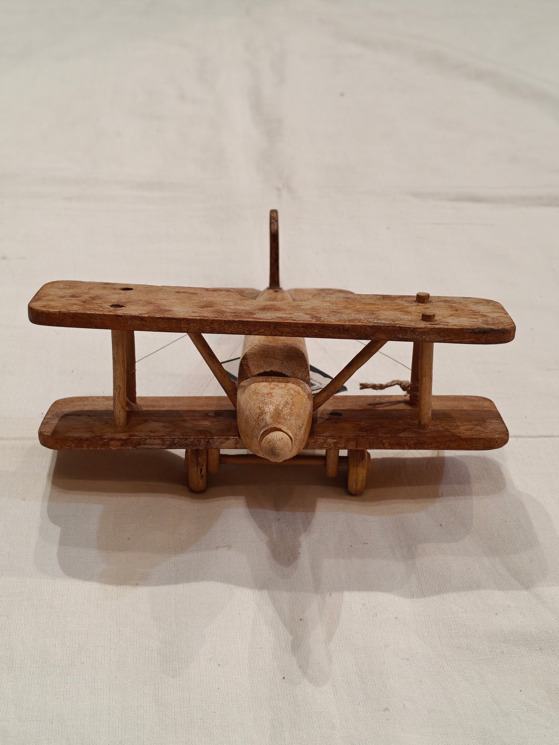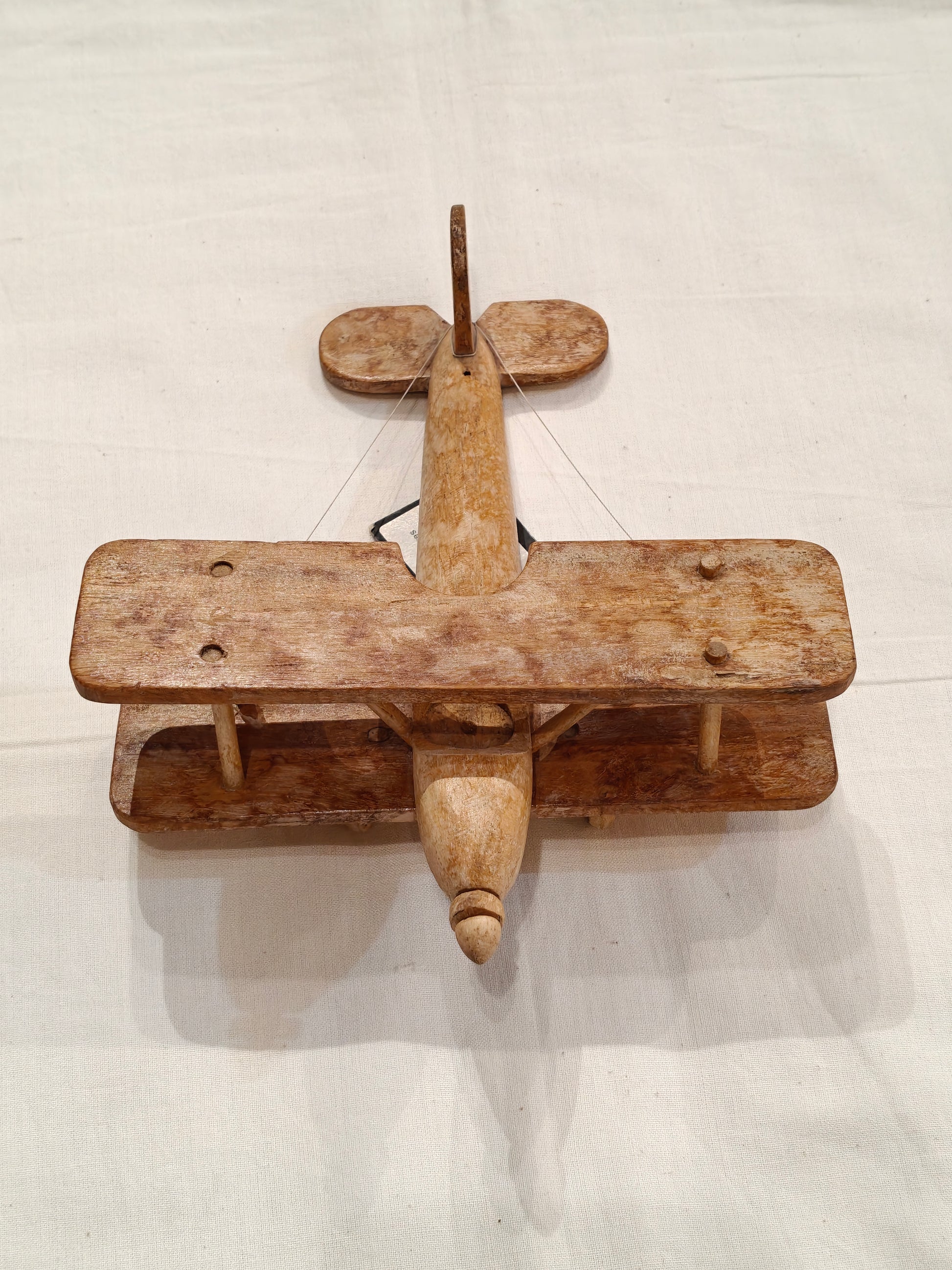 Handcrafted wooden aeroplane ( biplane model )with wheels play toy