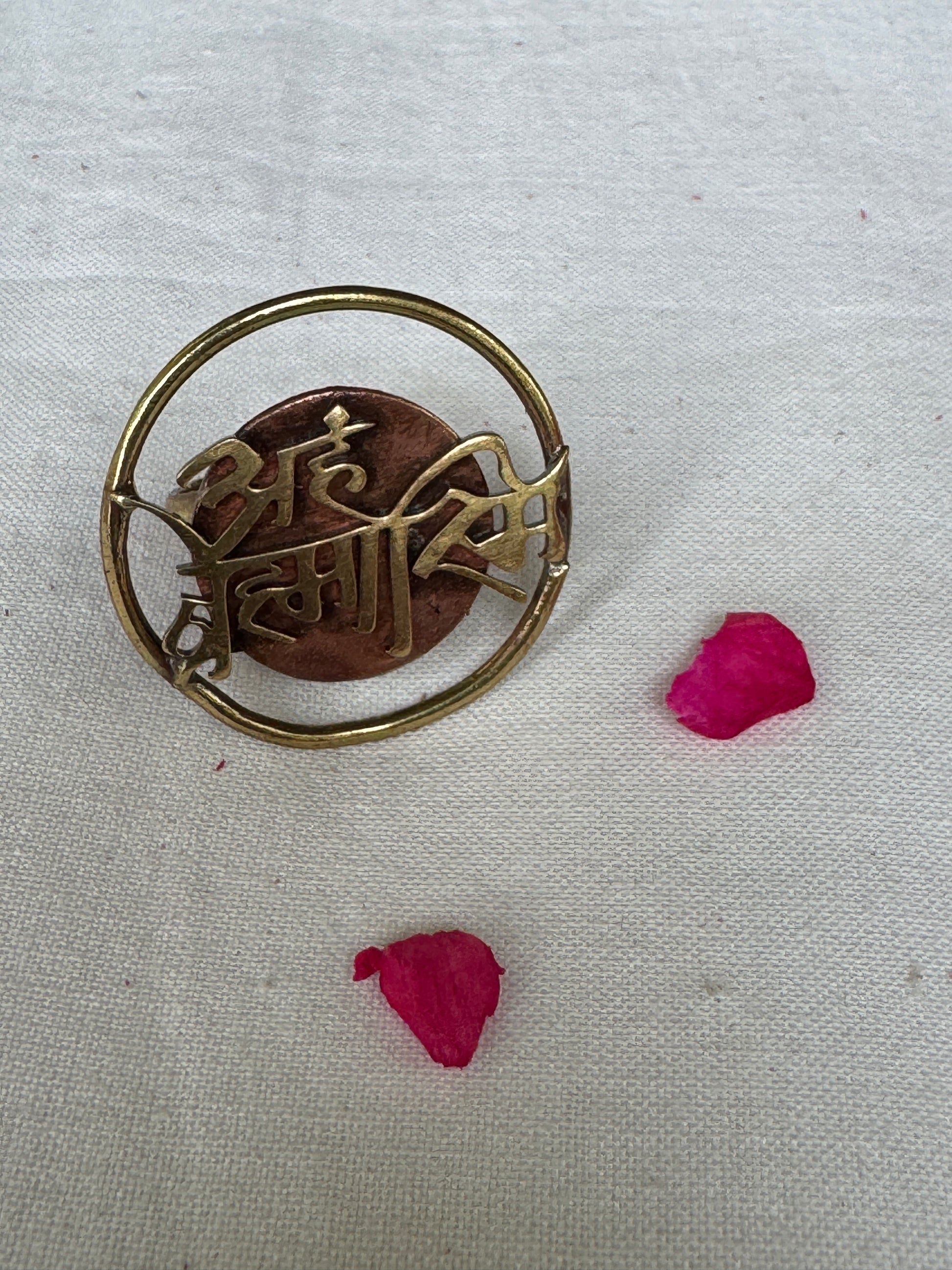 Hindi script quirky finger ring in brass and copper - click to see text options
