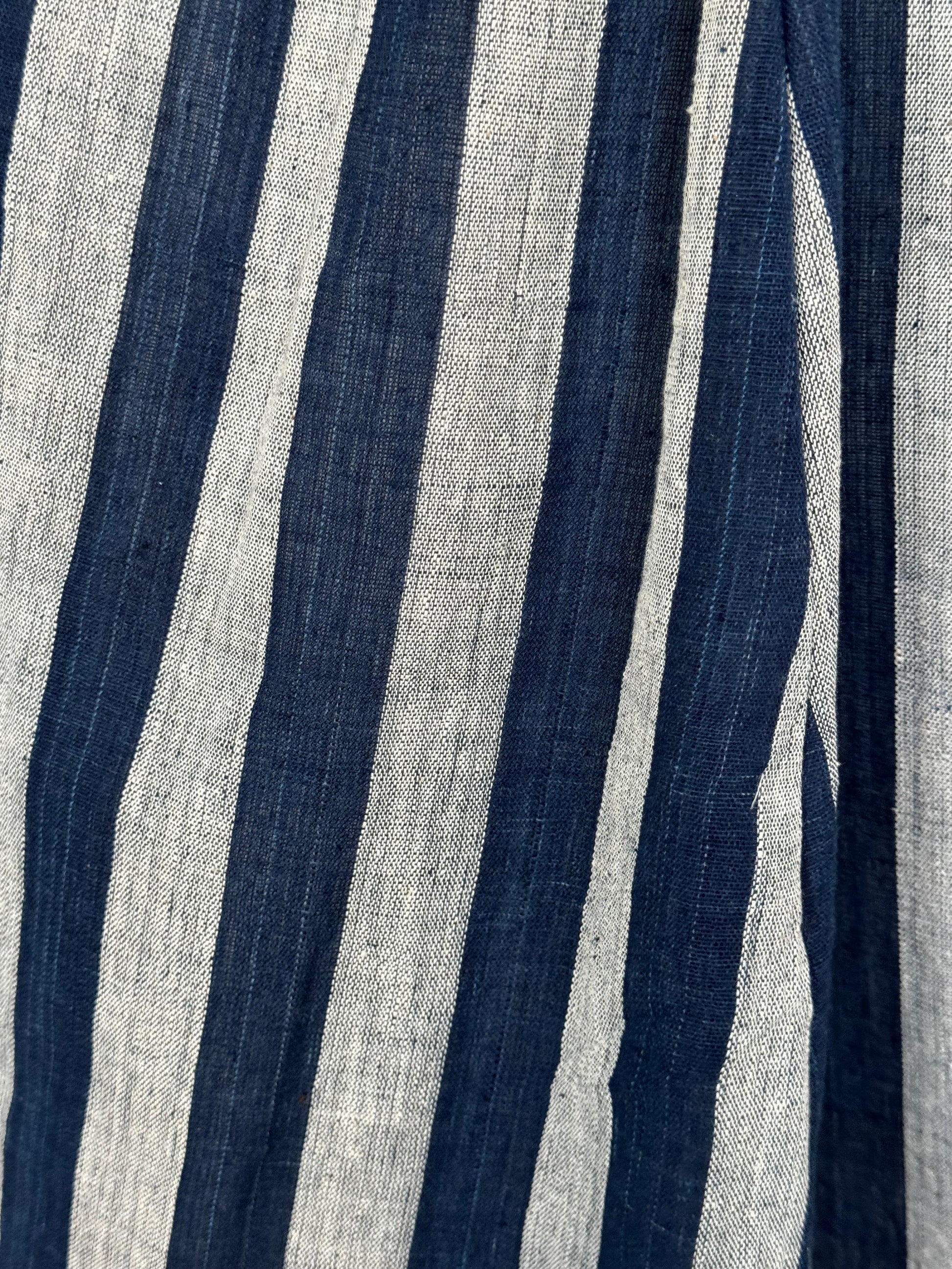 Indigo blue natural dyed, hand spun, hand woven free sized cotton stripes skirt