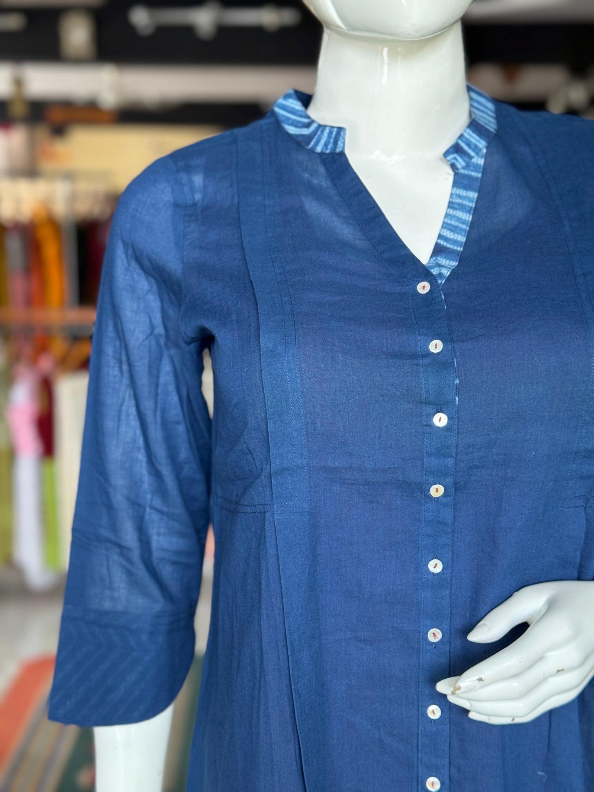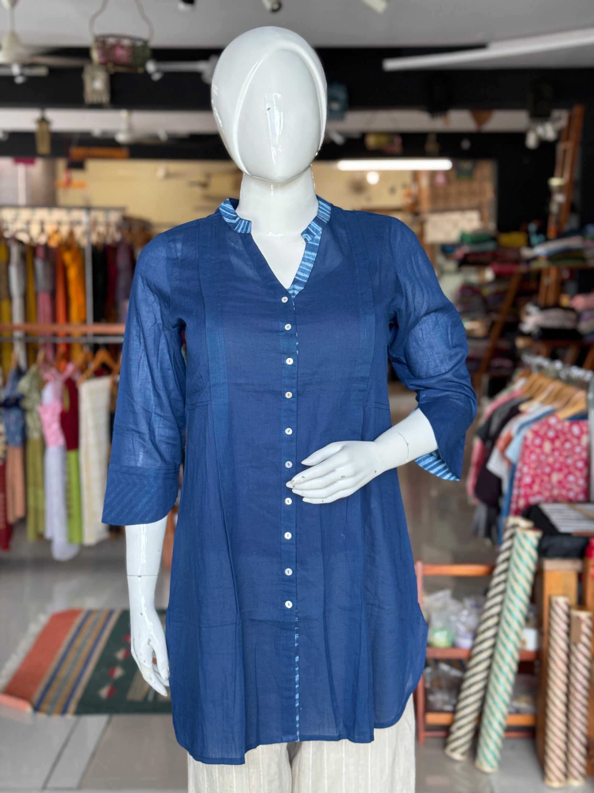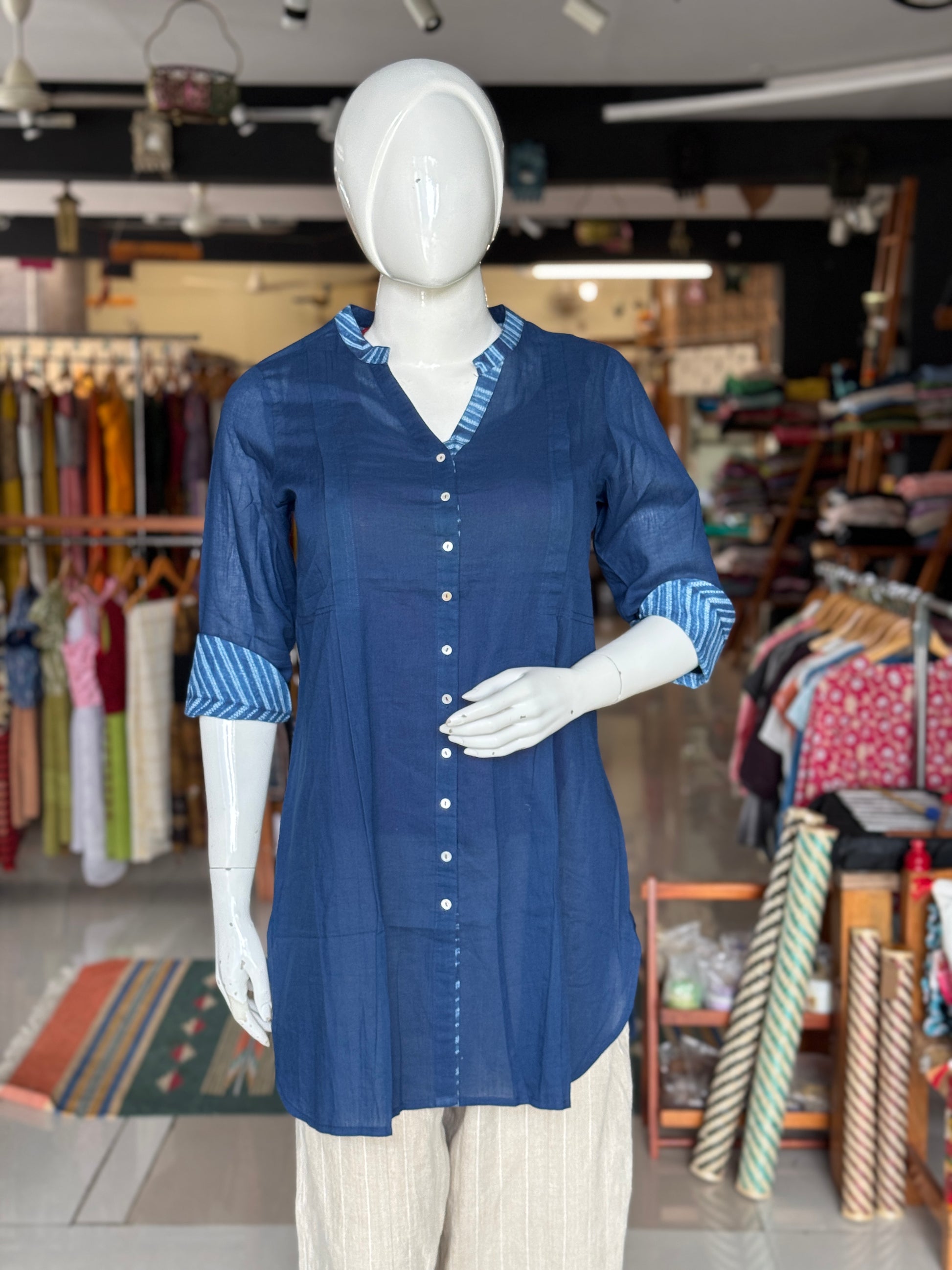 Indigo blue needle Shibori tie n dye cotton Shibori short kurti with foldable cuff