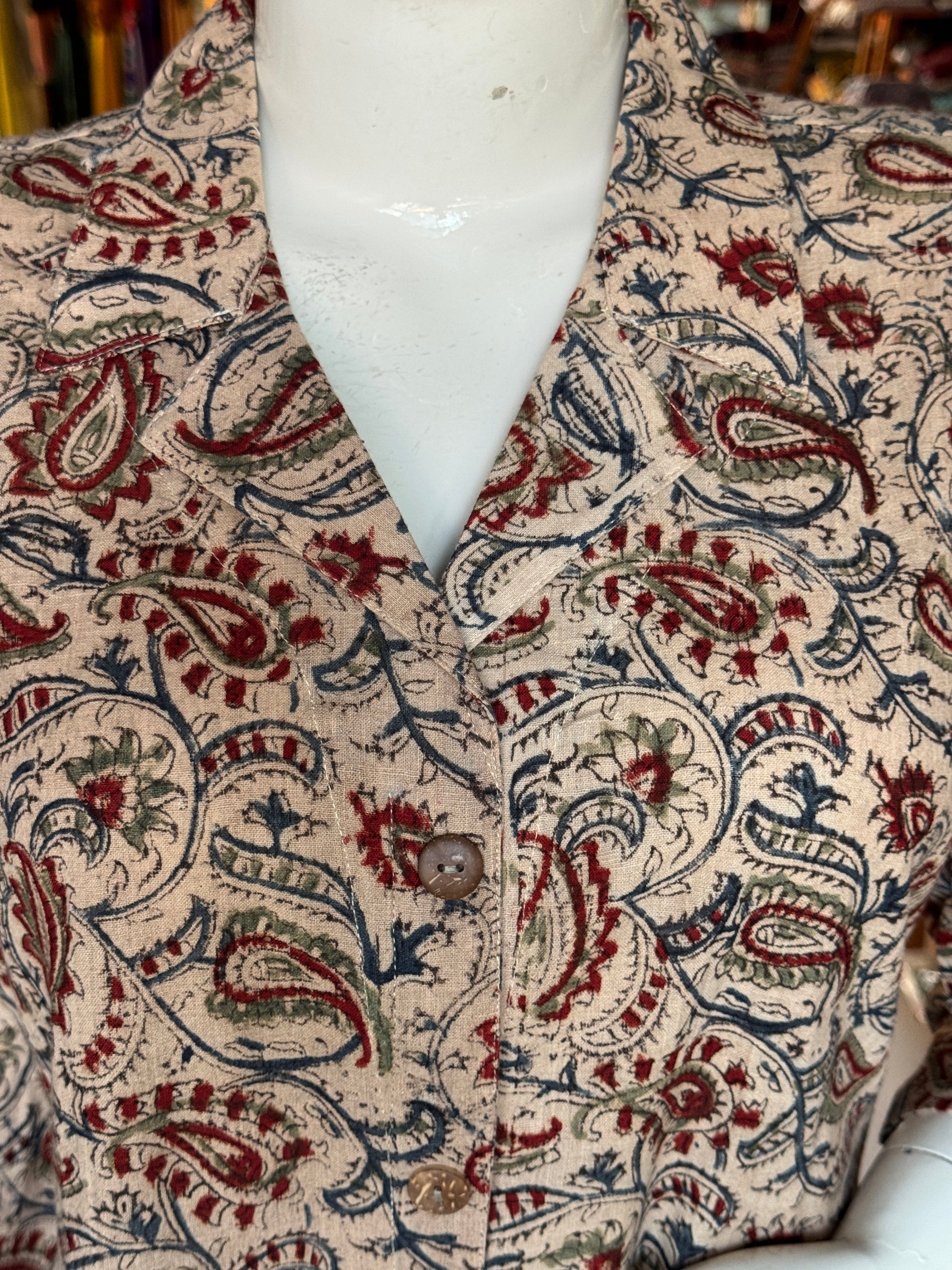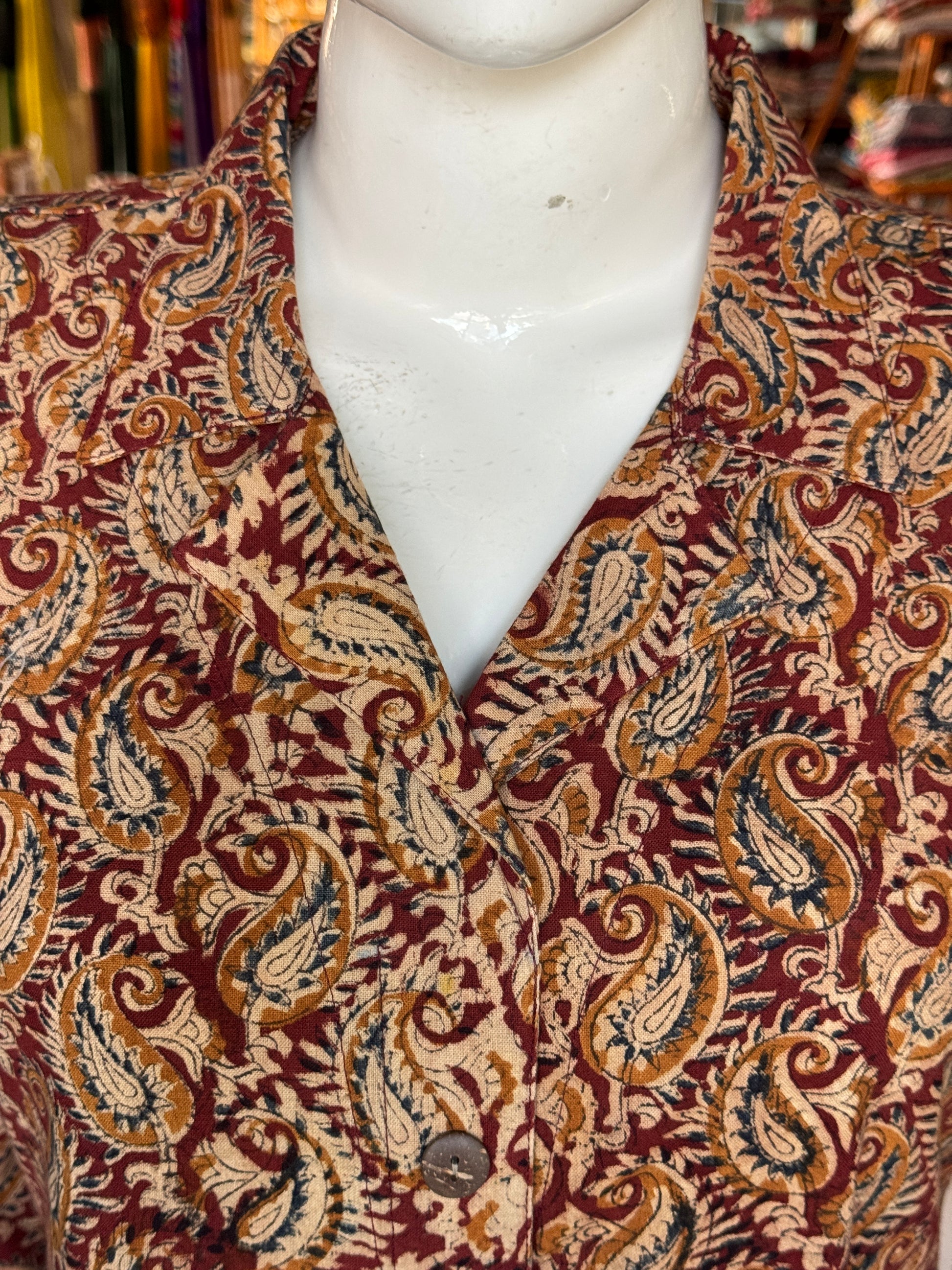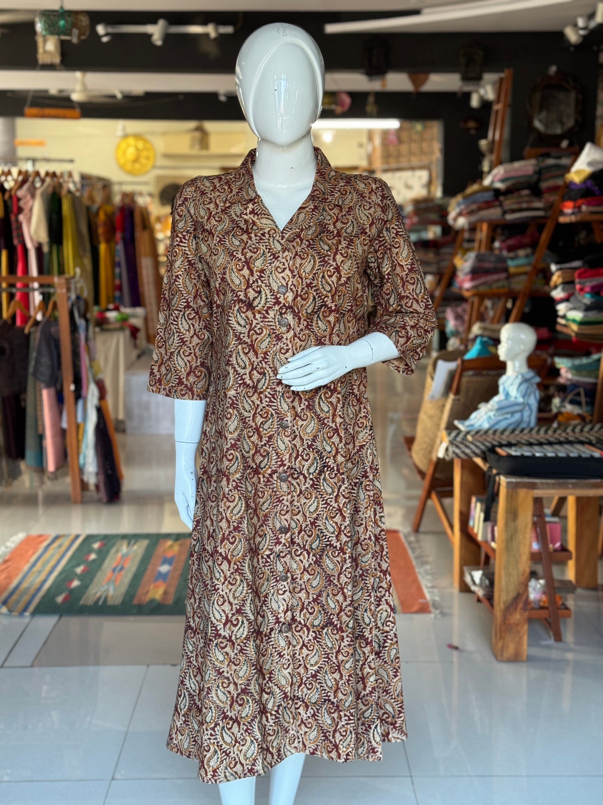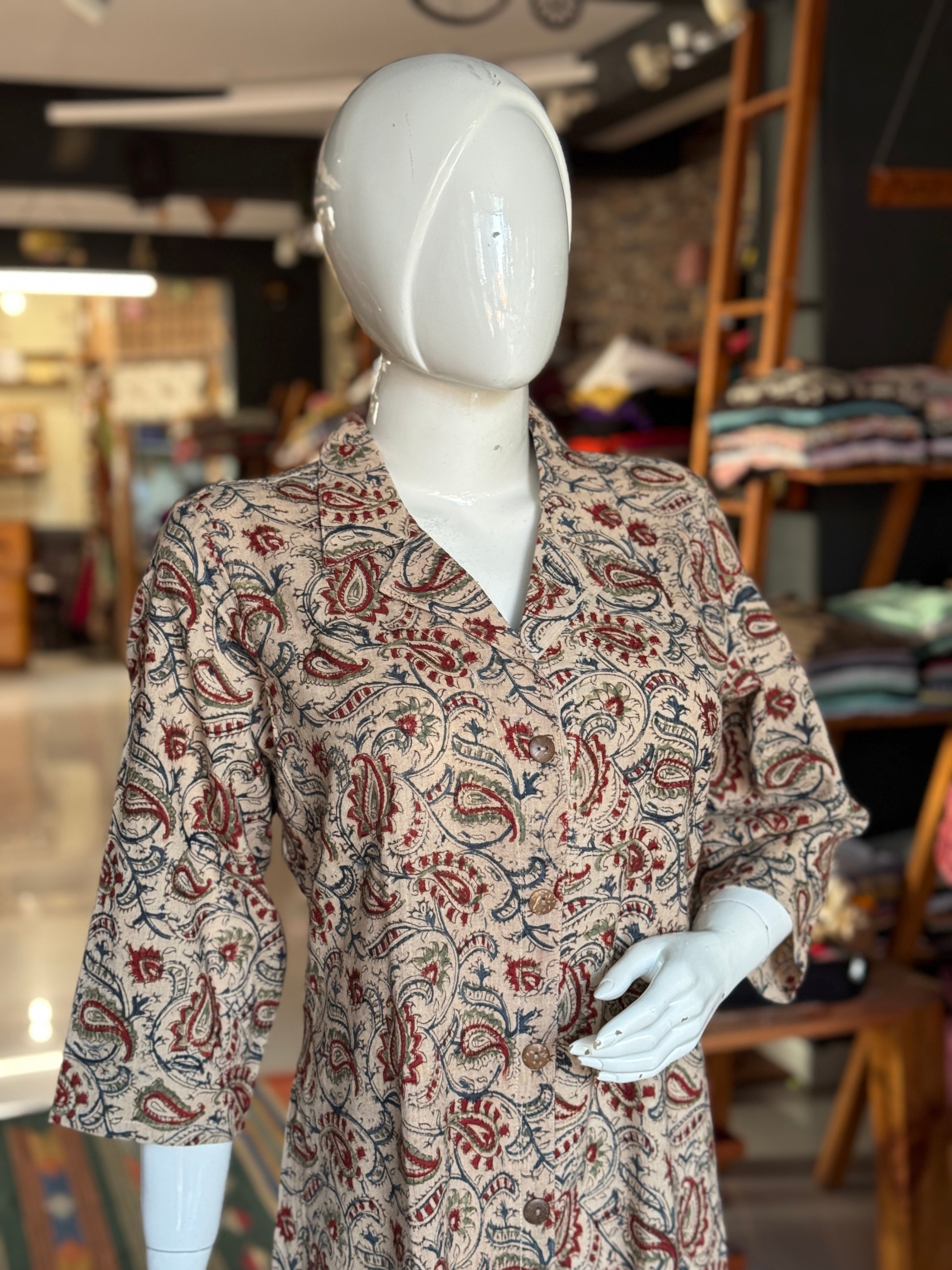 Kalamkari hand block printed collared dress - Freedom fabric kurti - Hand spun, hand woven, hand block printed cotton