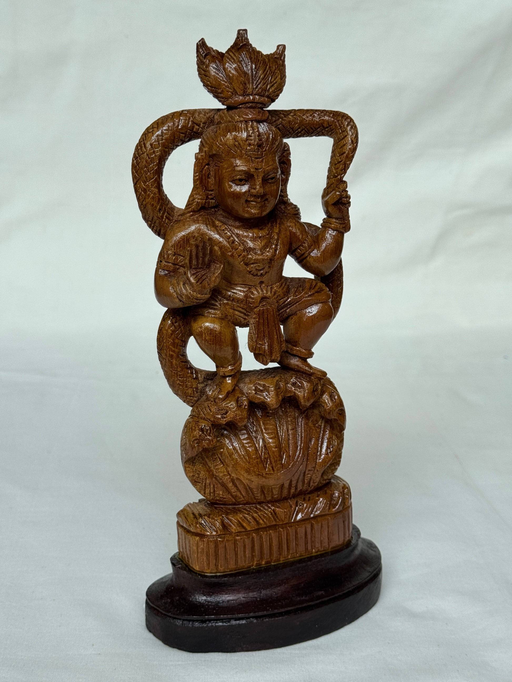 Kaliyamardhanam - hand carved Krishna statue in teak wood