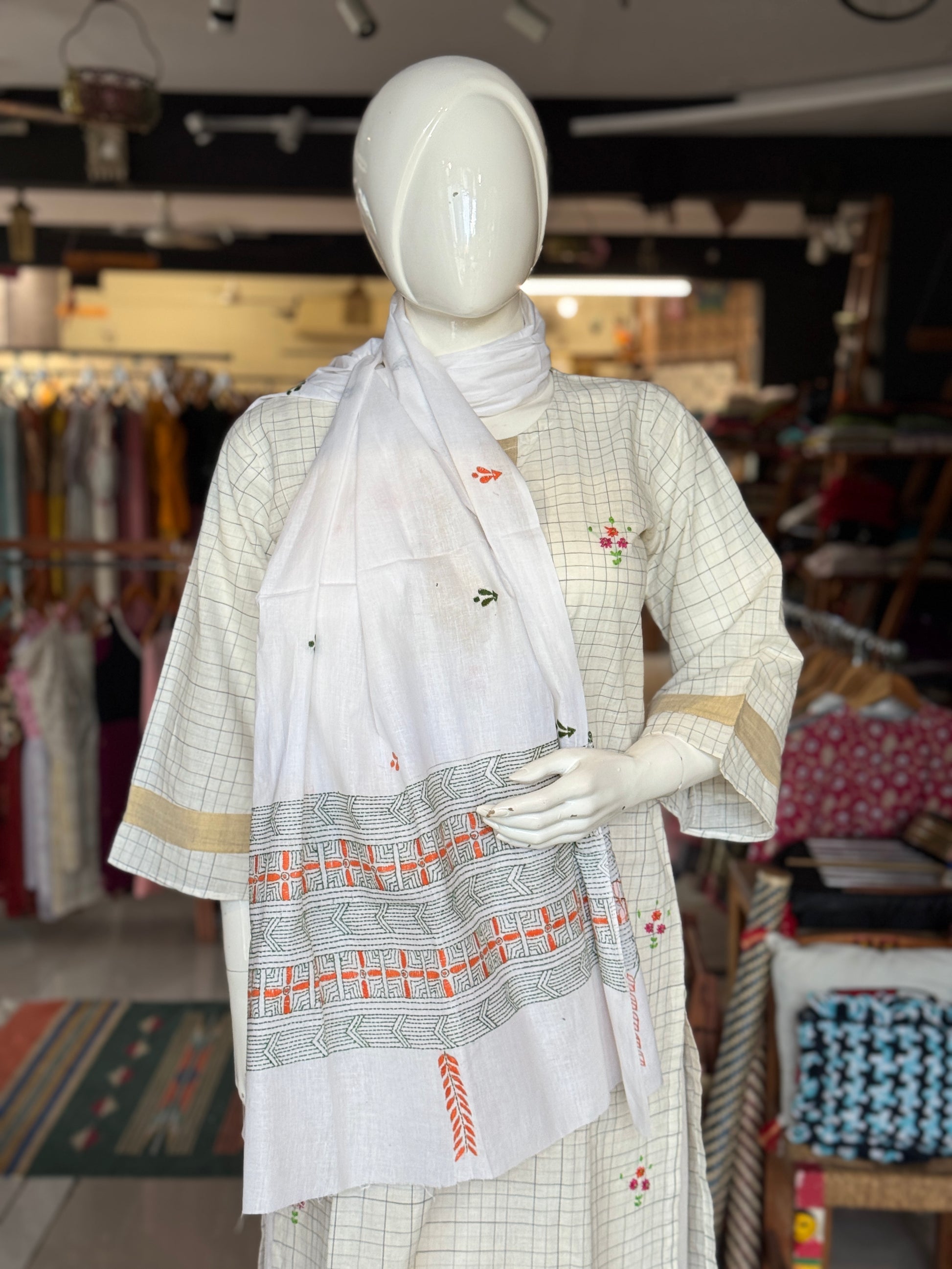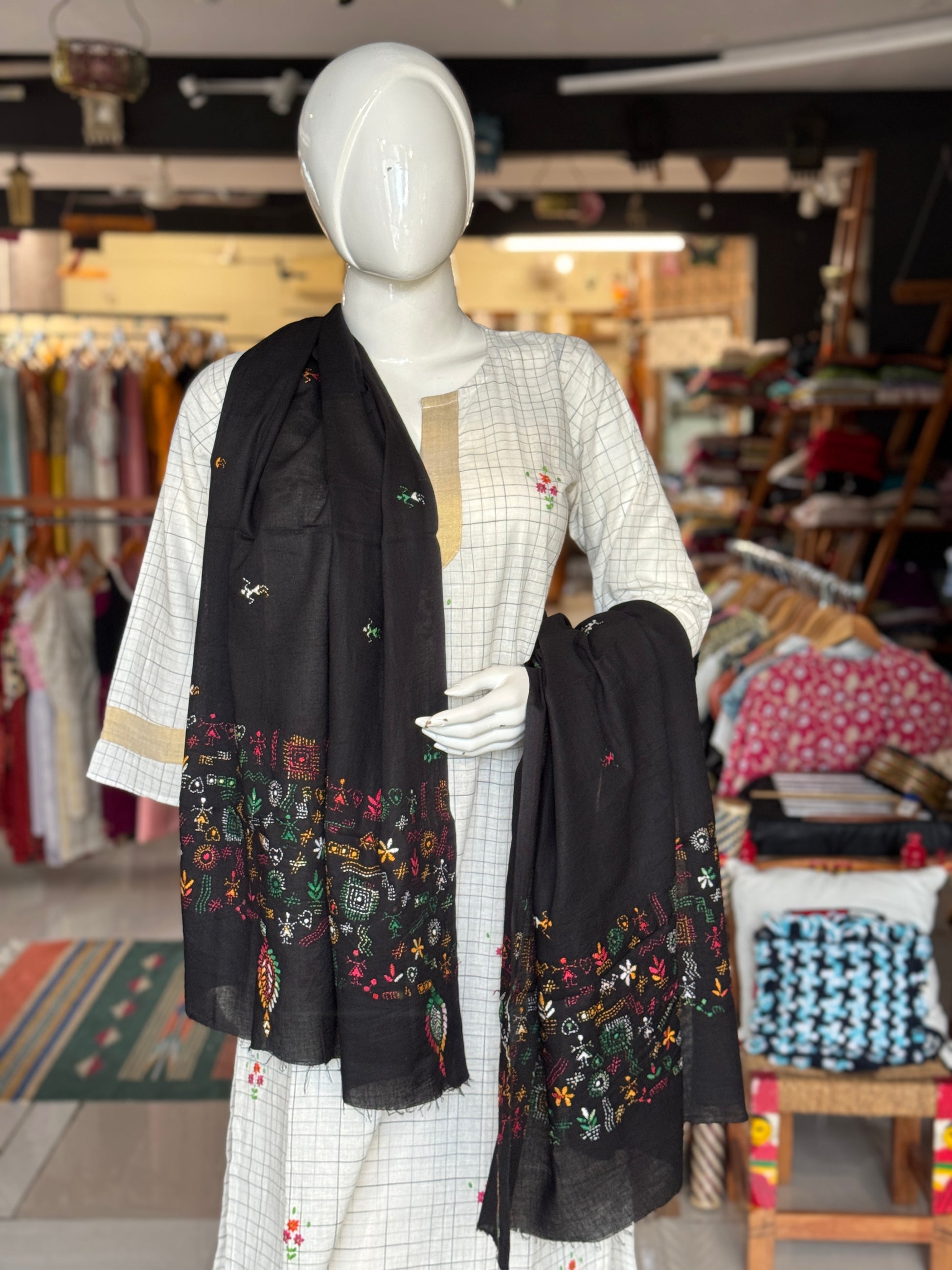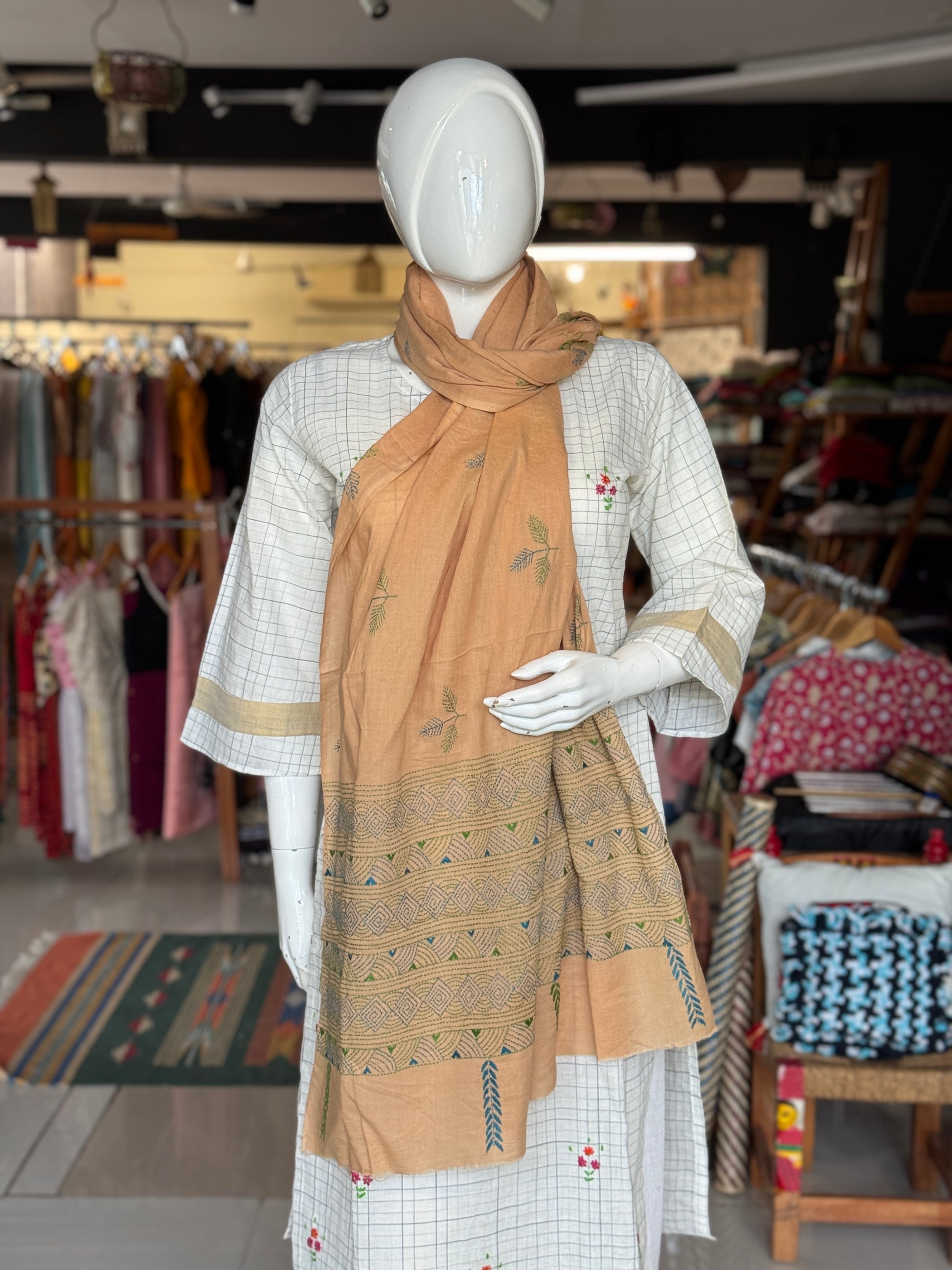 Kantha hand embroidered cotton stole - multiple colors n designs available