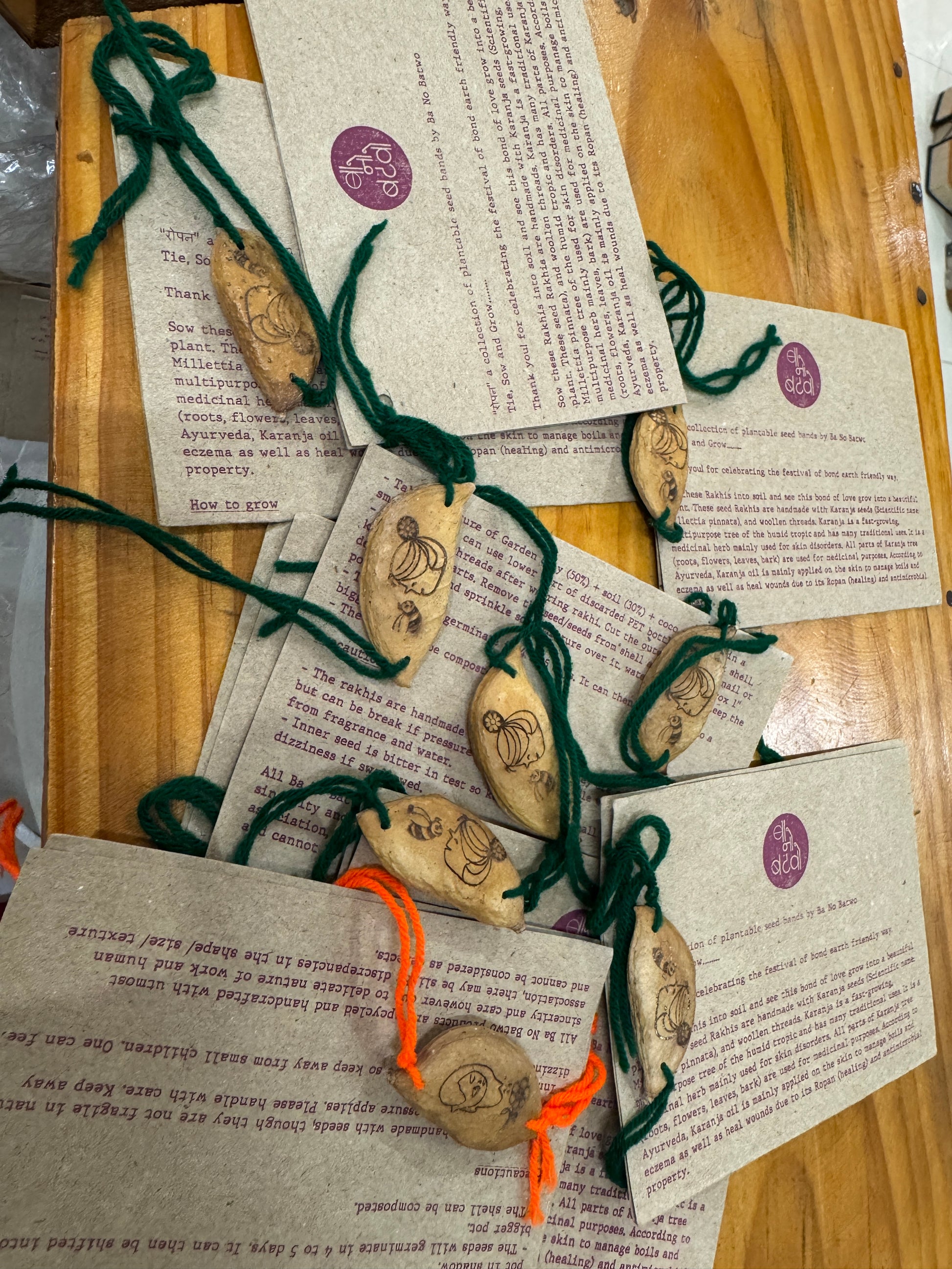 Karanja / Gaanuga / Ponga seed rakhi - hand crafted rakhi with etching / painting details - design options available
