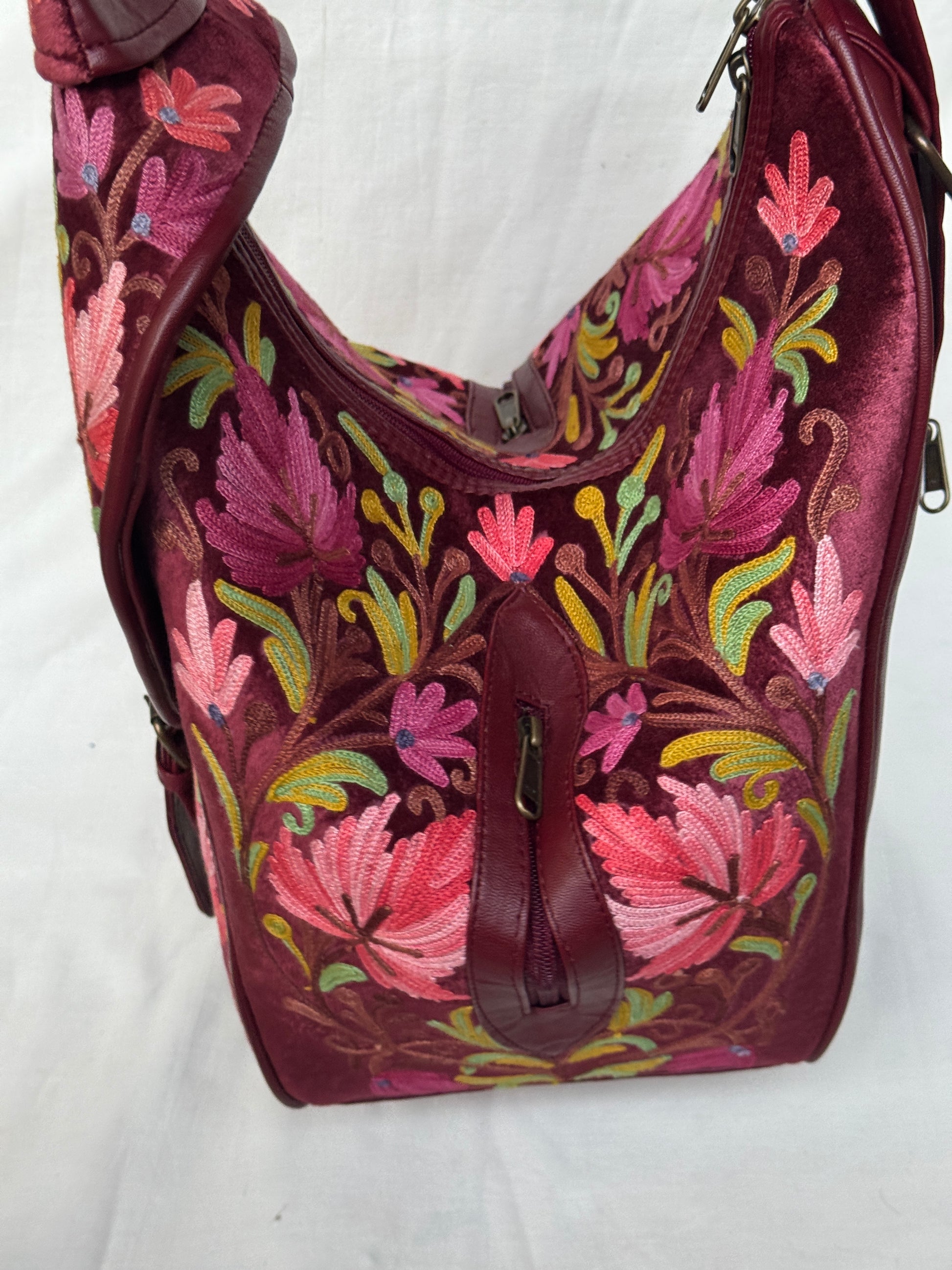 Kashmiri floral Aari embroidered back pack cum bag with adjustable length strap