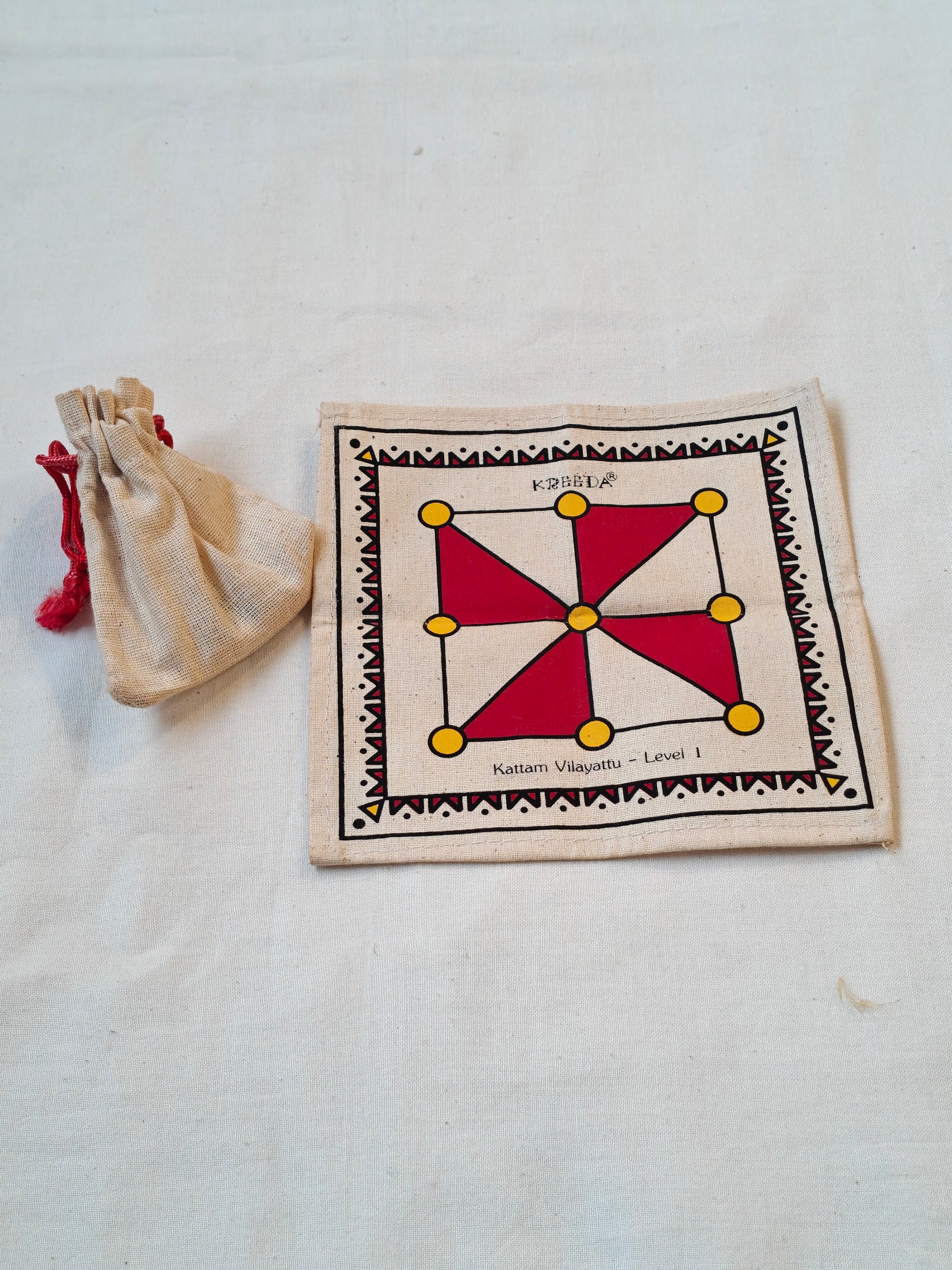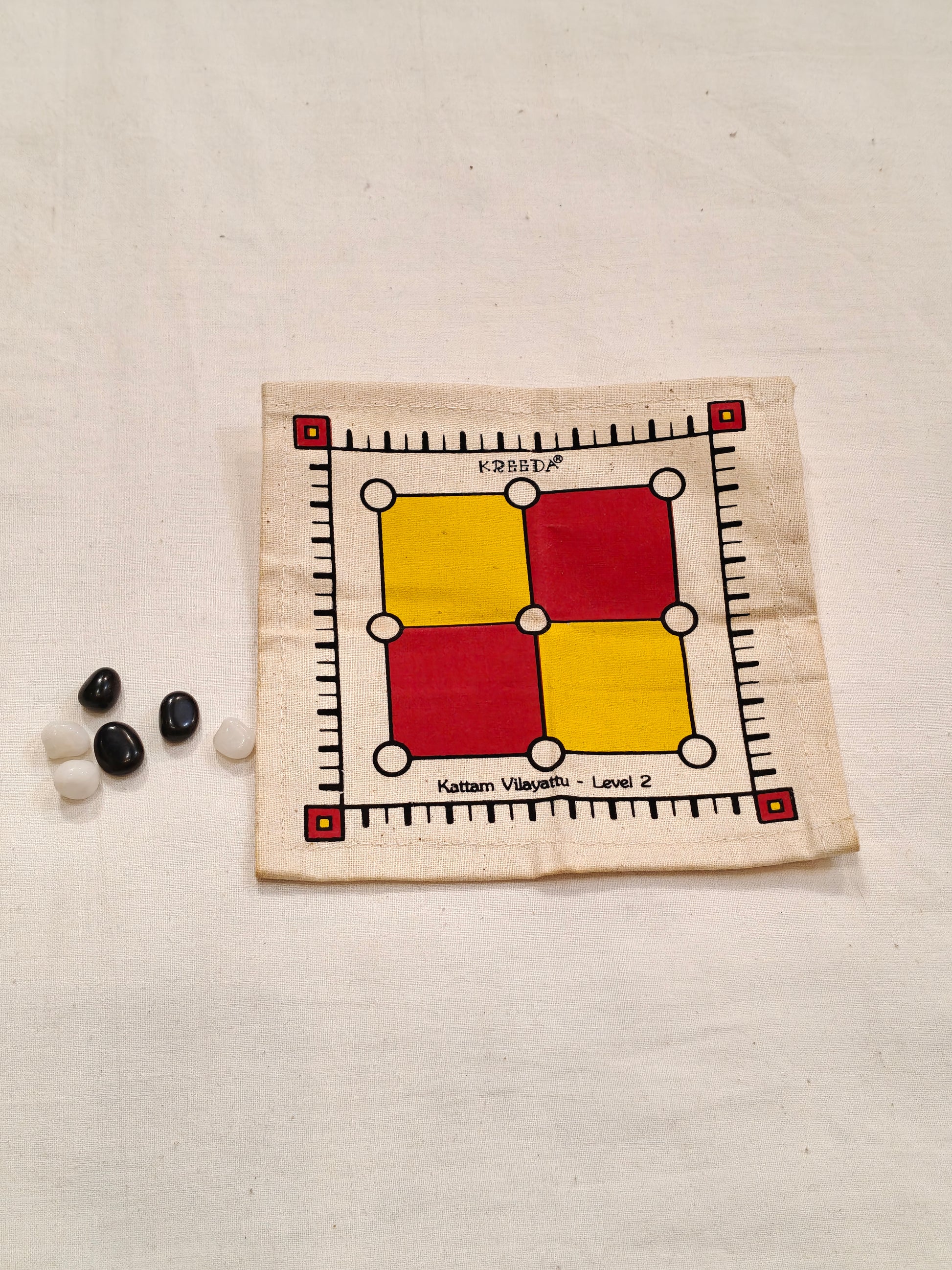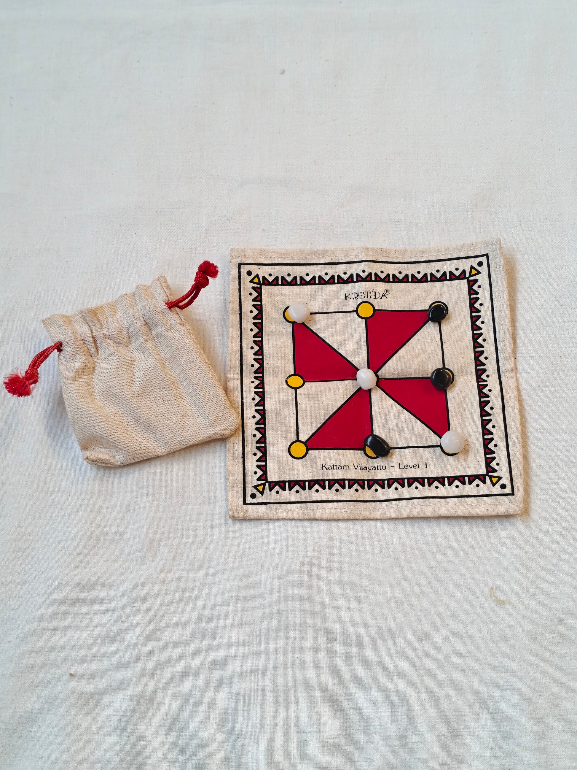 Kattam Vilayattu / Teen Goti / Noughts and Crosses / The Square Game - On fabric base