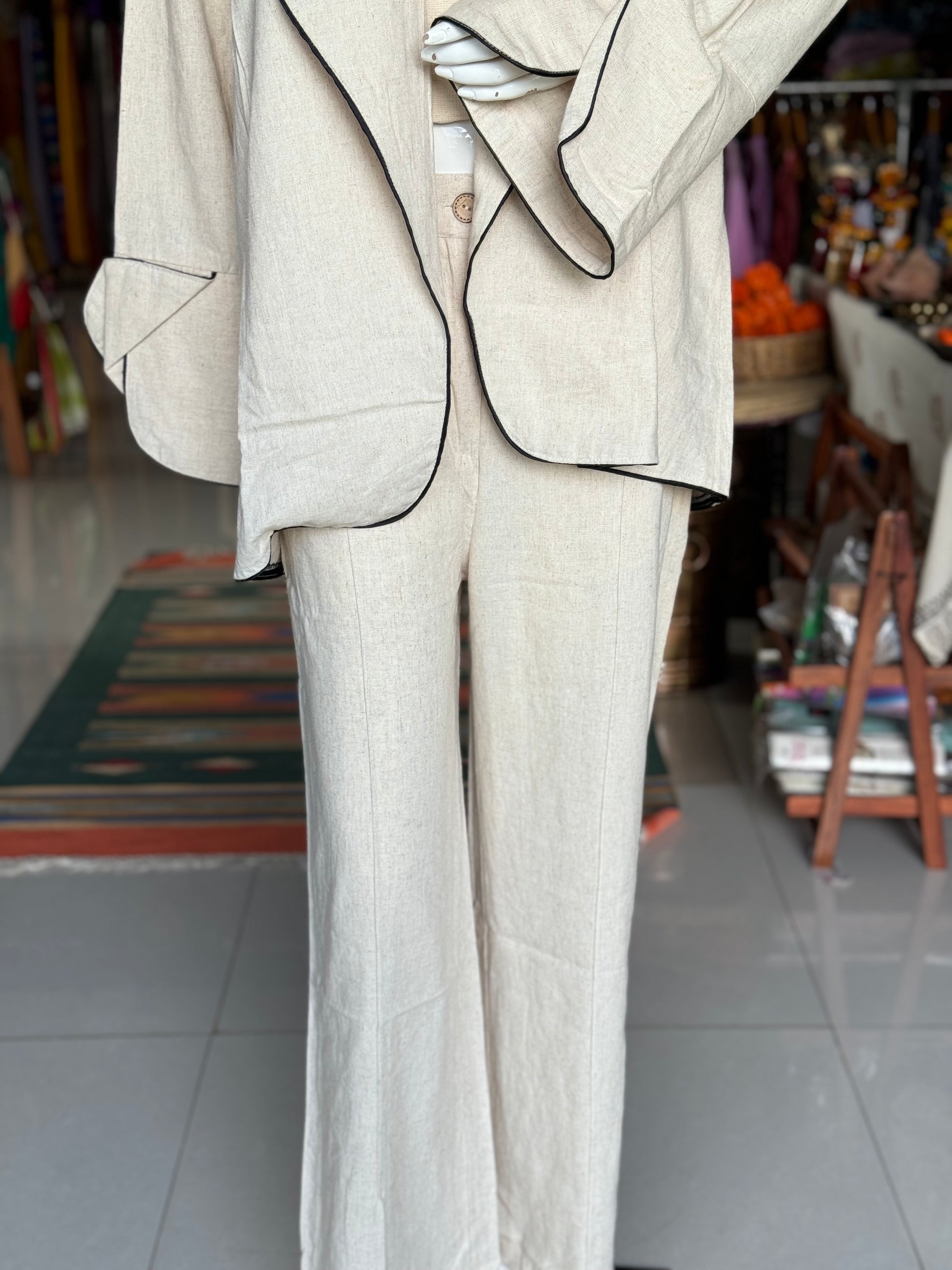 Kora cotton fancy sleeves and collar open cotton top and pants coord set