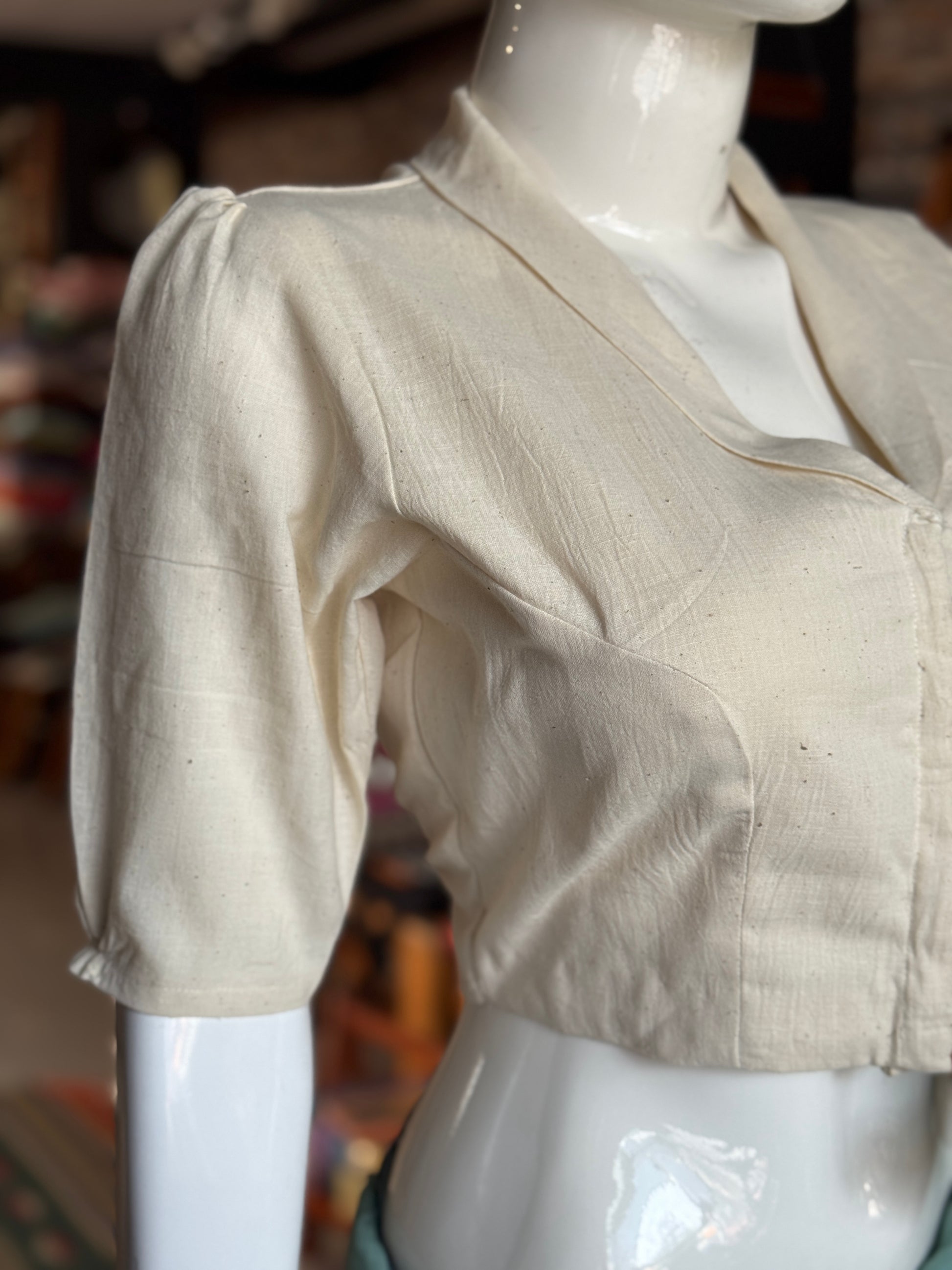 Kora off white hand spun, hand woven, collared cotton blouse