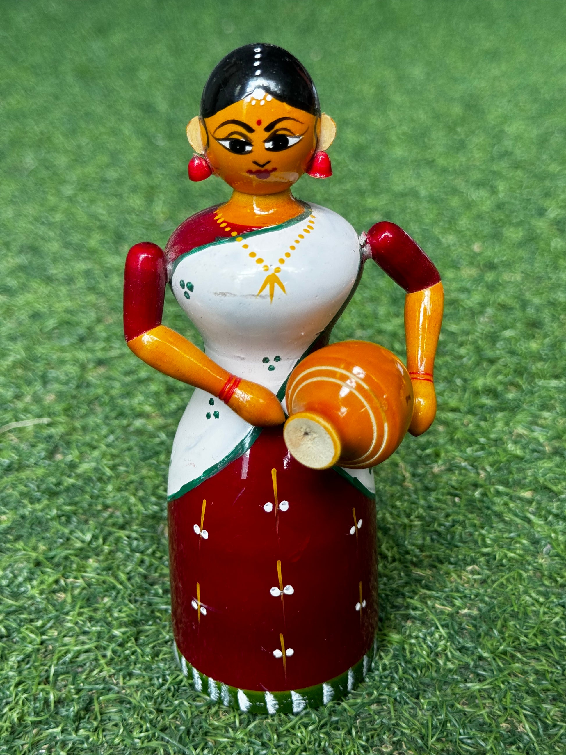 Lady in a half saree carrying pot - Etikoppaka Wooden handicraft decor