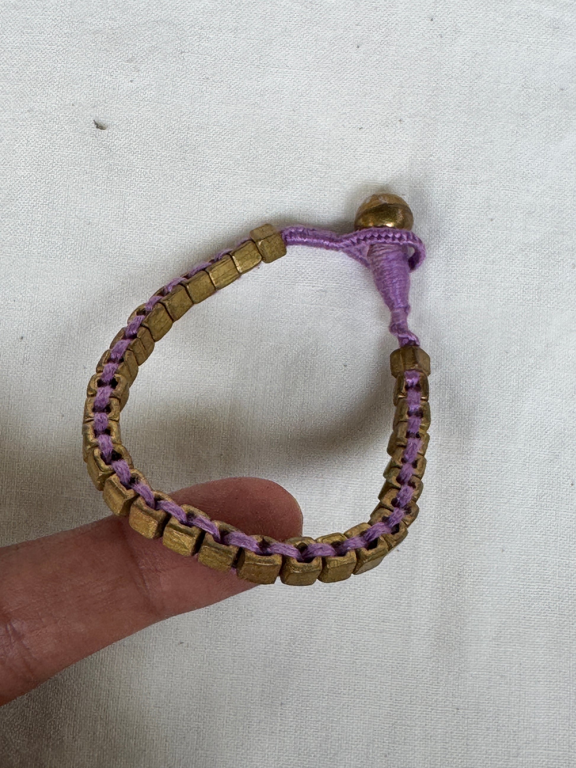 Lavender thread dokra brass beads handcrafted bracelet - single