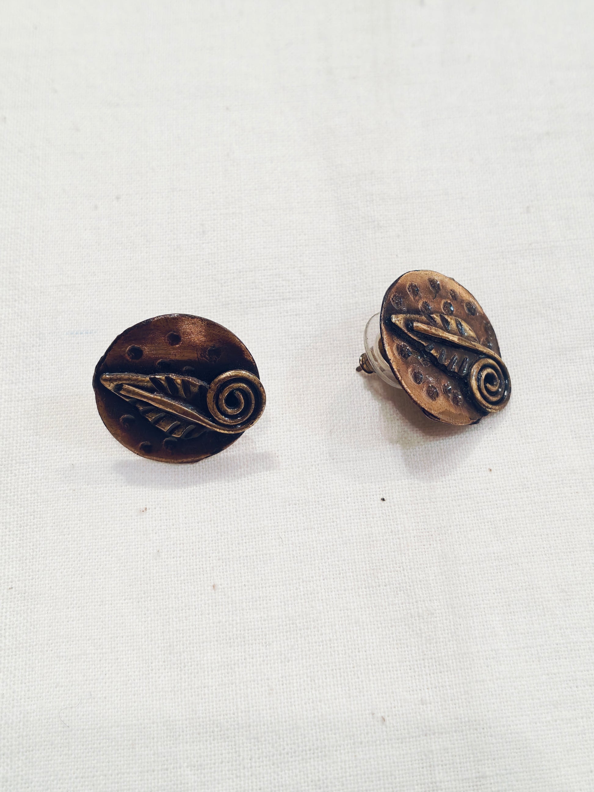 Leaf in a circle handcrafted copper n brass stud earrings