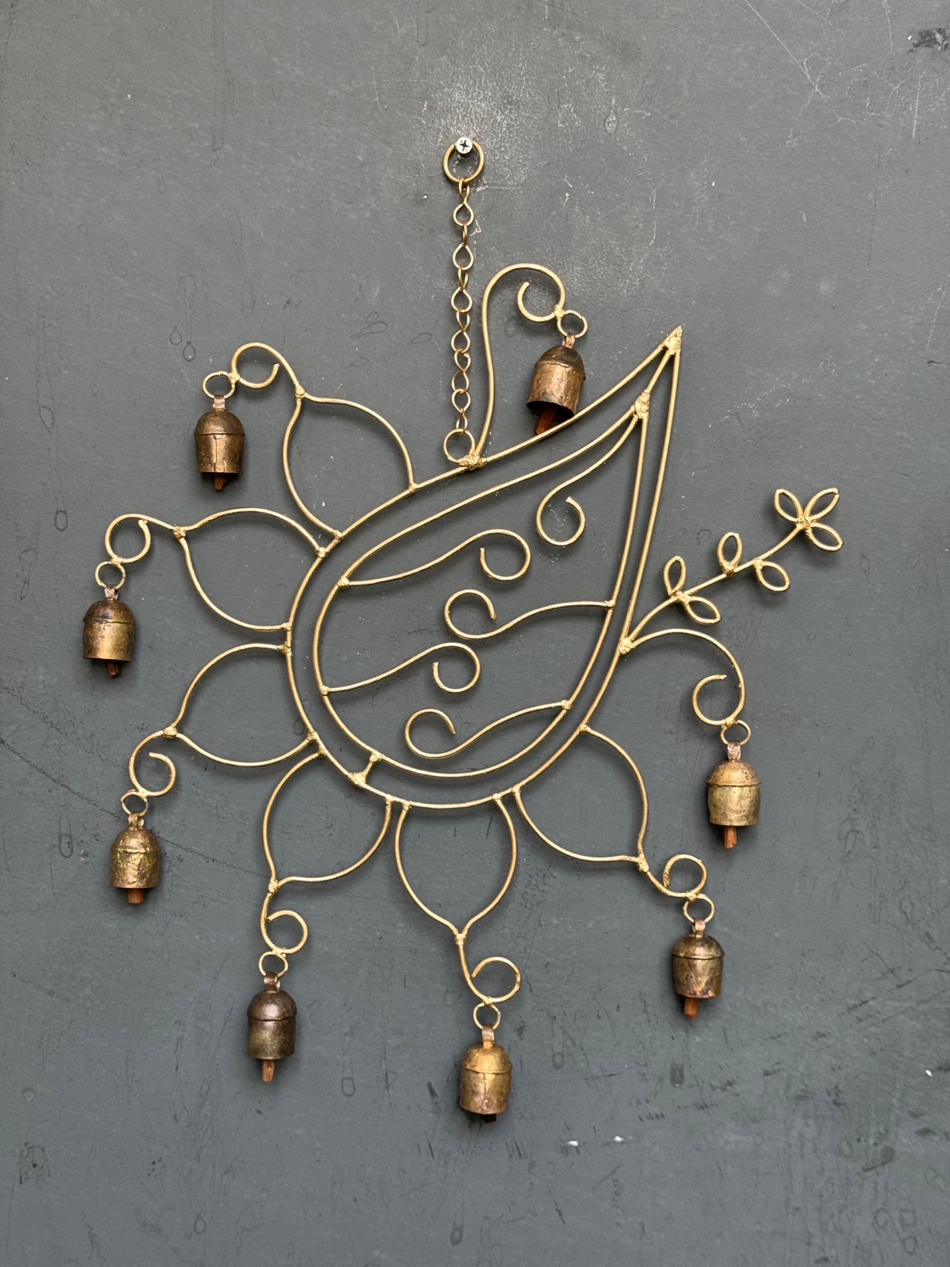 Leaves and flowers - copper handcrafted 8 bells hanging