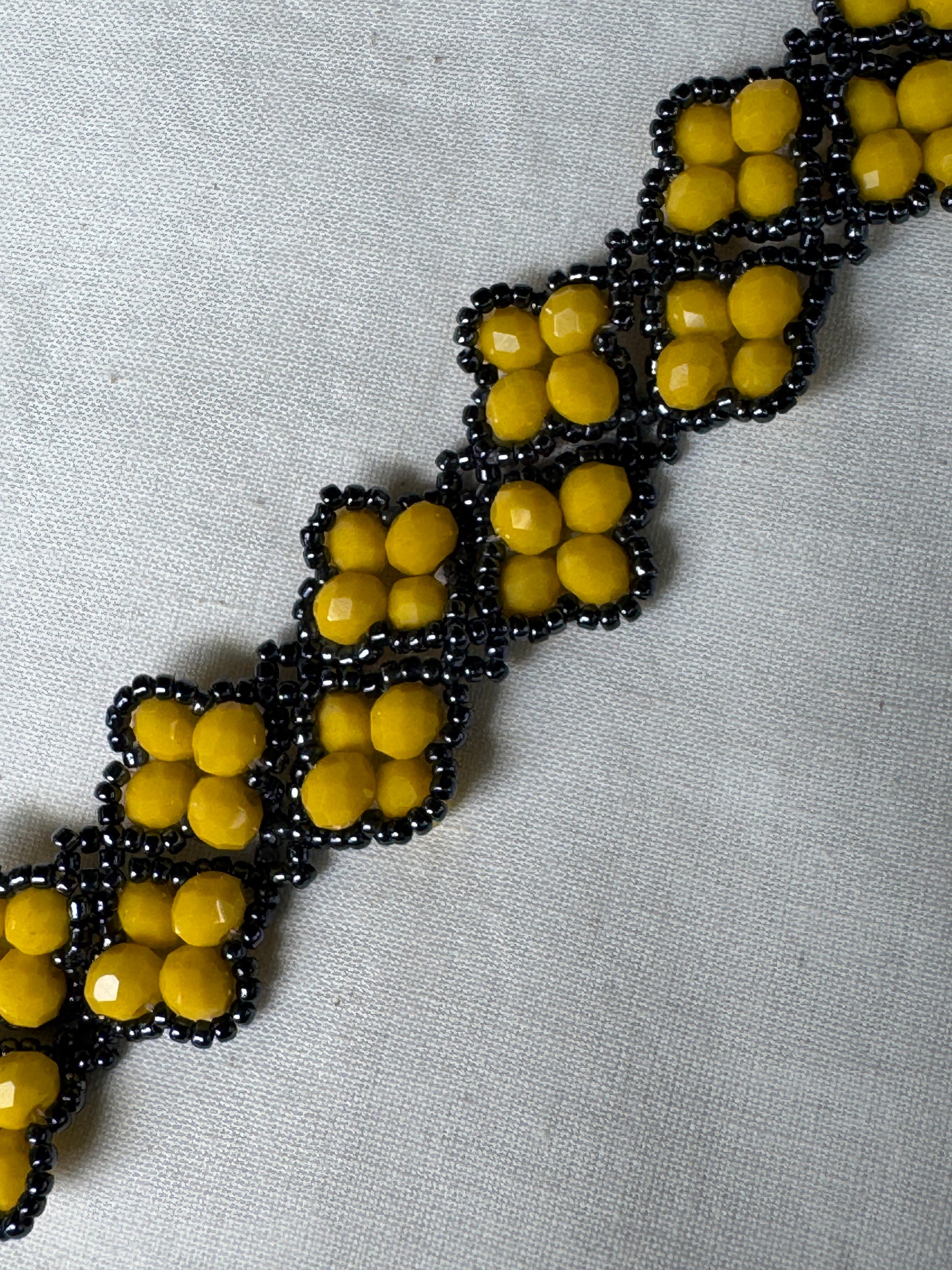 Lime and grey tone beads bracelet - handcrafted with glass and poth beads
