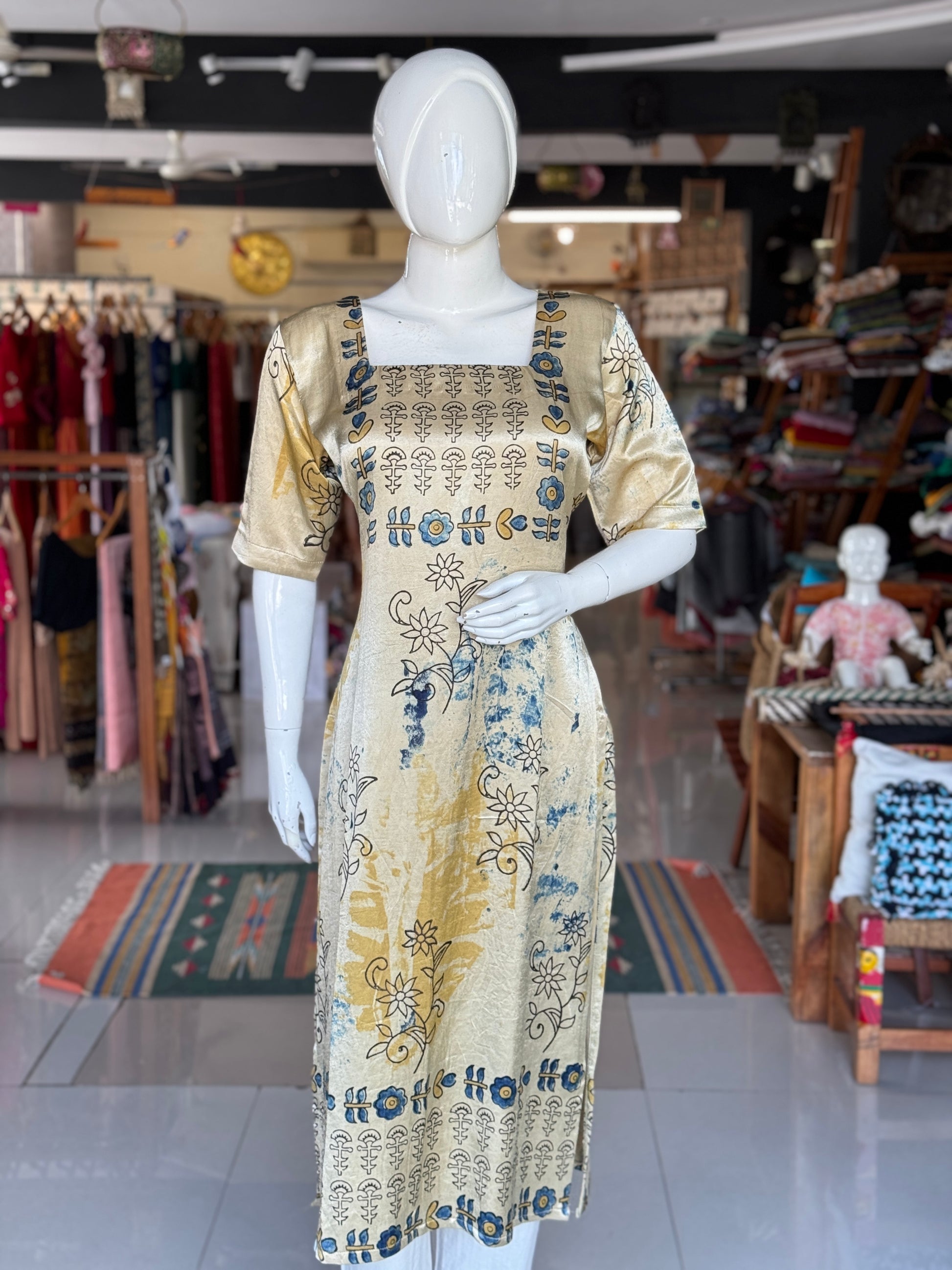 Mashru straight cuts kurti with Ajrakh hand block prints - click to see options