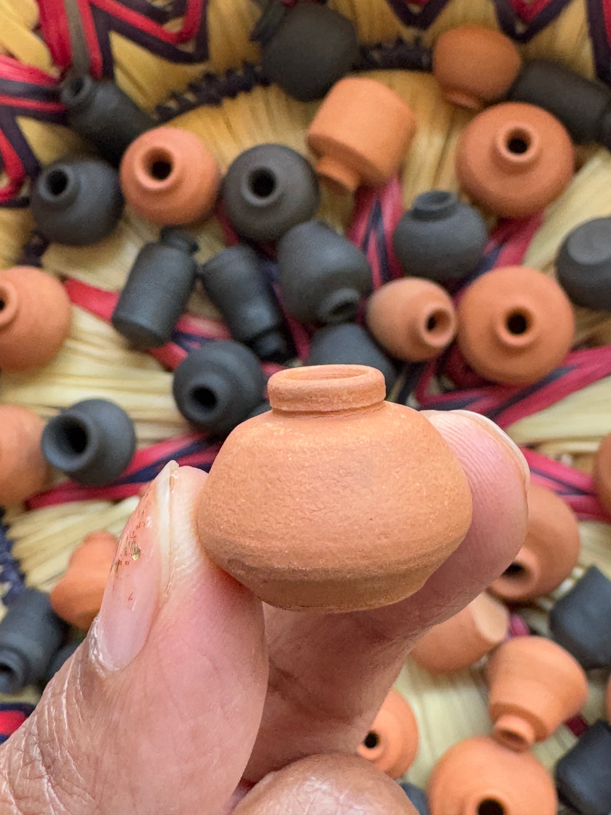 Miniature handcrafted clay pots - under 1 inch - set of 10