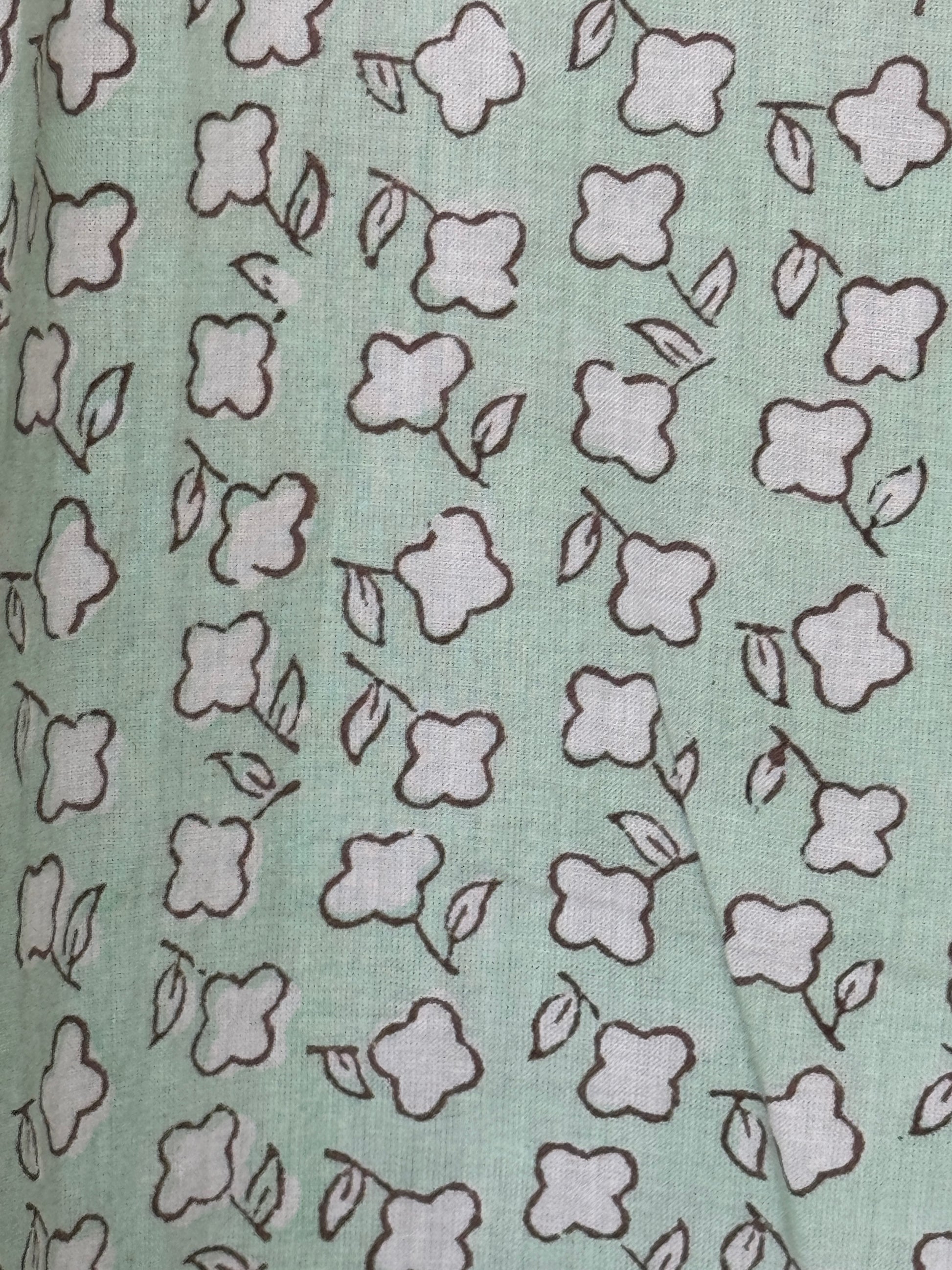 Mint green hand block printed square neck dress with front slit and frill hemline