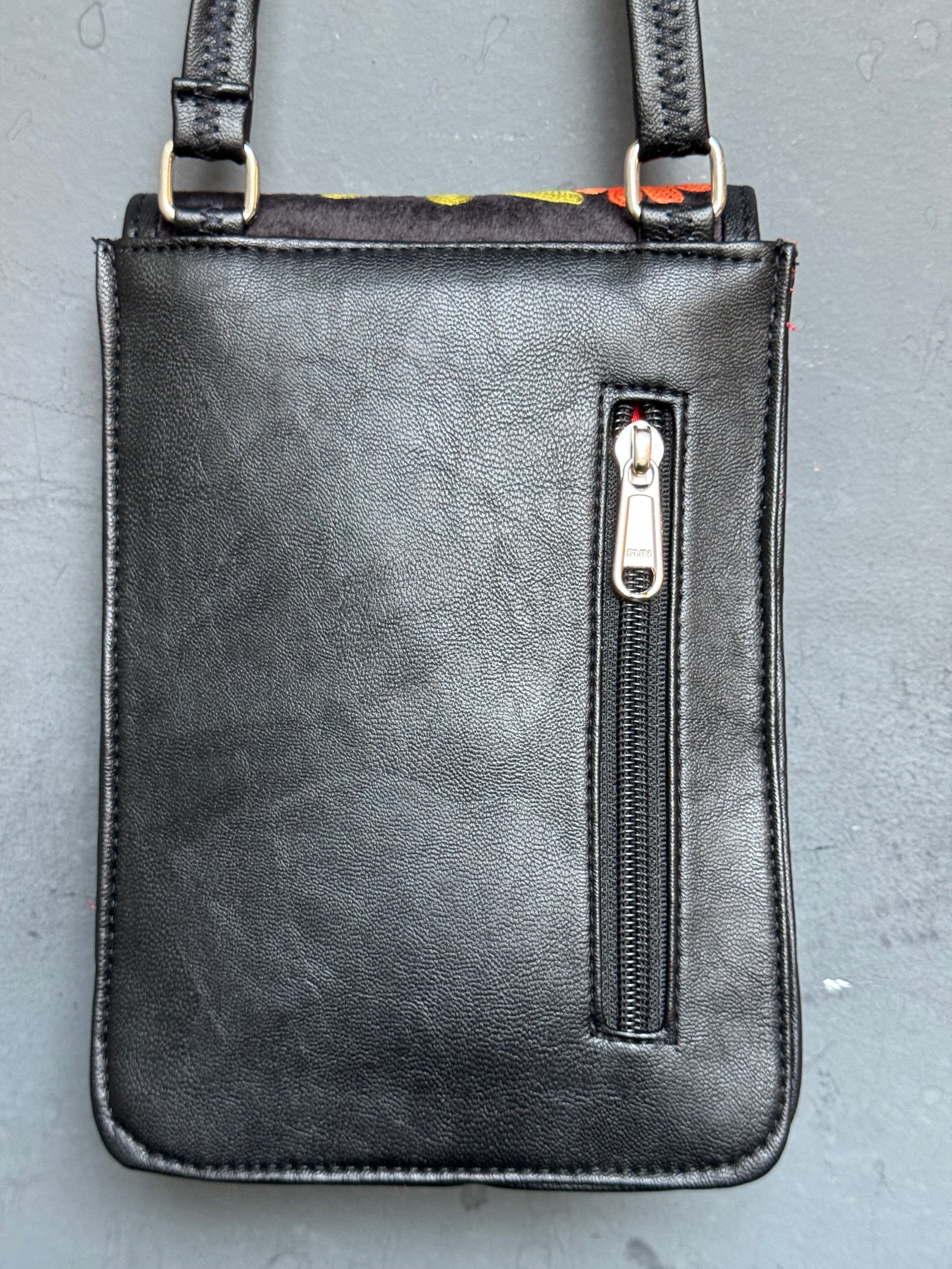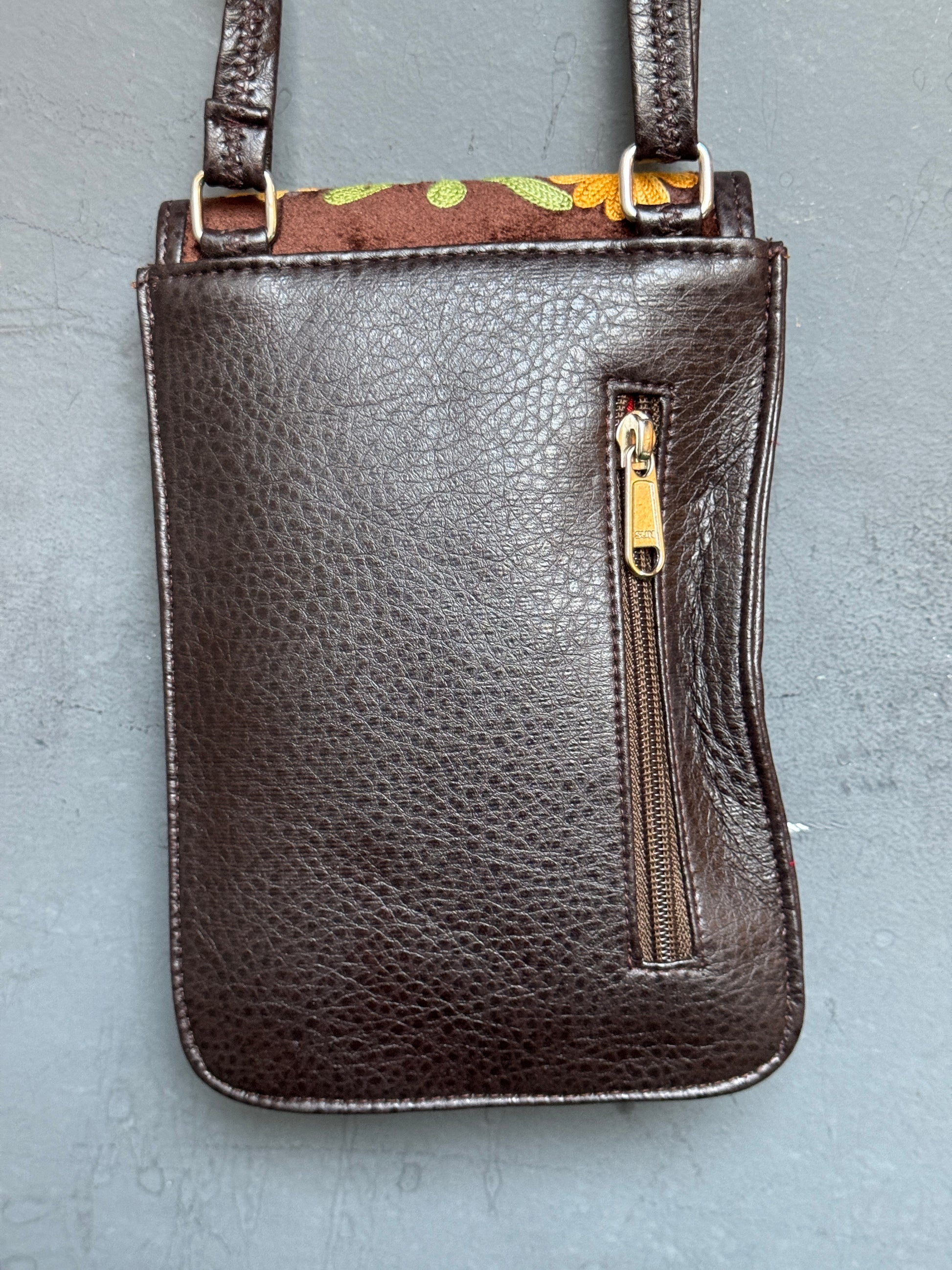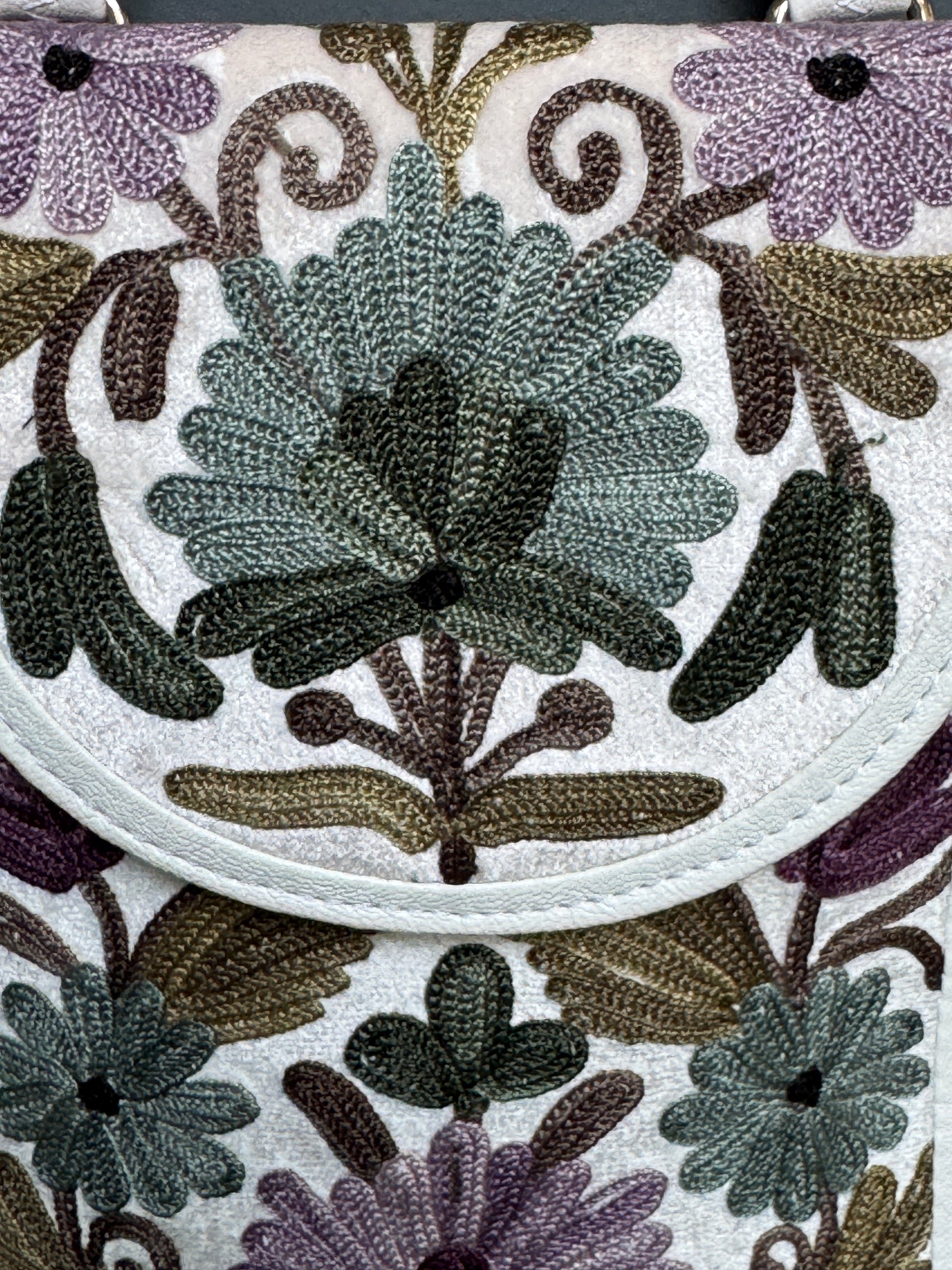 Mobile phone sling pouch - Kashmiri floral Aari embroidered with adjustable length strap and zippered back pocket - colors available