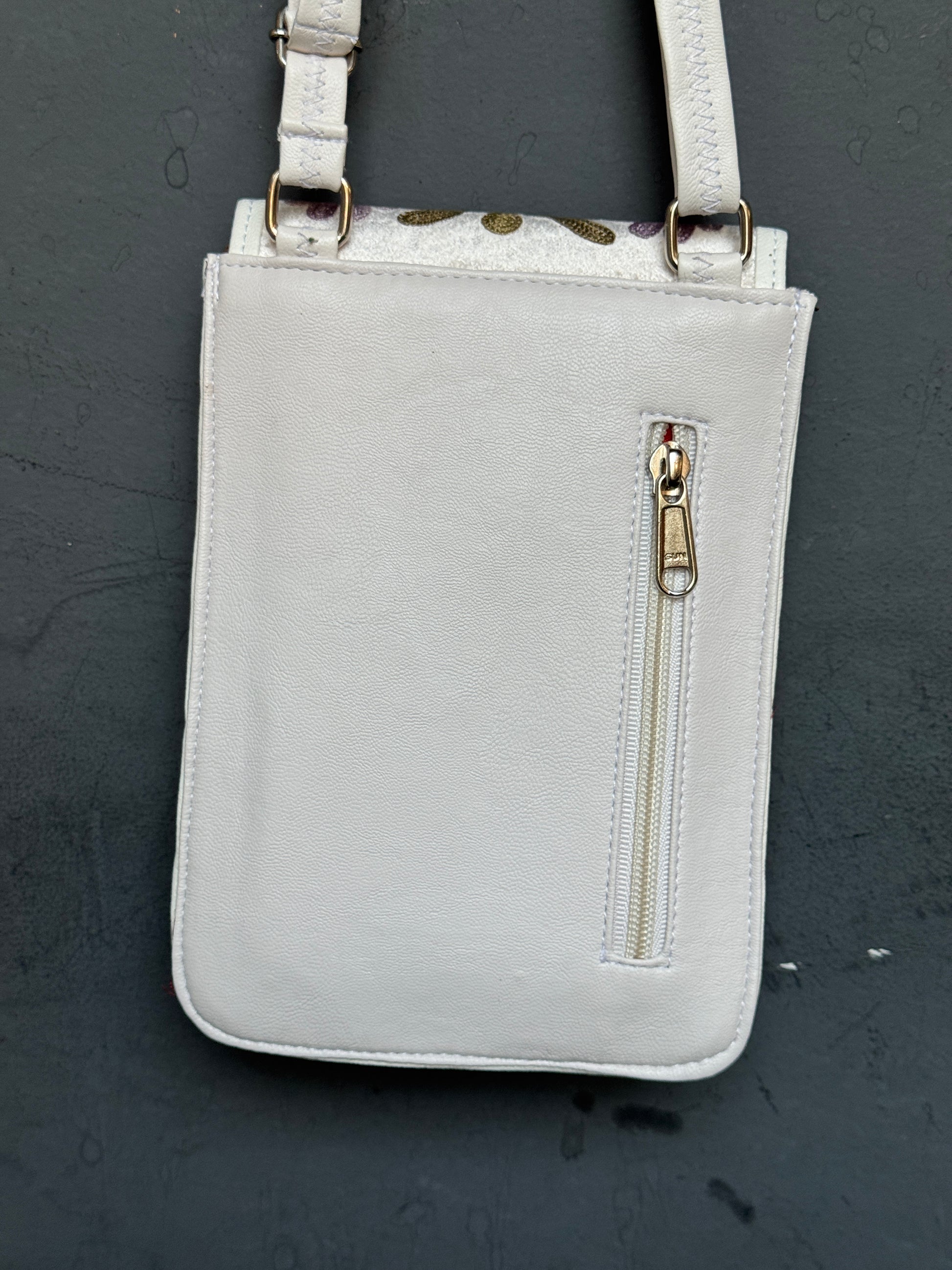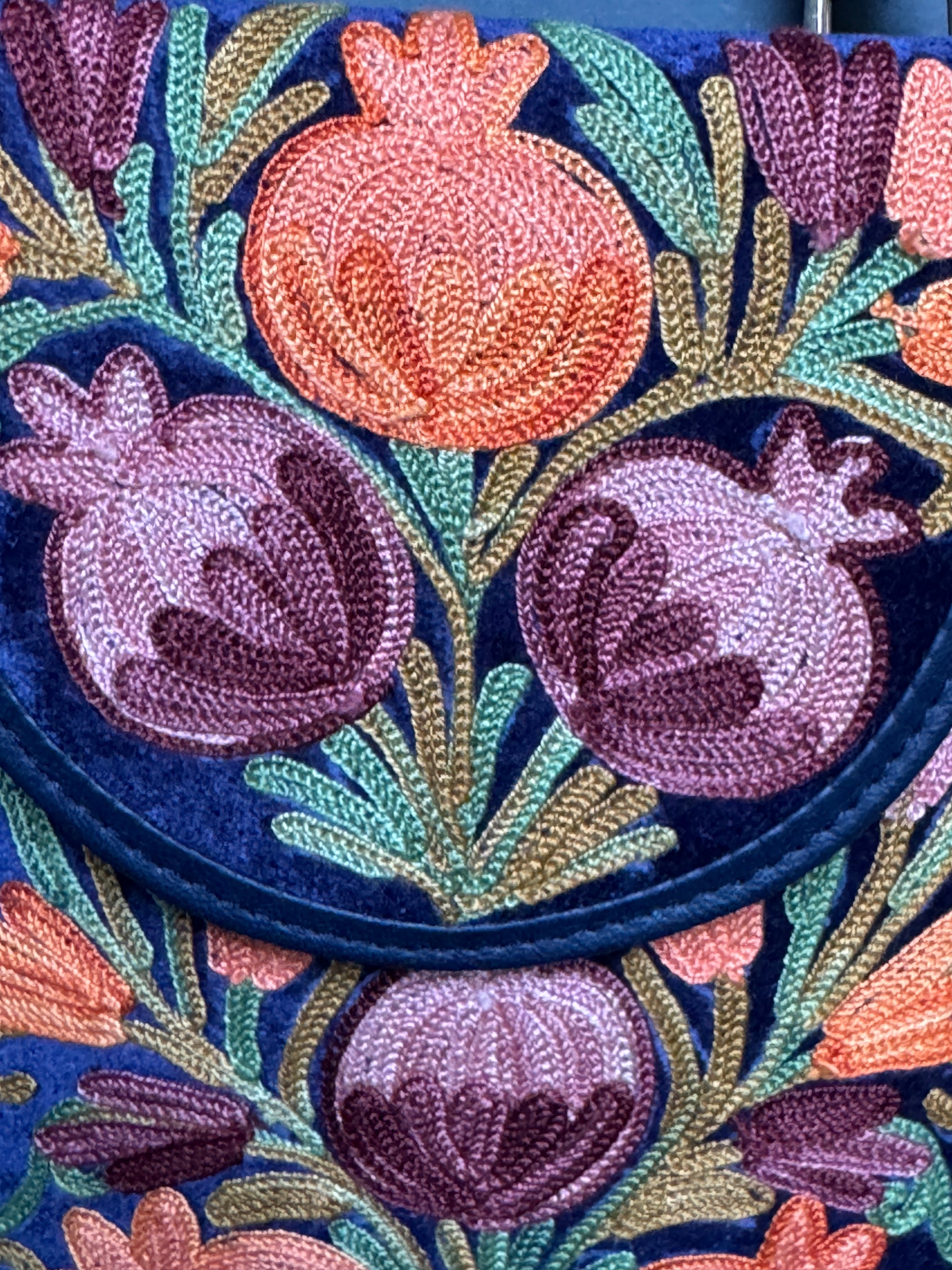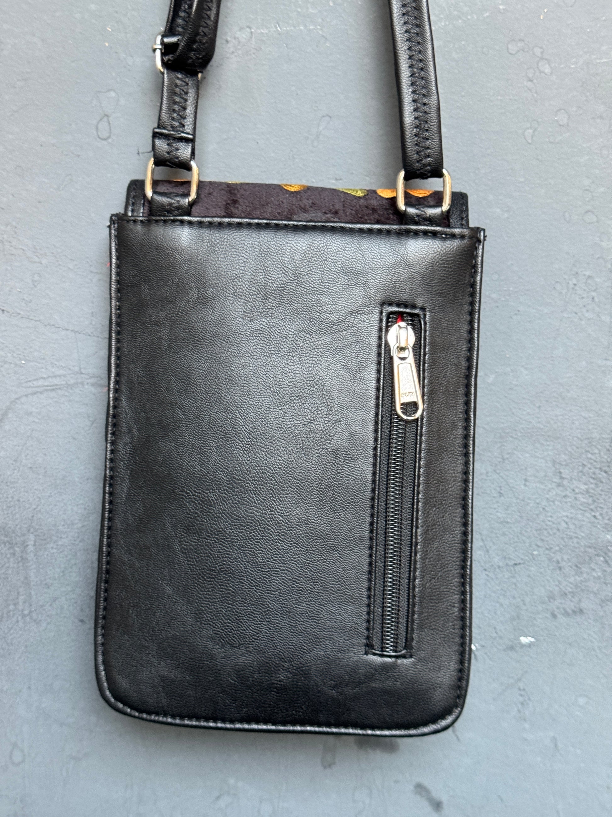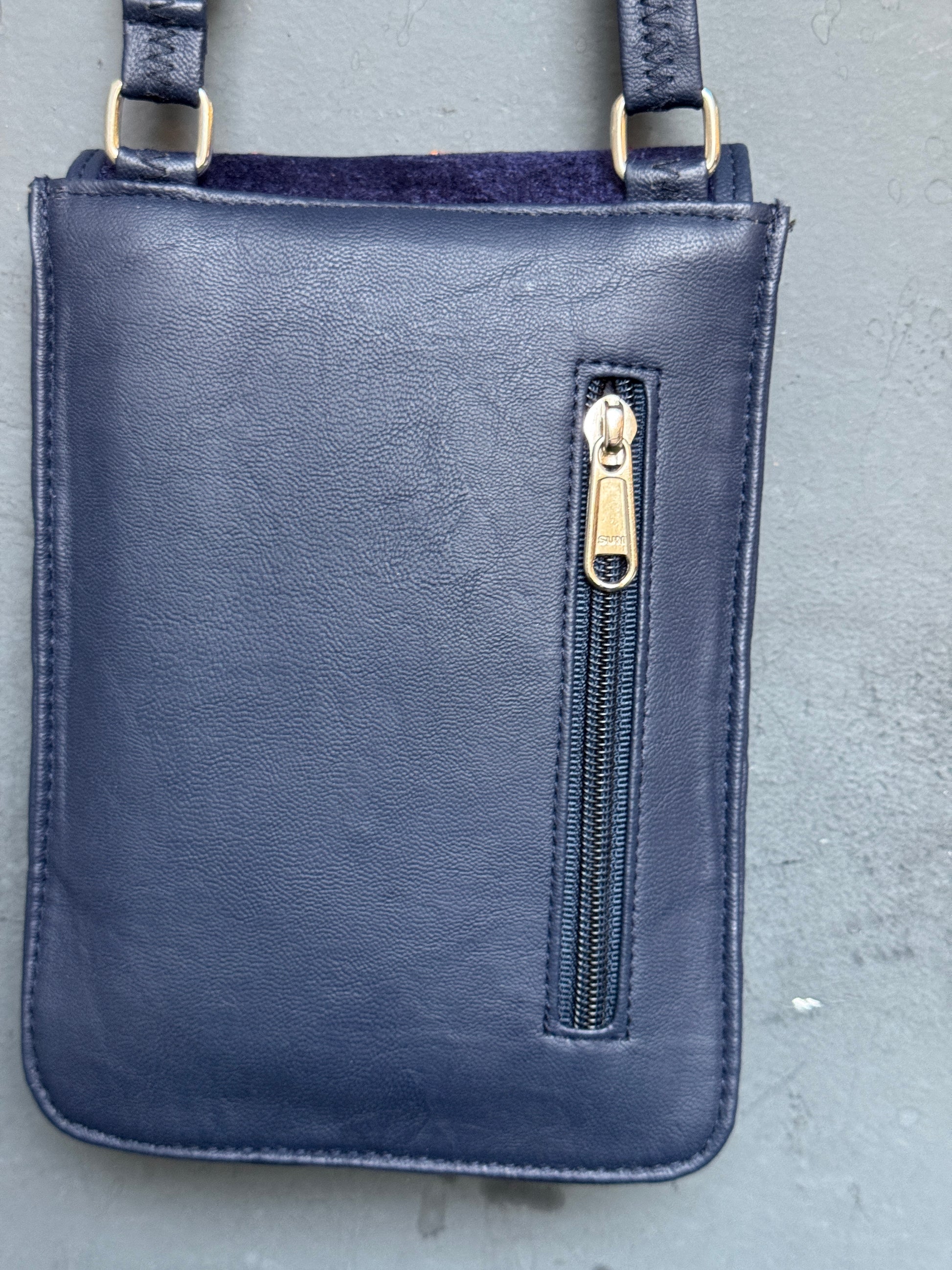 Mobile phone sling pouch - Kashmiri floral Aari embroidered with adjustable length strap and zippered back pocket - colors available