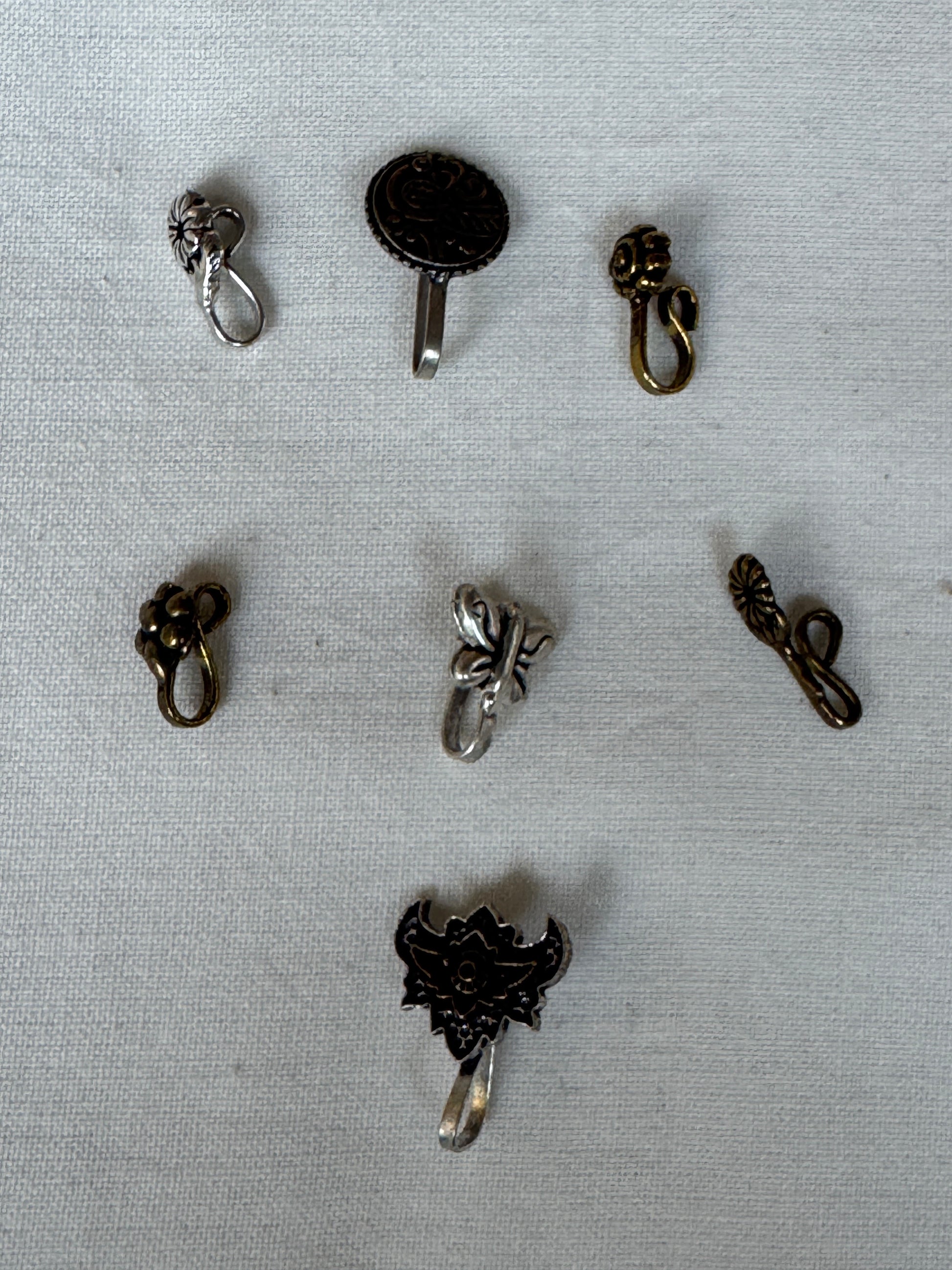 Nose pin - clip on, pressing style - Silver plated brass - multiple designs available