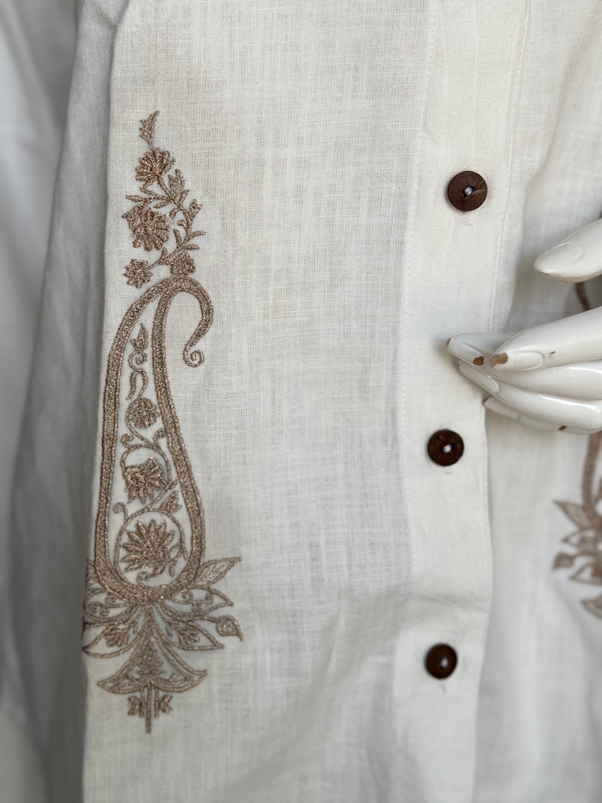 Off white embroidered flex cotton full sleeves shirt for women