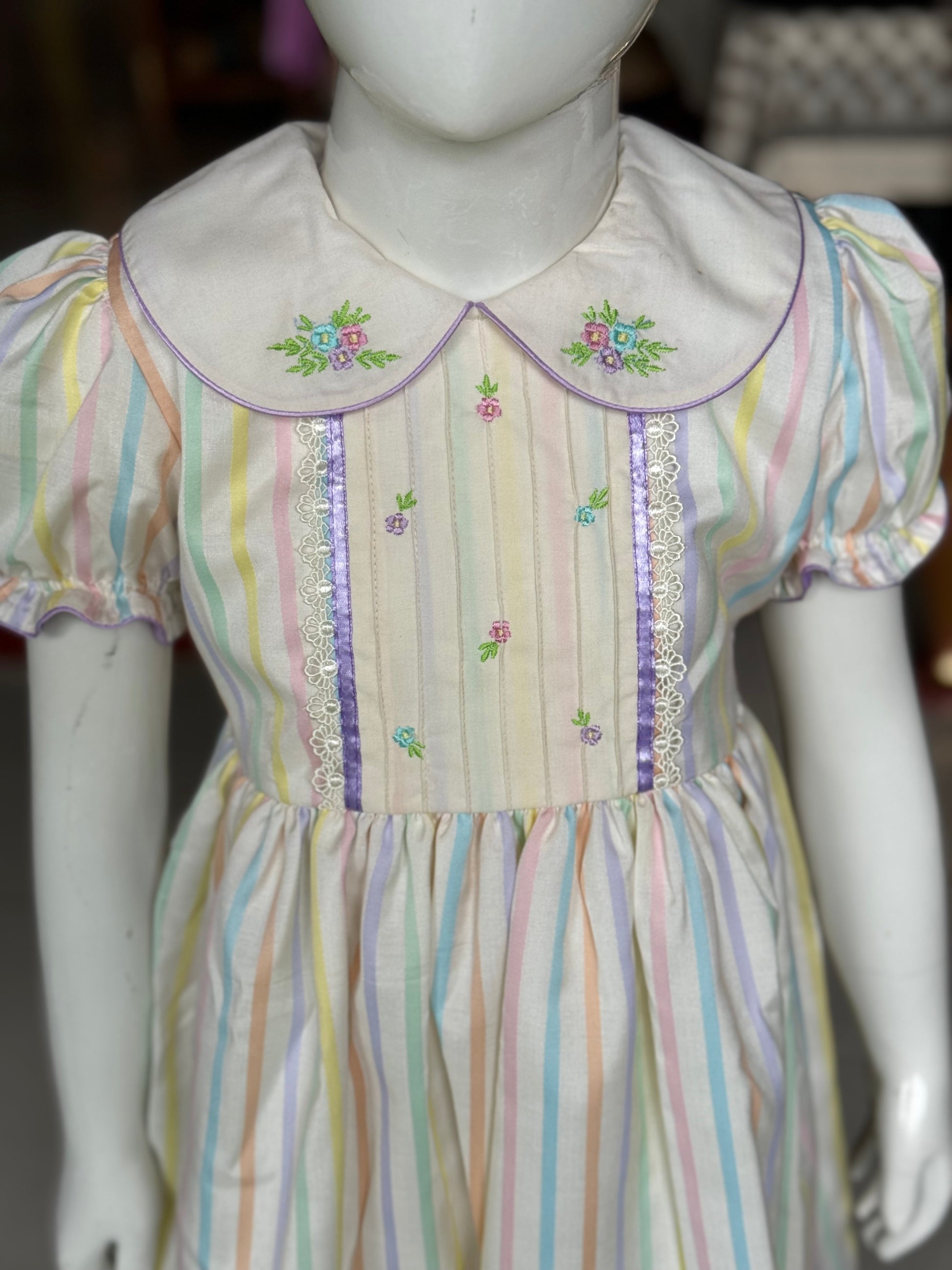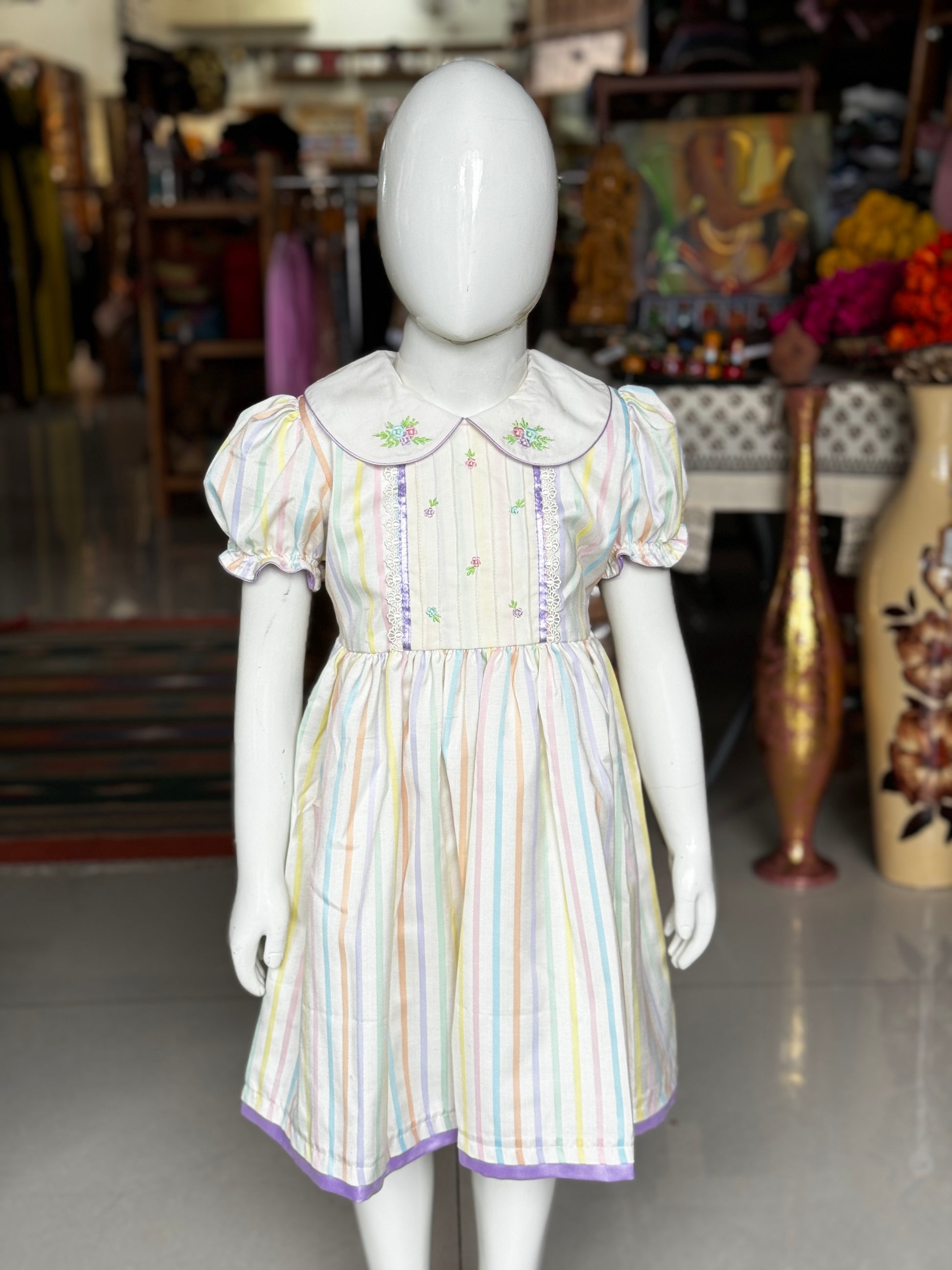Off white embroidered frock with colorful stripes print