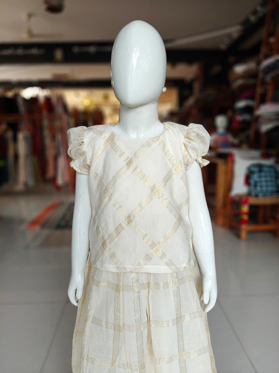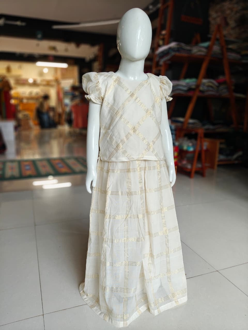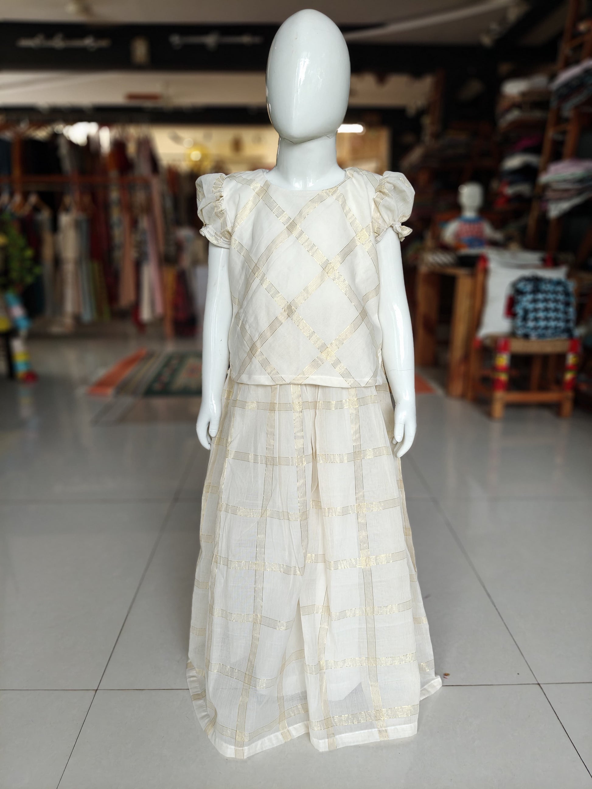 Off white Venkatagiri handwoven lehenga skirt and top - with Zari squares all over - coord set