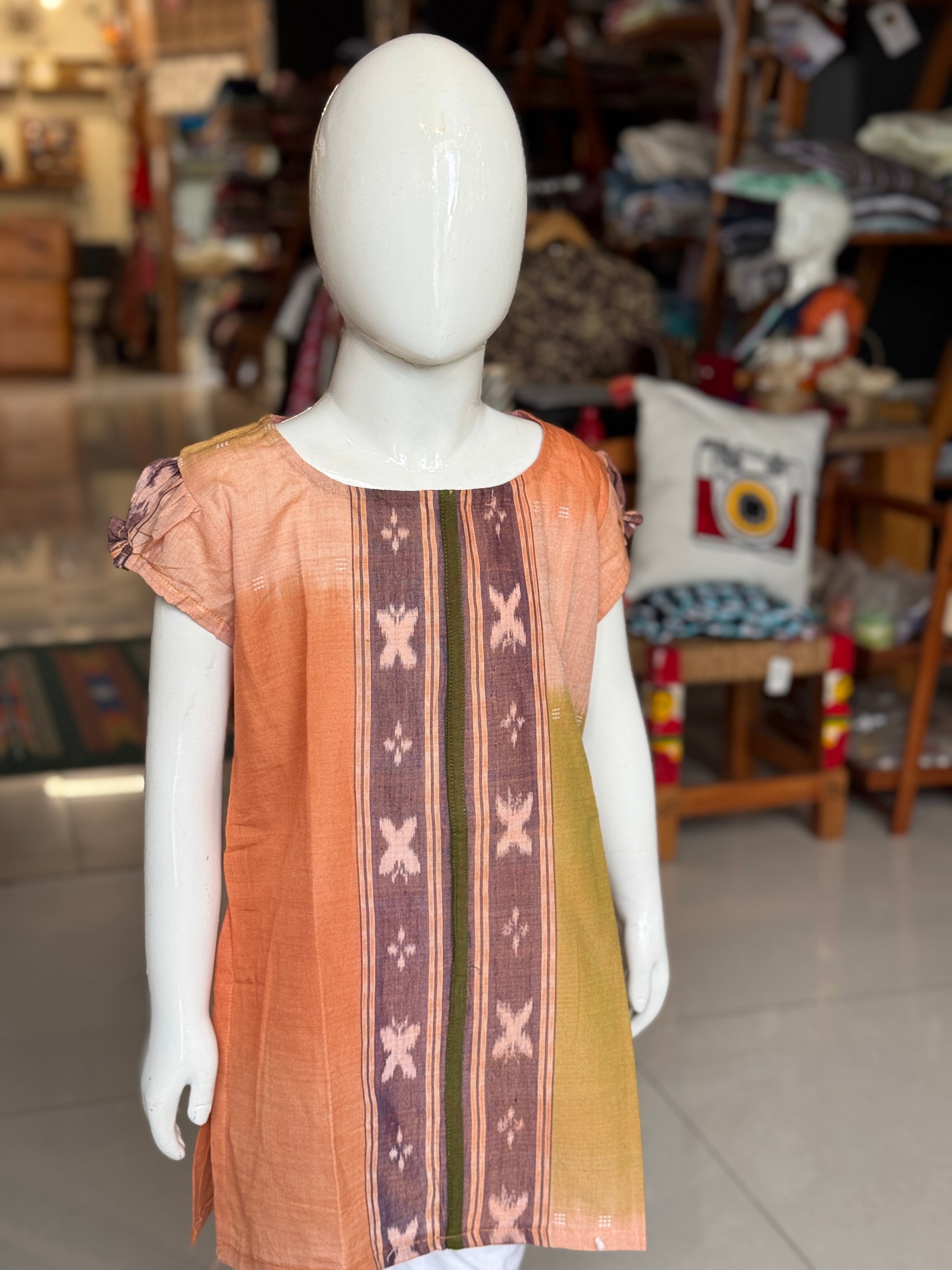 Orange mauve handloom ikat cotton straight cut kurti for girls