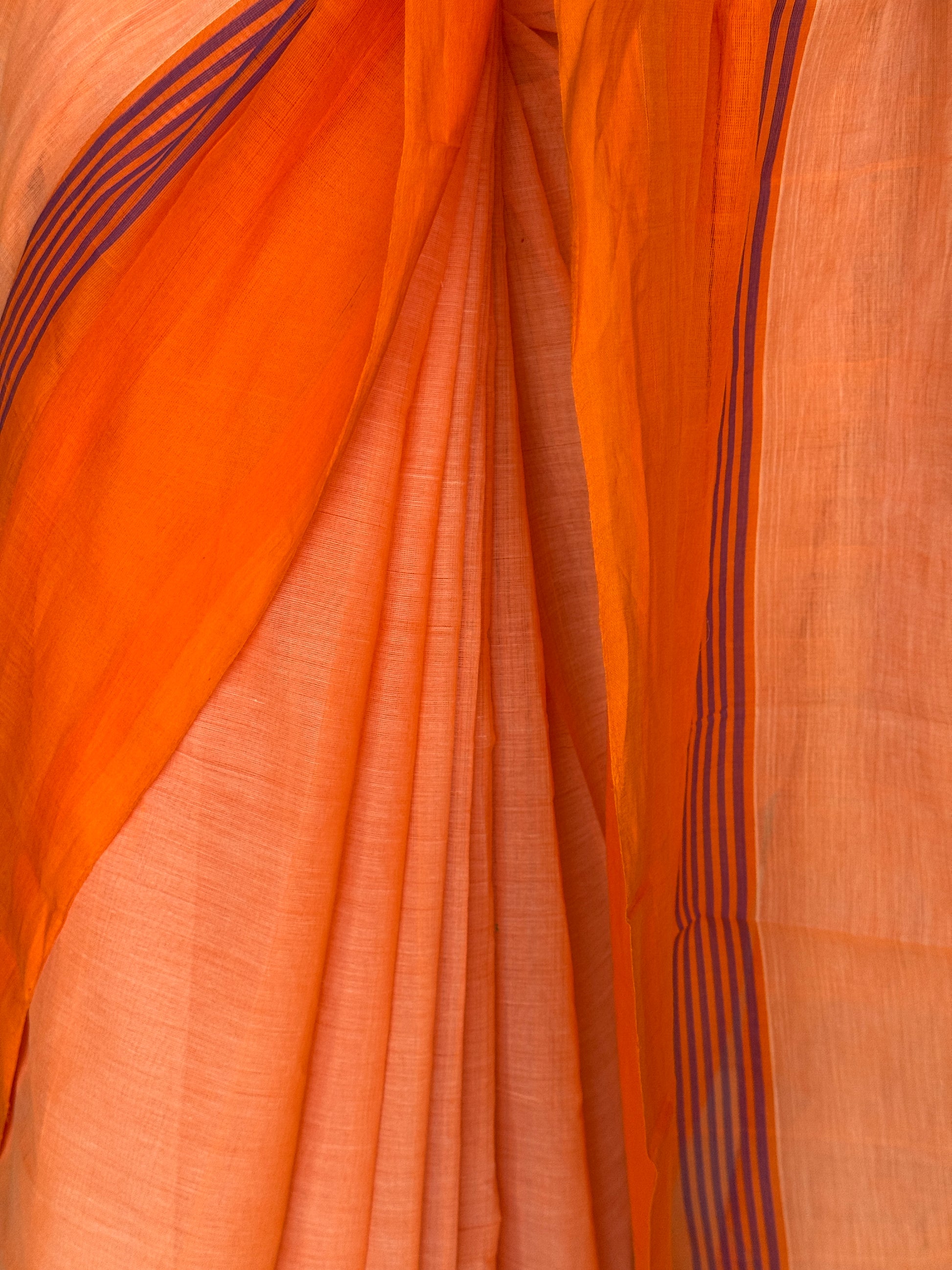 Orange plain cotton saree with stripes wide border light weight soft handloom Bobbili cotton saree