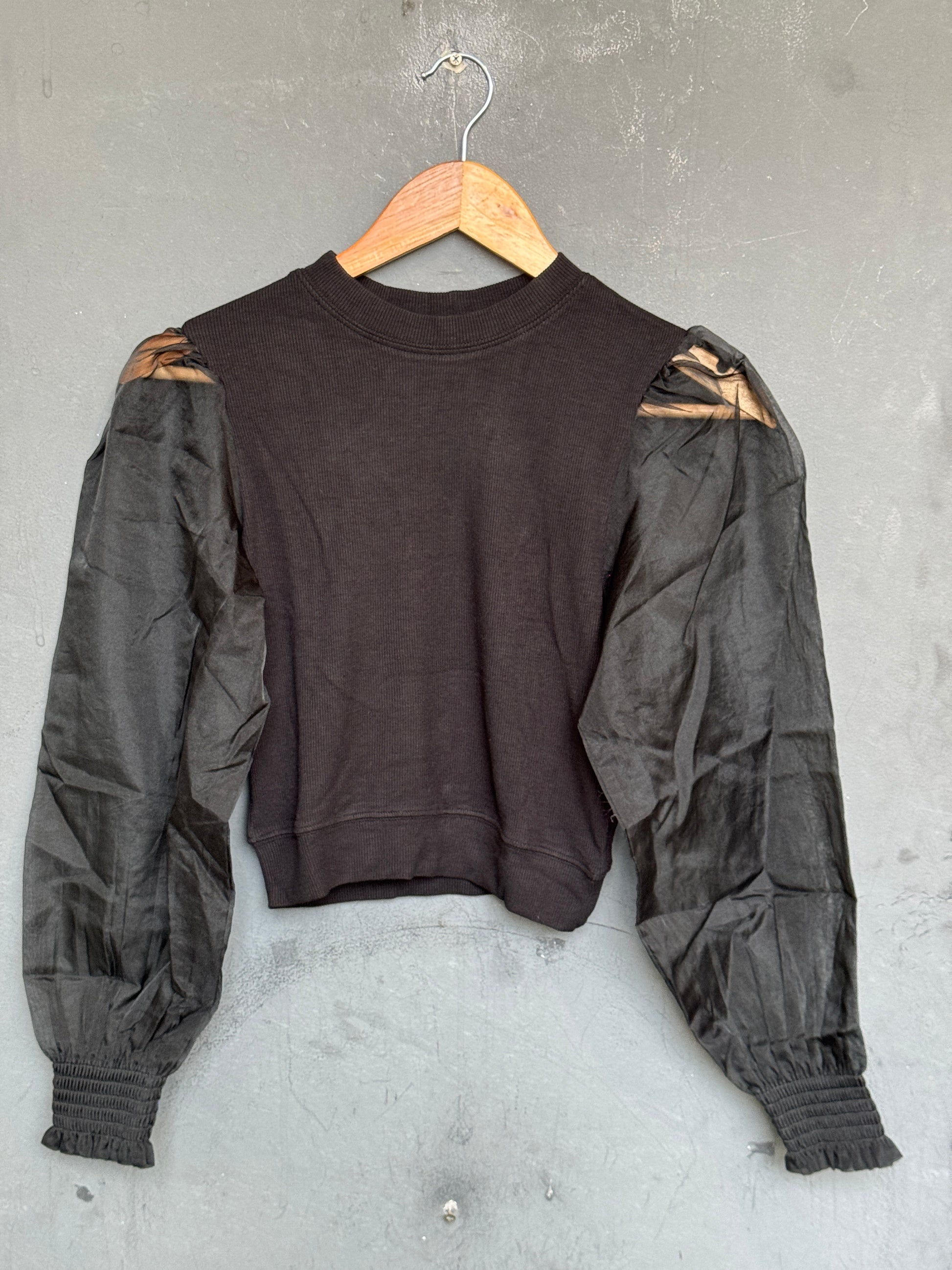 Organza black long sleeve stretchable cotton blouse / crop top