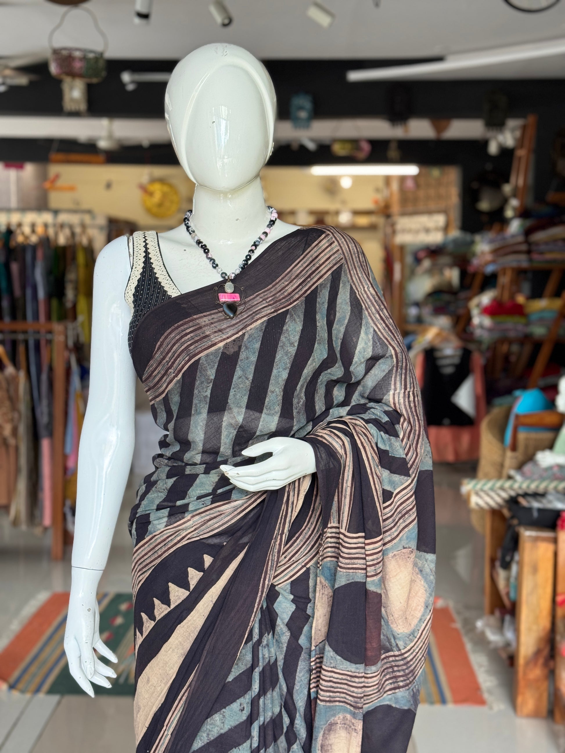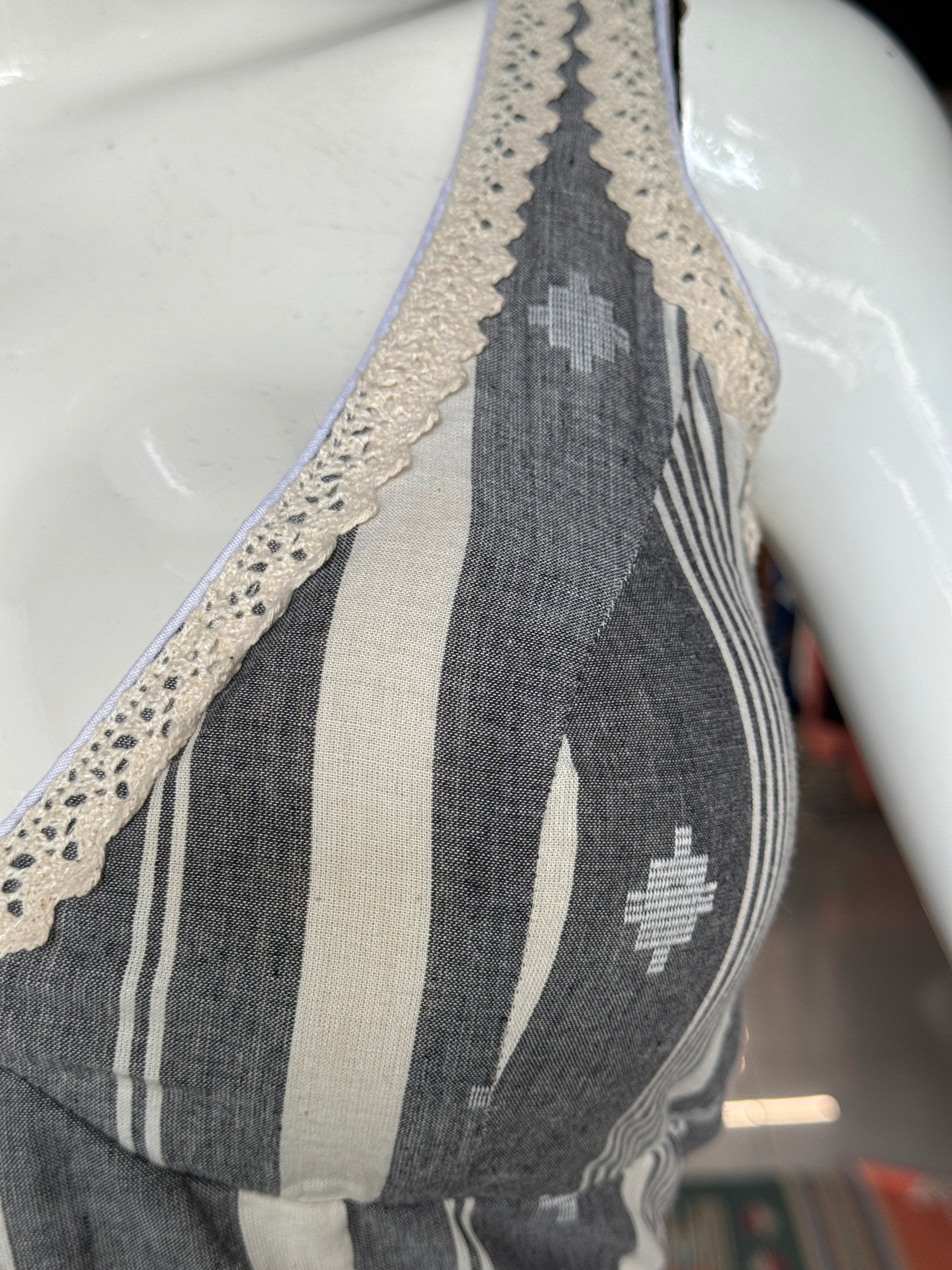 Padded sleeveless cotton blouse with lace trims - black / grey