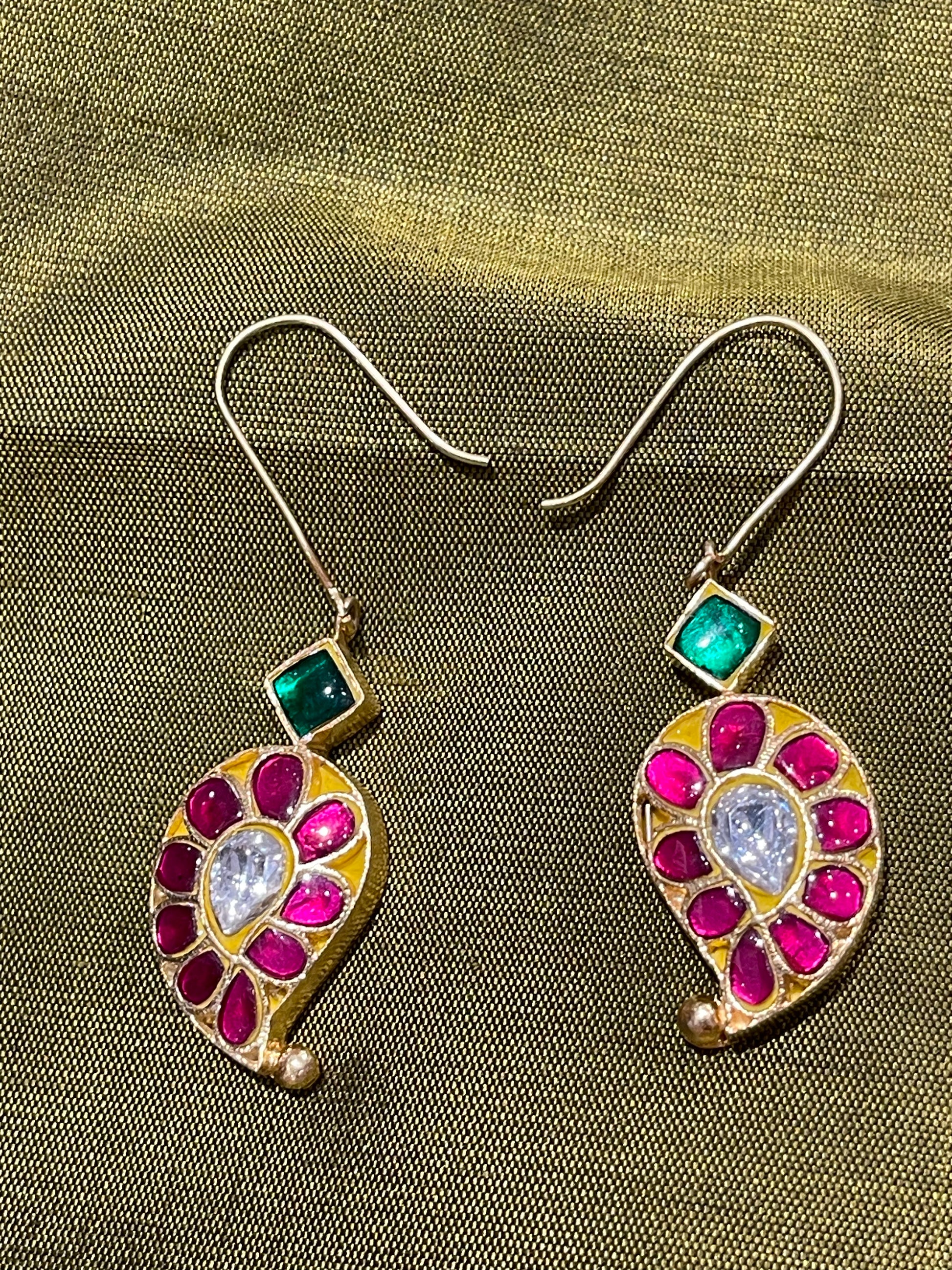 Paisley pink and green stones hooks - Gold polish 92.5 sterling silver
