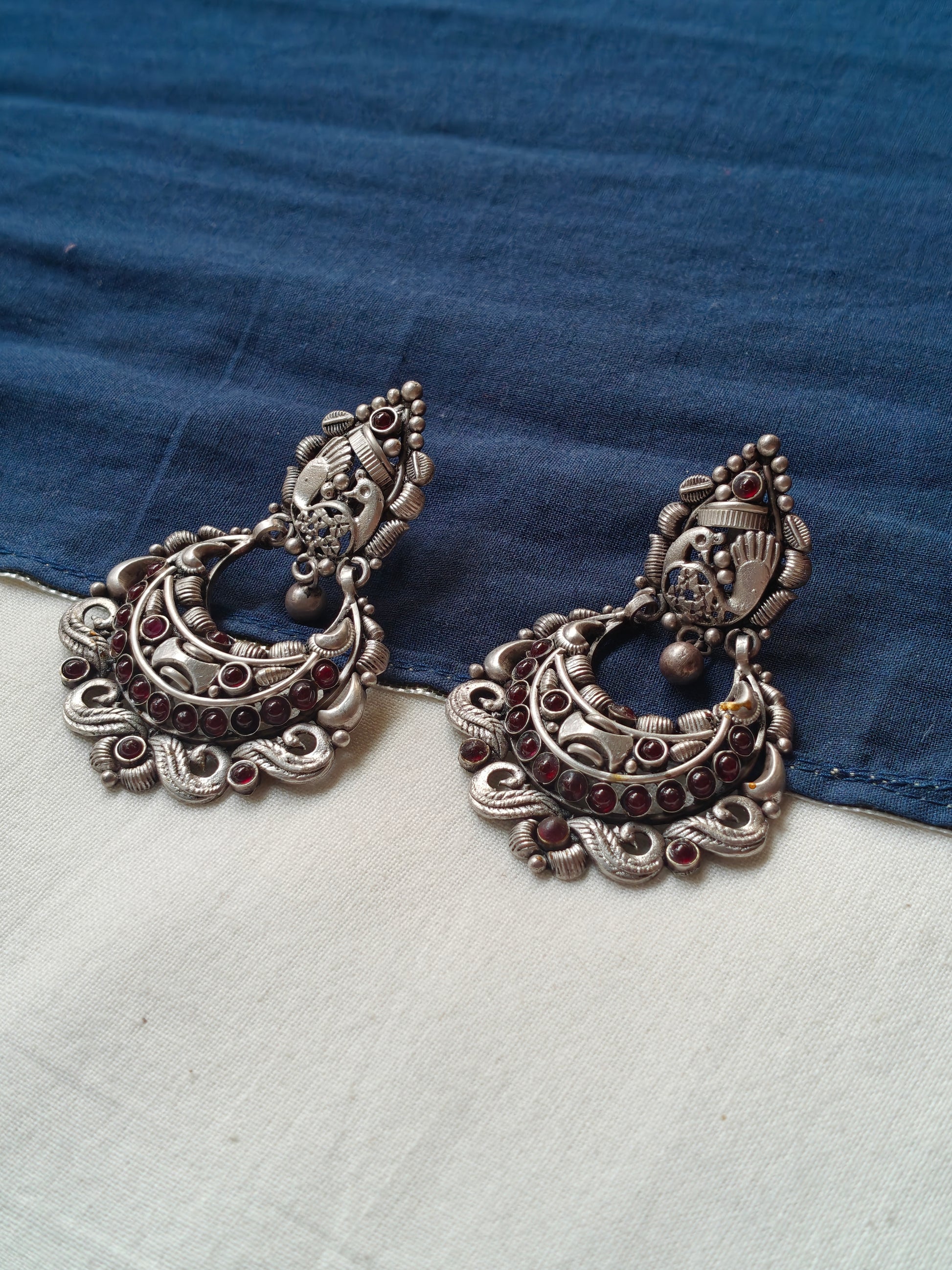 Peacock with red stones stud earrings in 92.5 sterling silver