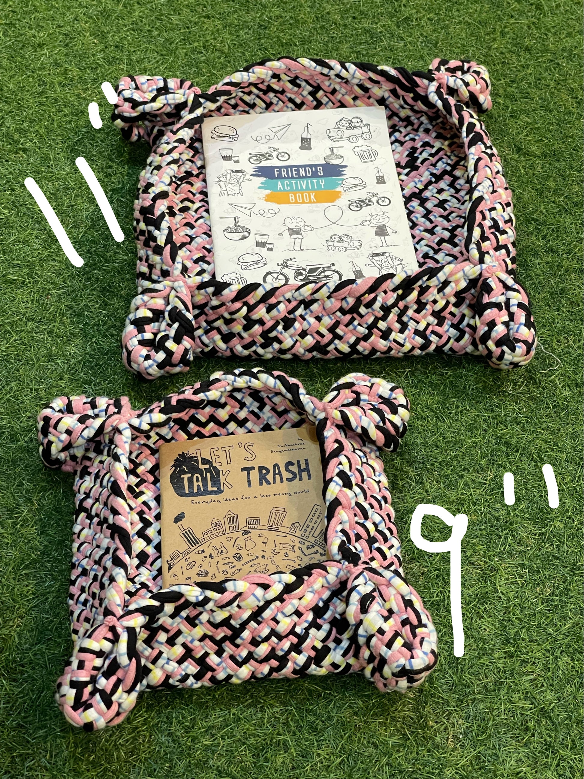 Pink and black square roti basket / organizer with upcycled knitted cotton - 9 inches size