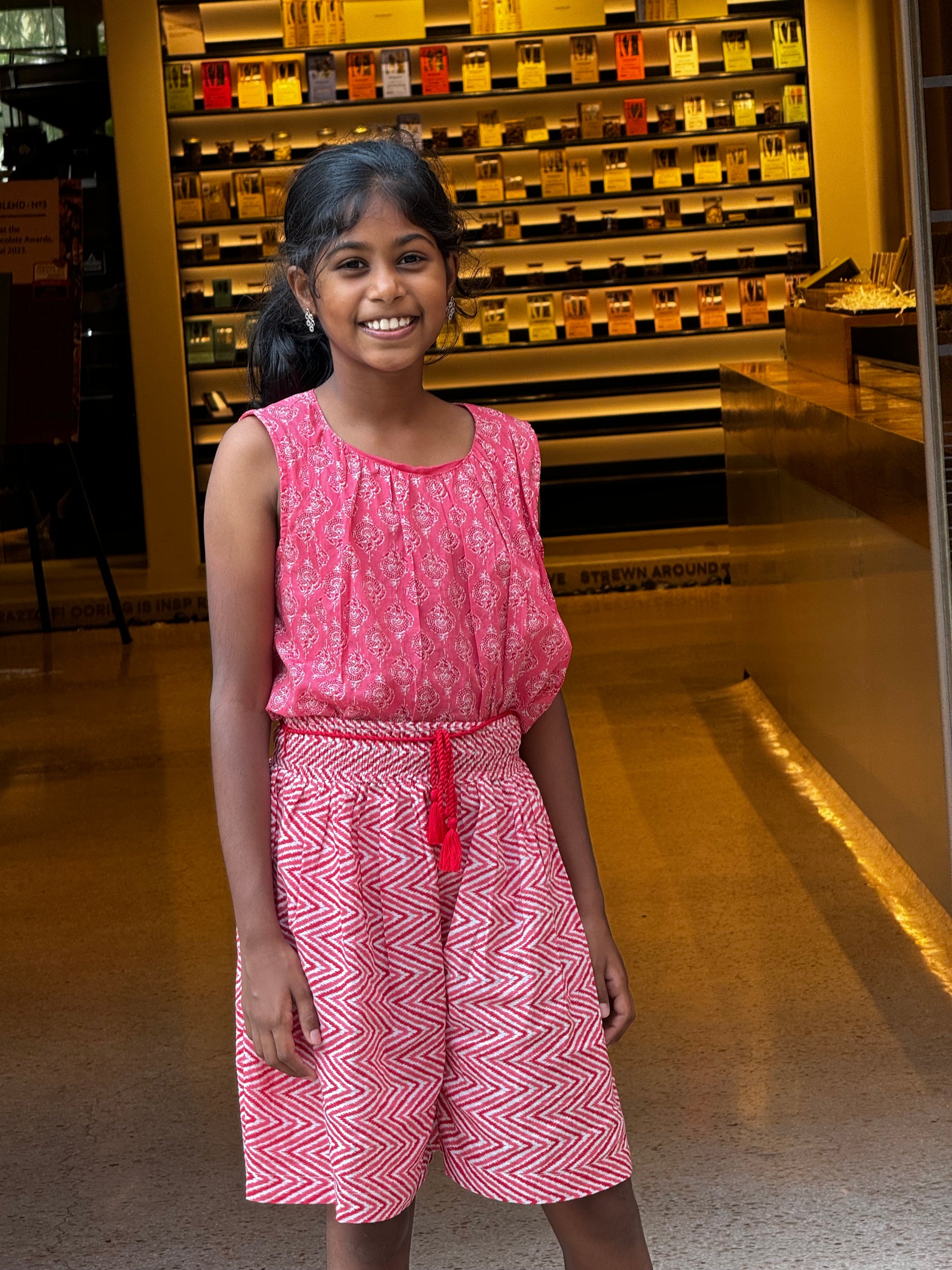 Pink pleated printed tunic with zigzag print shorts in cotton