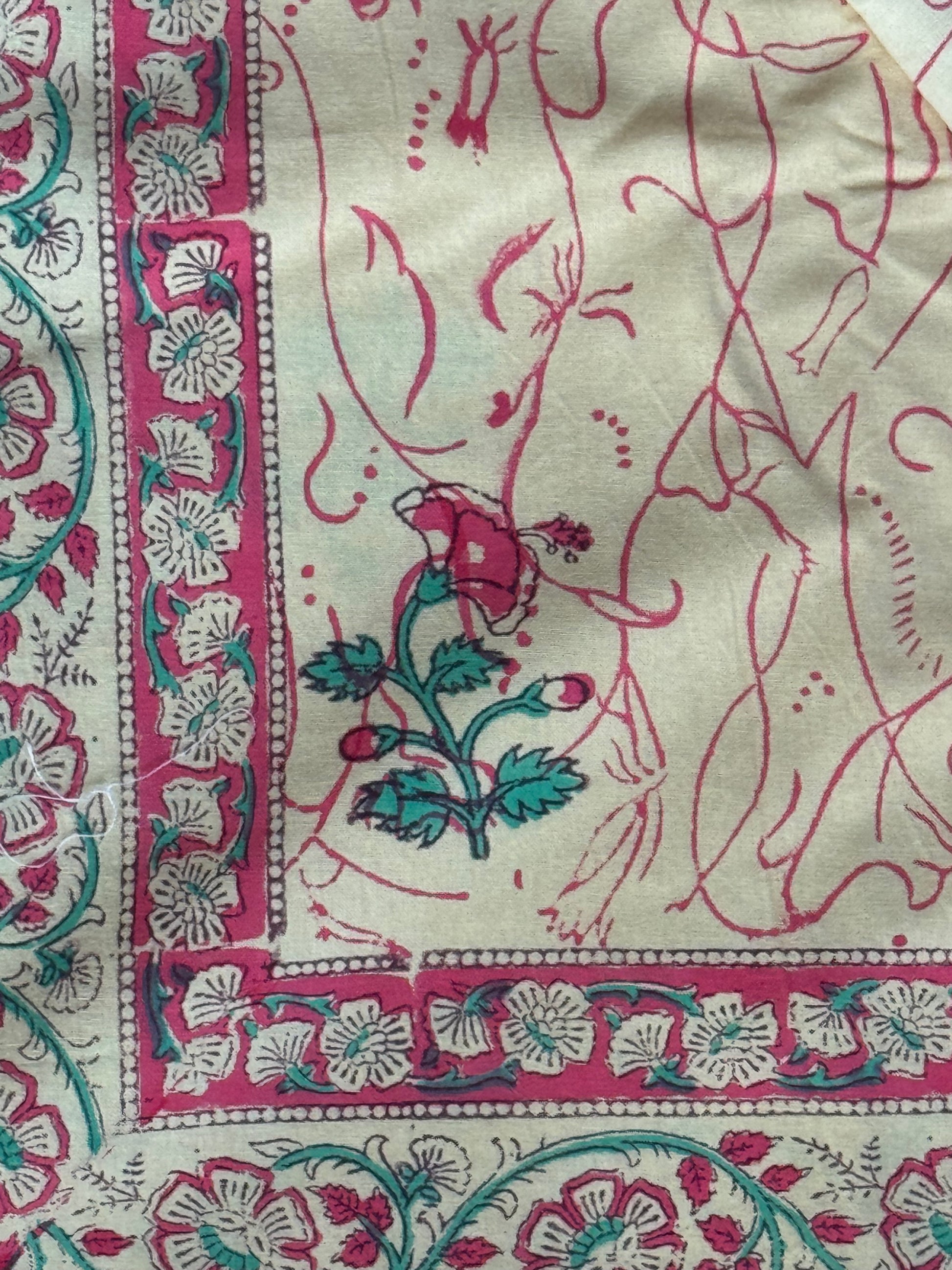 Pink scribble hand block print on sandal base pure cotton super king size bedsheet