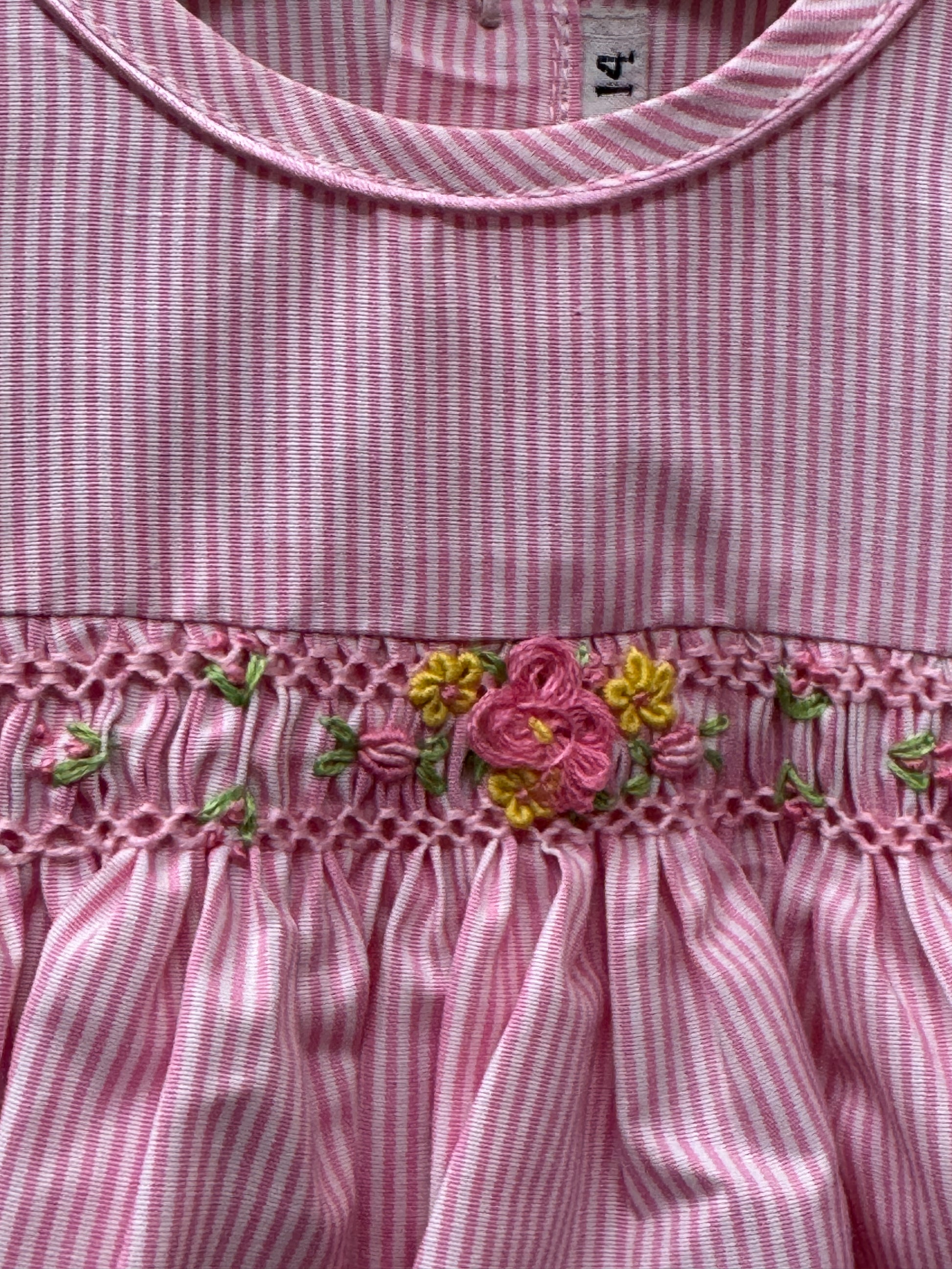 Pink stripes hand embroidered smocking cotton frock for little girls