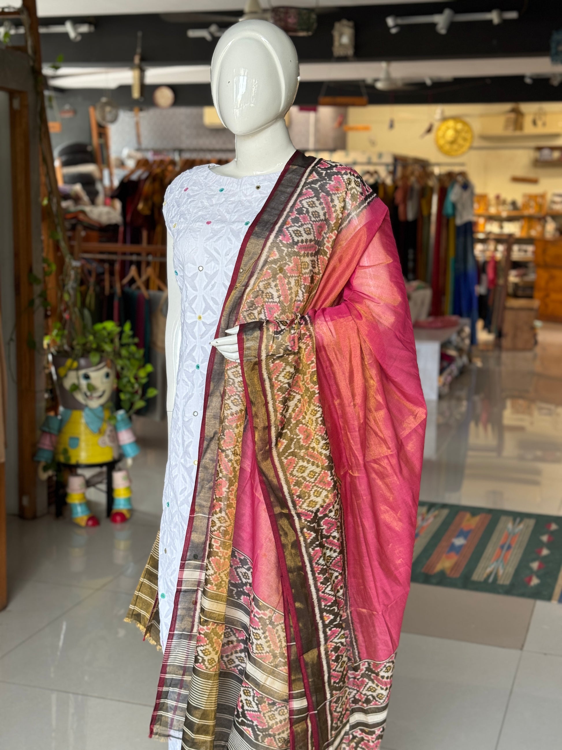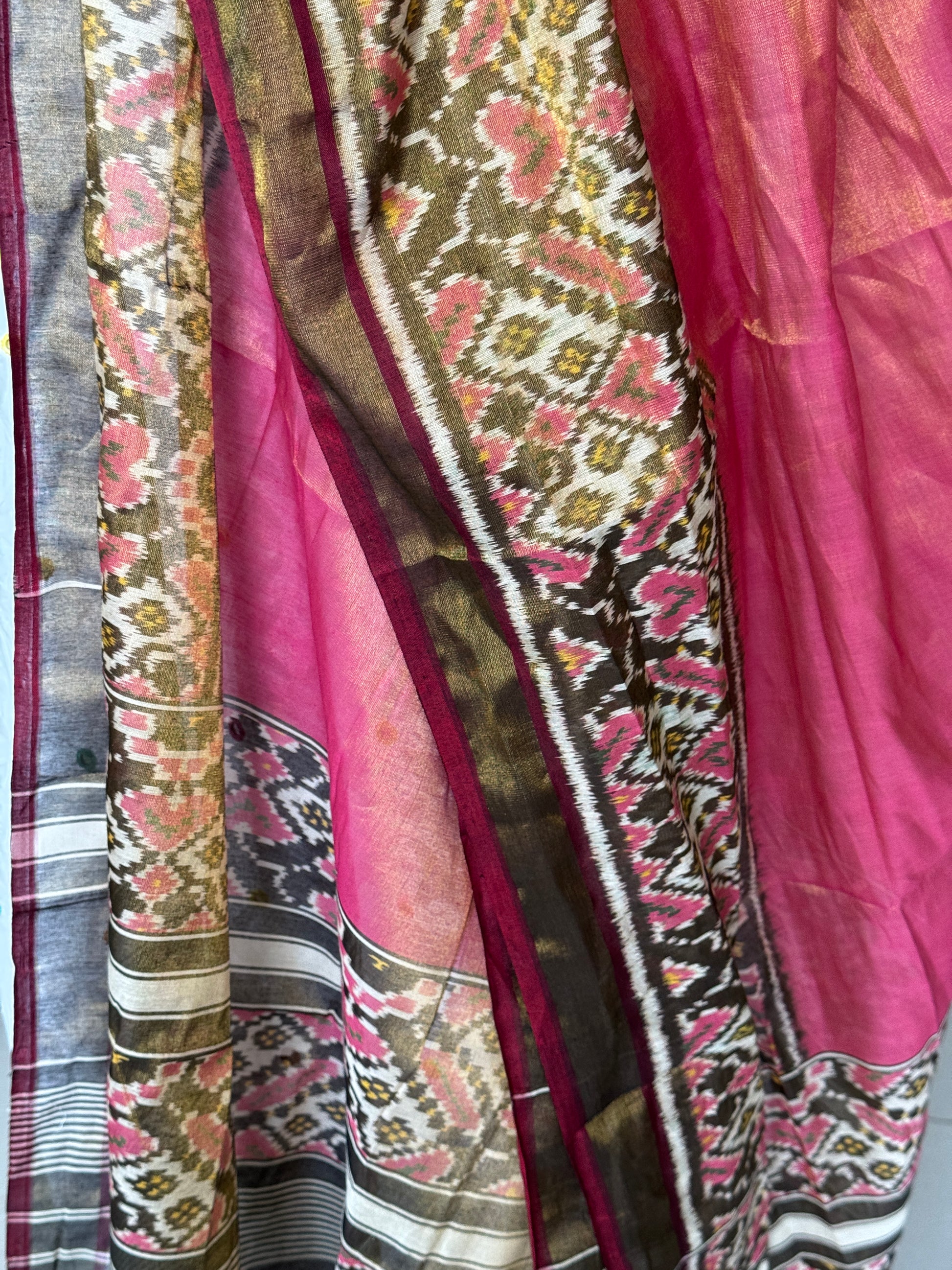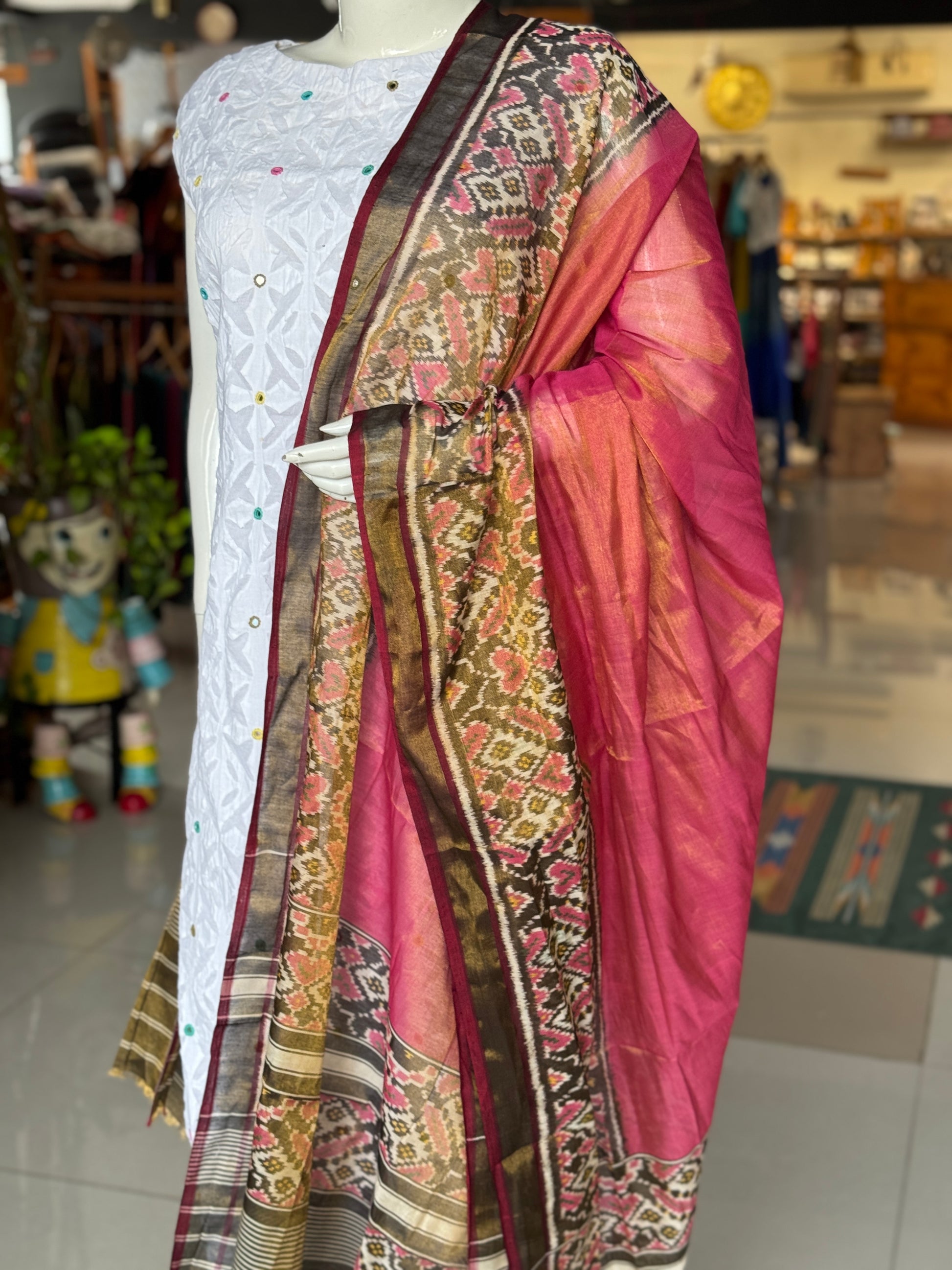 Pink Zari tissue cotton handwoven ikat patola dupatta