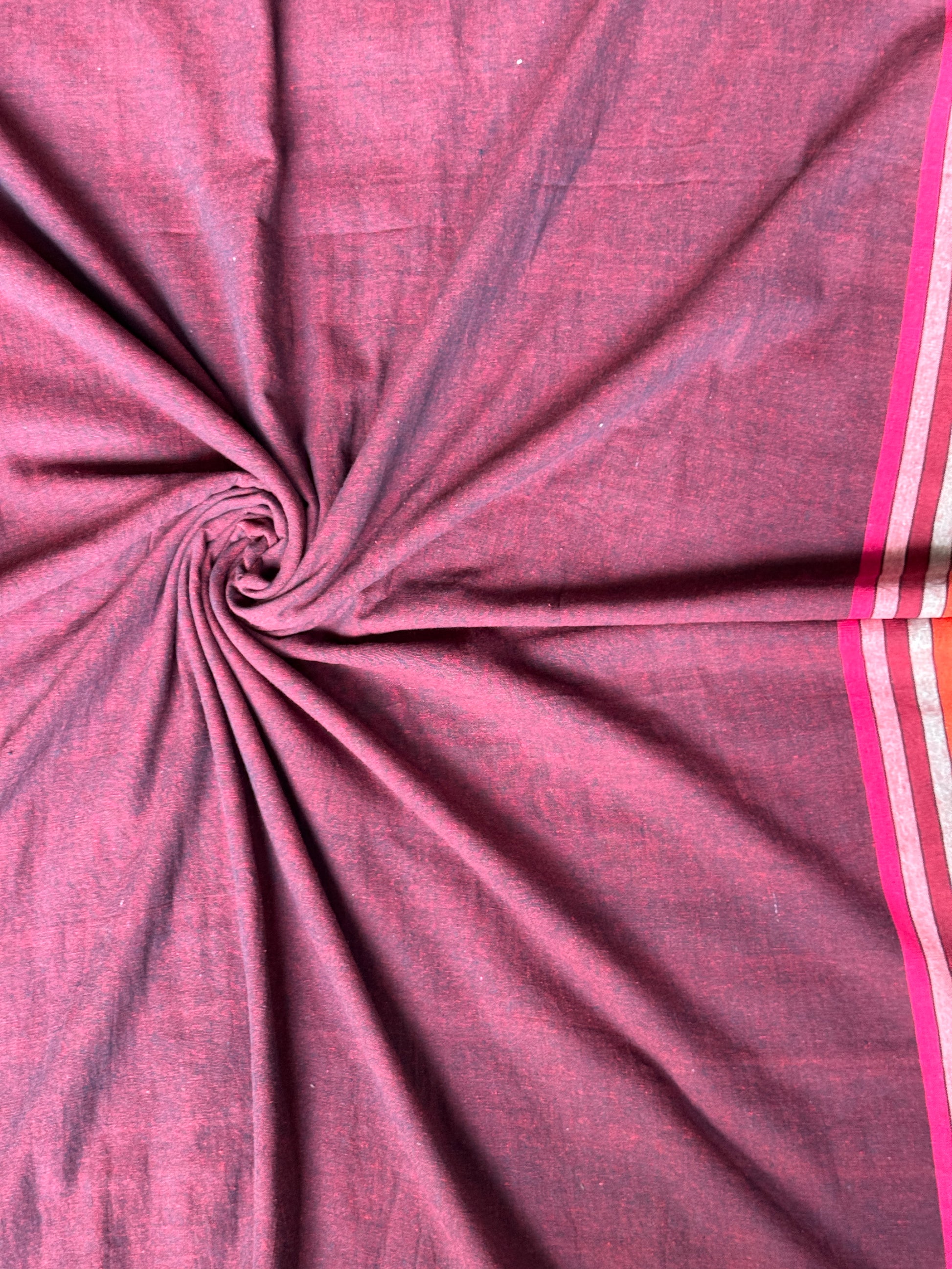 Plain Handloom kala cotton fabric with colorful stripes borders - different shades available