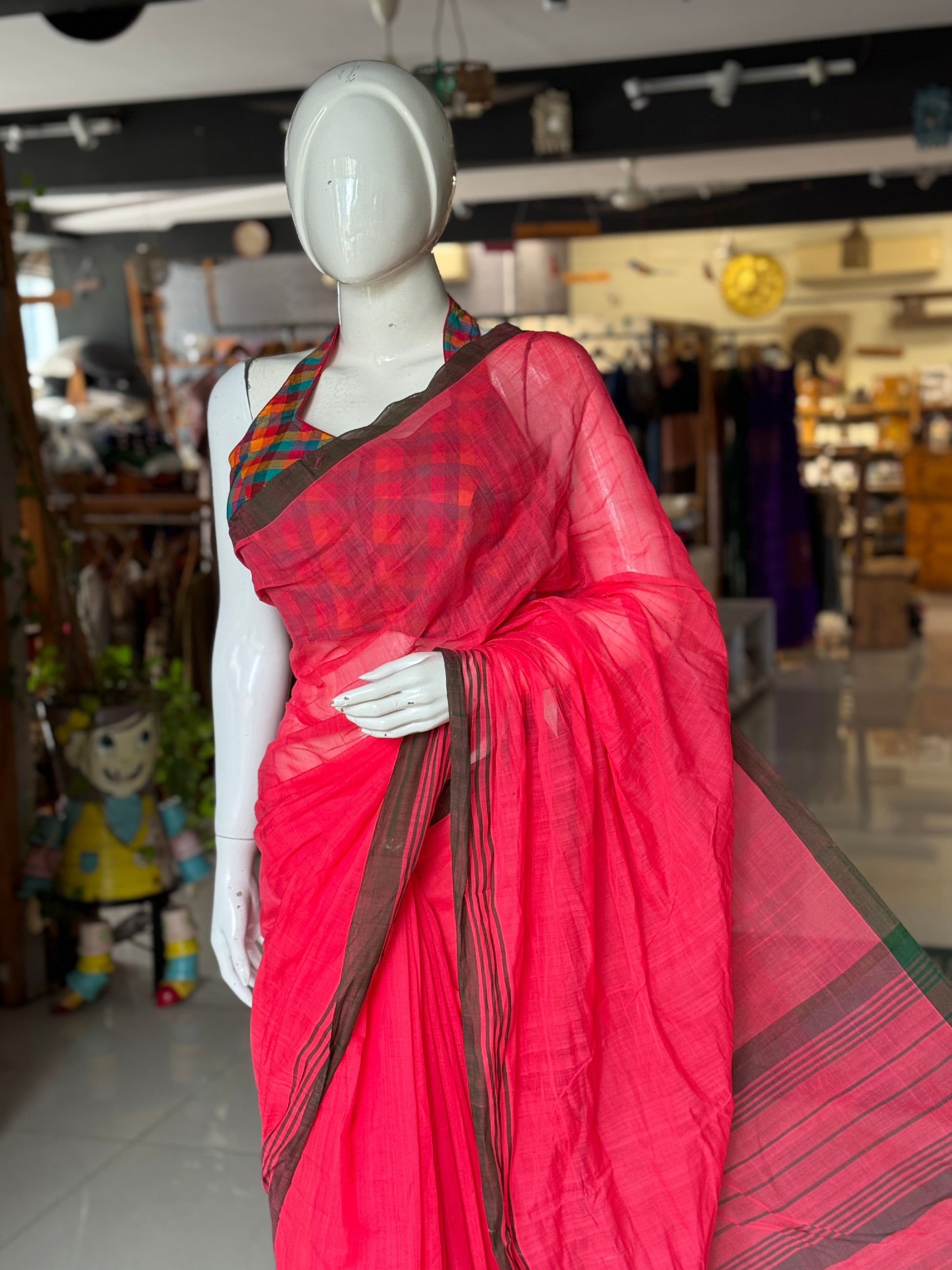 Plain light weight soft handloom Bobbili cotton saree - multiple colors available